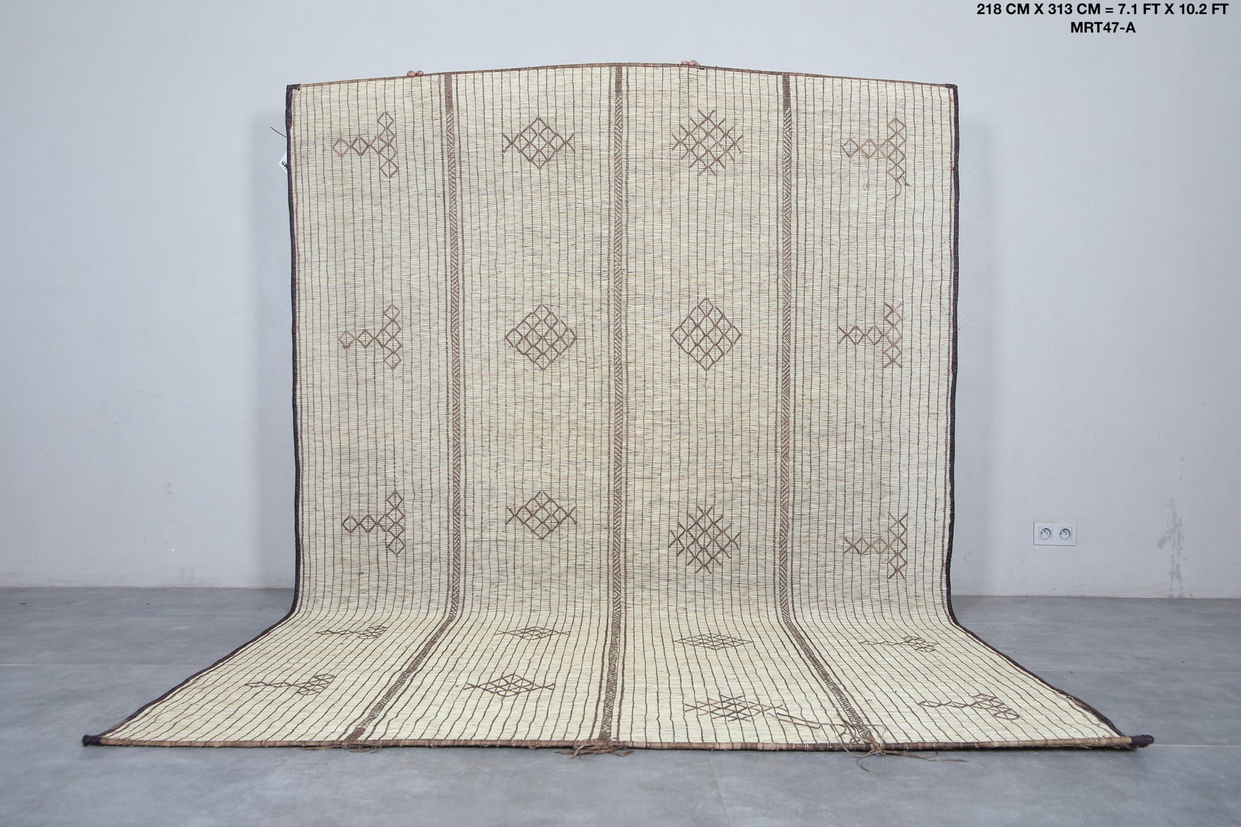 Elevate your space with the cultural beauty and skilled craftsmanship of this African Tuareg rug, handwoven using traditional techniques passed down through generations. Featuring bold geometric patterns and earthy tones, this stunning piece captures the rich heritage of the Tuareg people. Made from high-quality natural materials, it offers both durability and timeless elegance, making it a perfect statement piece for living rooms, dining areas, or large entryways. Its versatile design complements bohemian, rustic, and modern interiors alike.