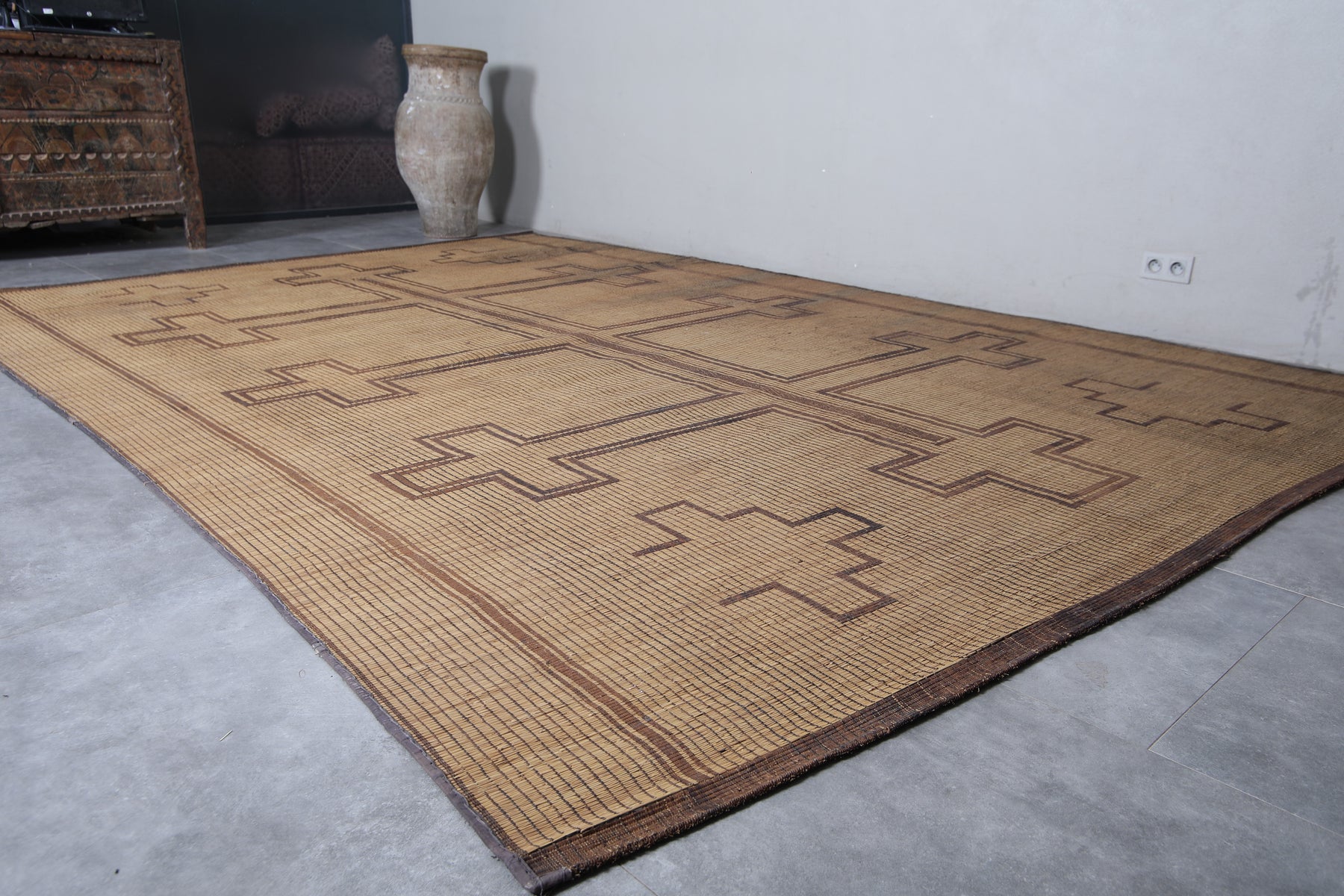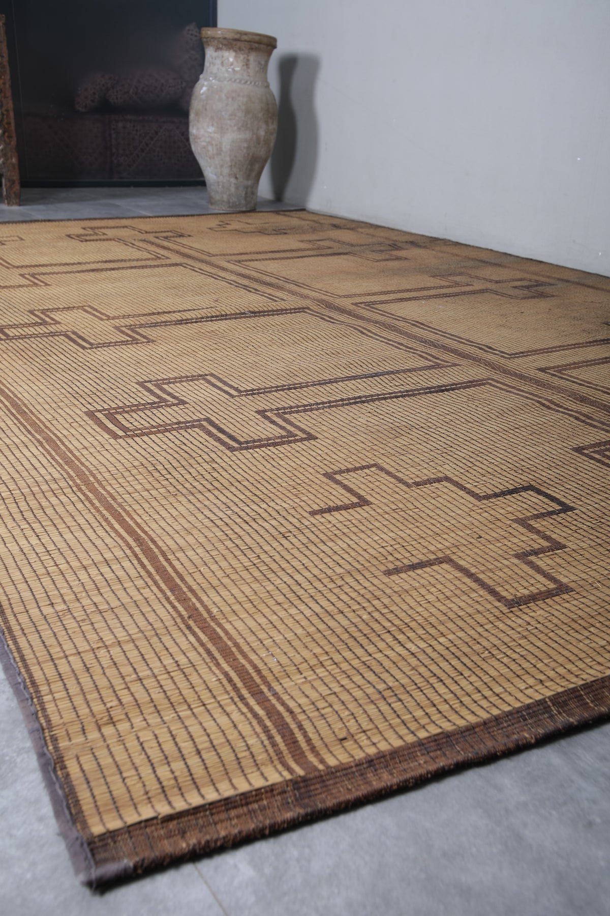# Antique rug # Mauritanian mat # Mauritanian rug # Nomad rug # Nomadic rug # Reed and leather rug # Reed rug # Tuareg reed rug # Vintage reed rug # Vintage tuareg mat # Vintage tuareg rug