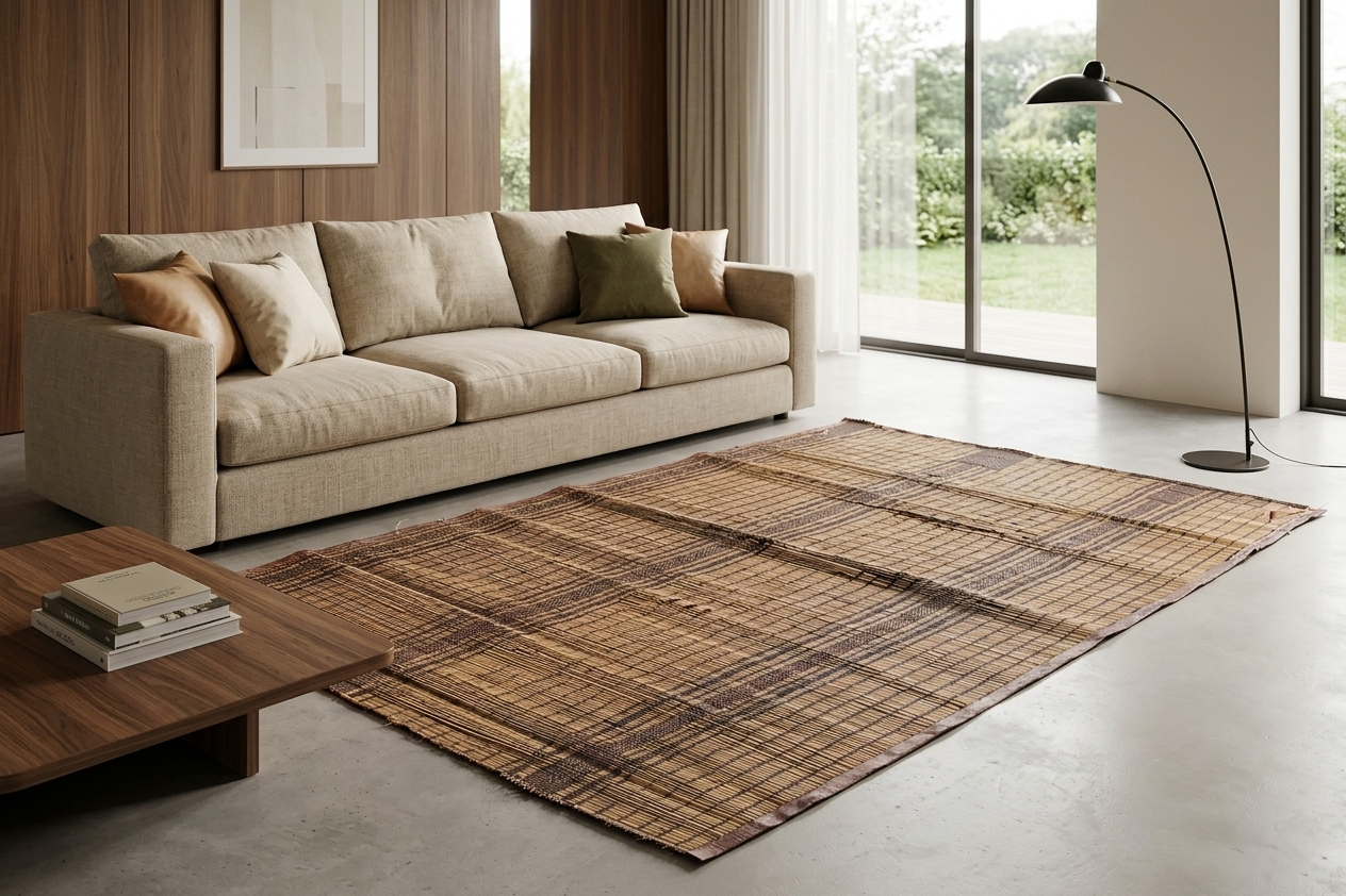 Add a unique artisanal touch to your home with this Vintage Handmade Tuareg Rug. Skillfully crafted by hand using natural reed fibers, this one-of-a-kind piece showcases traditional craftsmanship with lasting durability. Its warm, earthy tones and intricate geometric patterns bring texture and cultural charm to any bedroom, living space, or workspace.