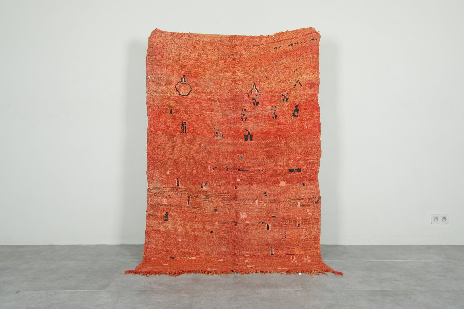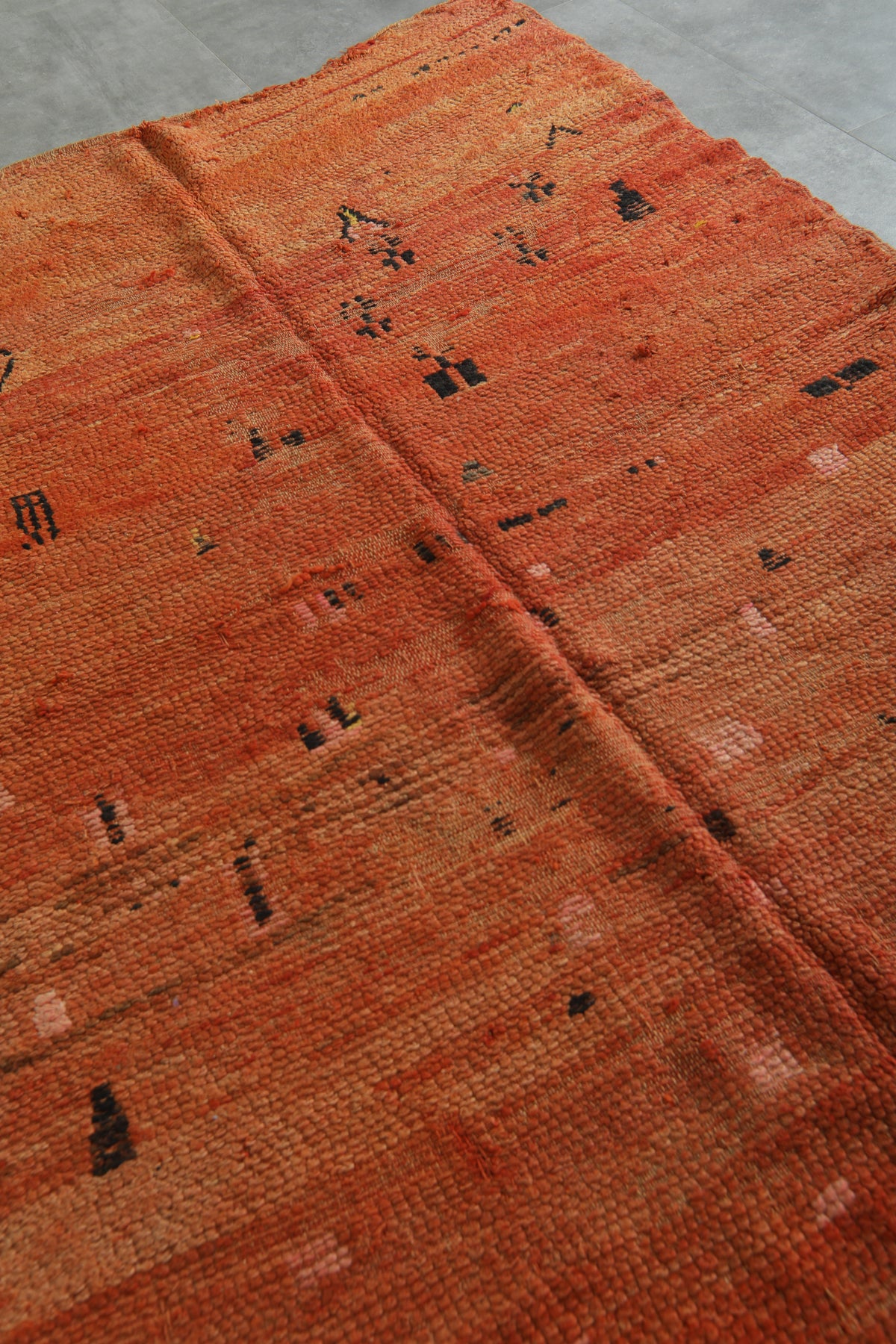 This handwoven vintage rug, measuring 4.5 by 6.6 feet, is crafted from high-quality wool, offering durability and natural warmth. Its intricate weaving technique reflects traditional craftsmanship, making it a timeless addition to any interior. Ideal for adding texture and character, this rug combines functionality with authentic artisanal appeal.