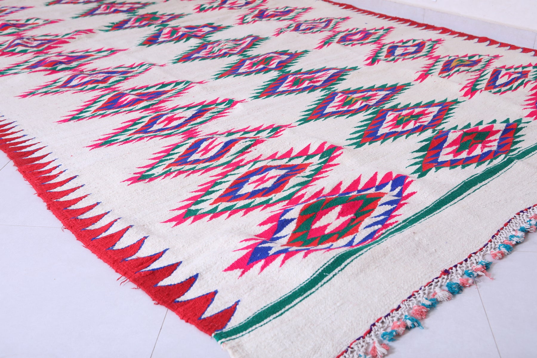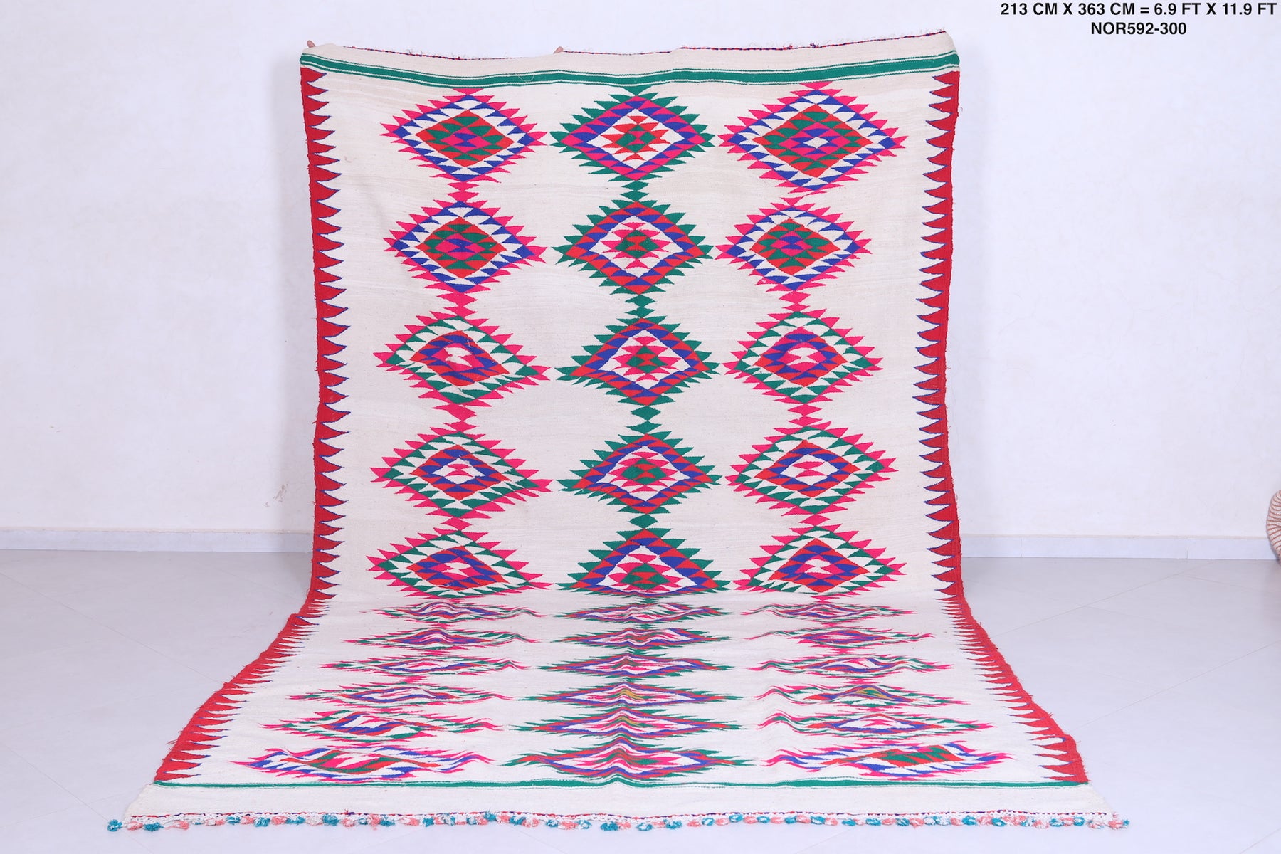 This 6.9 FT x 11.9 FT Vintage Kilim Rug brings a unique blend of culture and tradition to any space. Its handwoven design creates an appealing and colourful pattern, making it a perfect piece to liven up any room. Woven from all-natural materials, it is sure to bring a touch of style and elegance to your home.