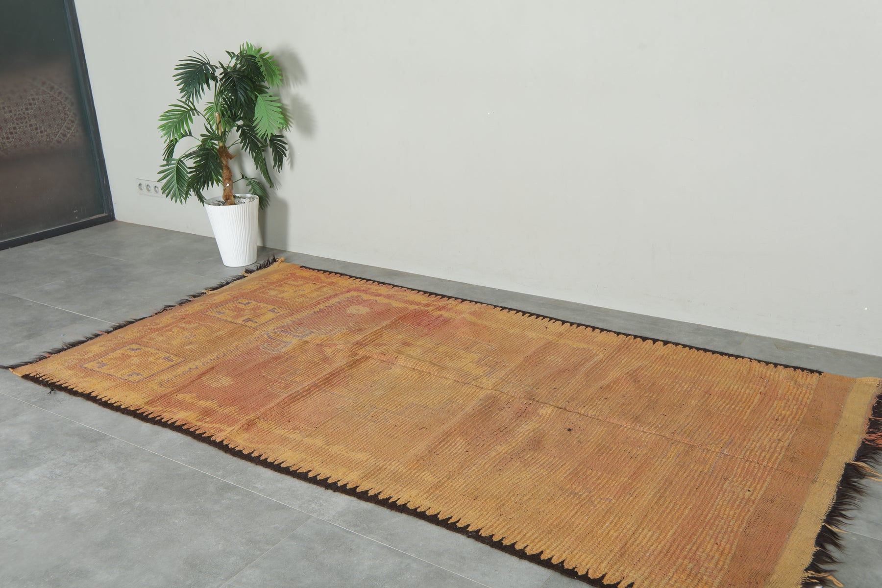 Vintage flat woven rug - 4.5 feet x 8.6 feet - Handmade wool carpet