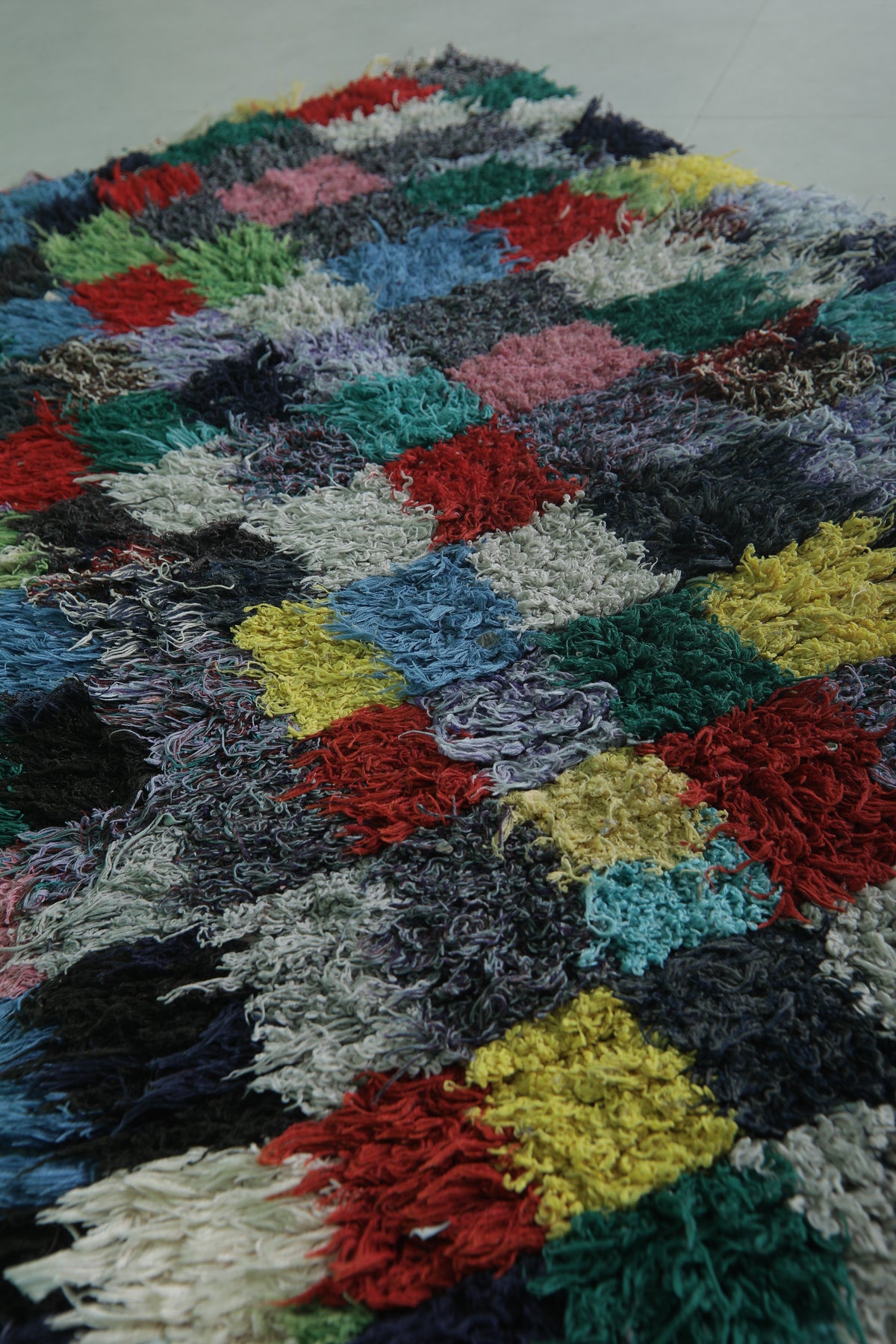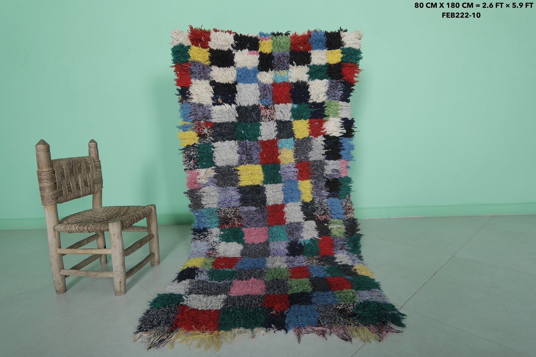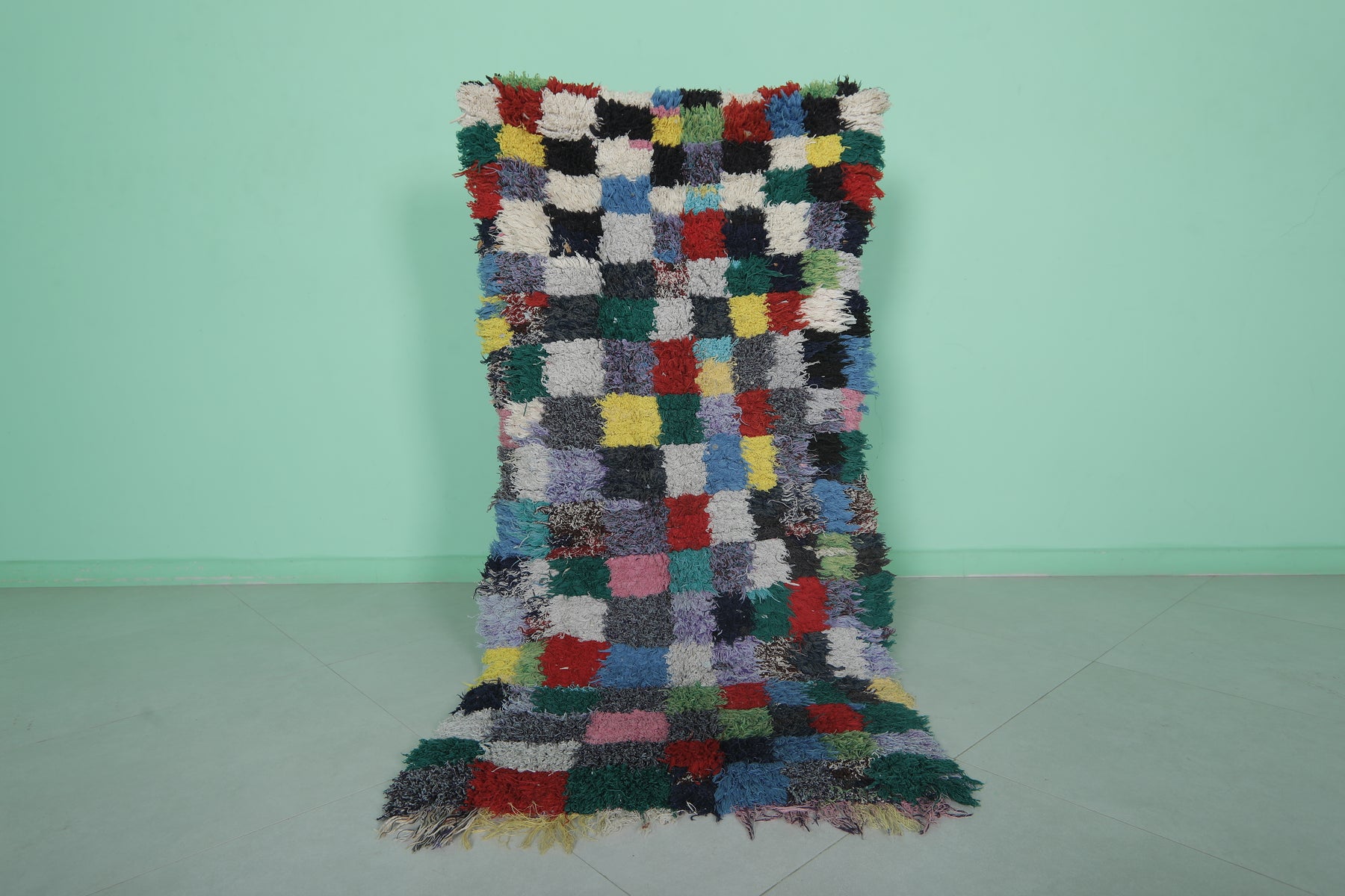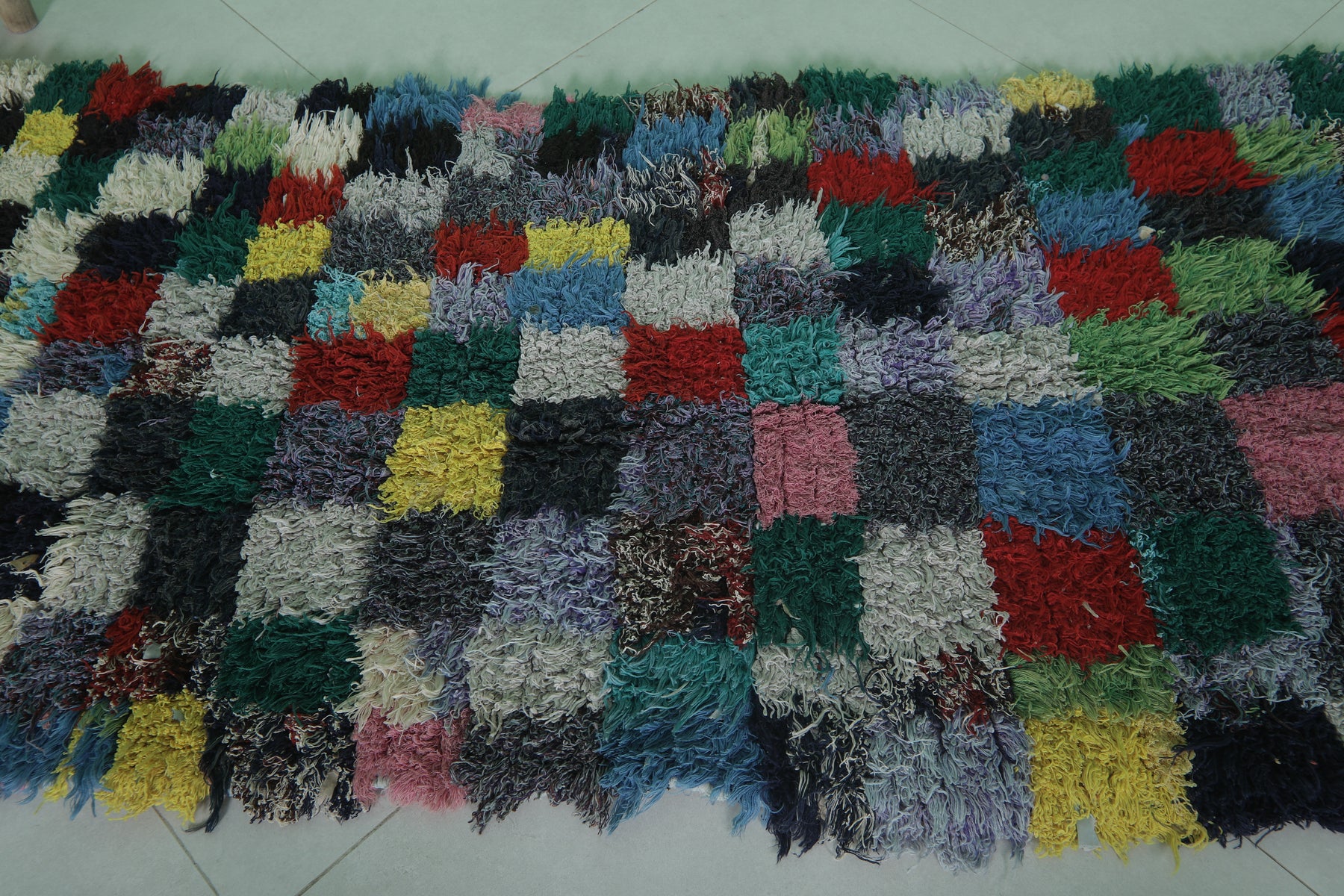 Brighten up your interior with this Vintage Handmade Runner Rug (2.6 x 5.9 FT), featuring a lively checkerboard of bold, contrasting colors and rich texture.