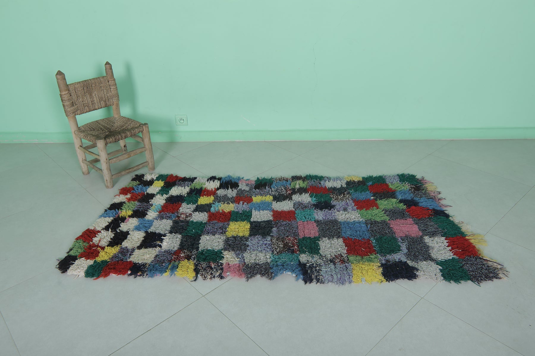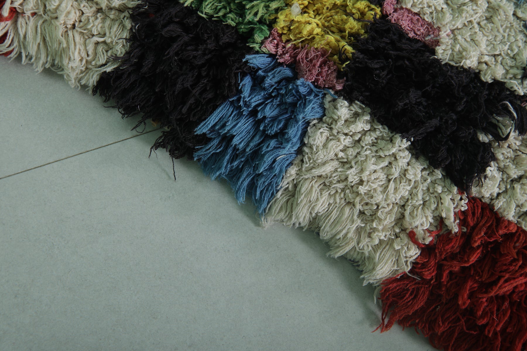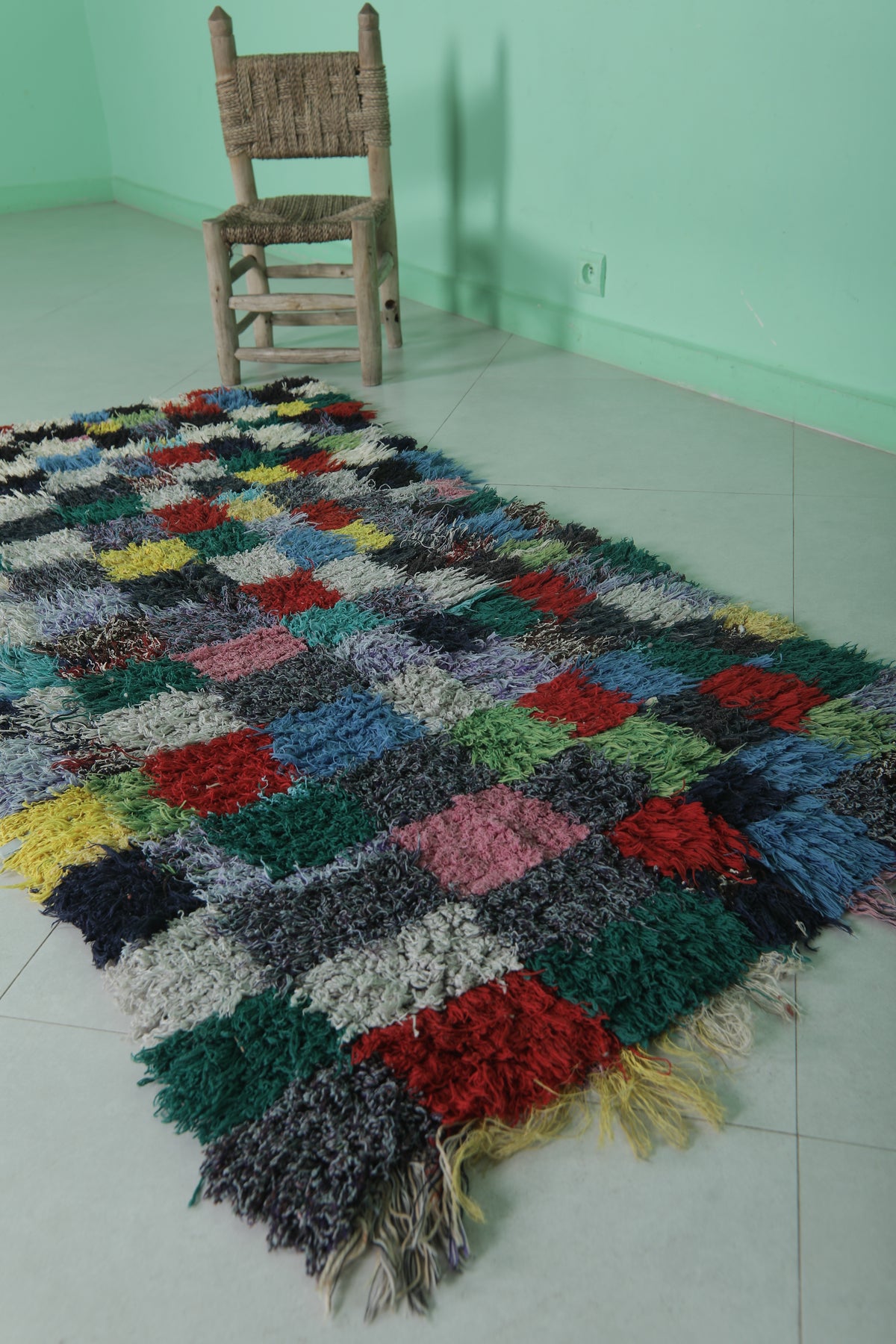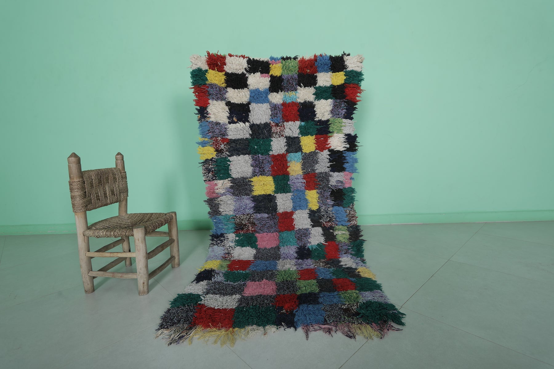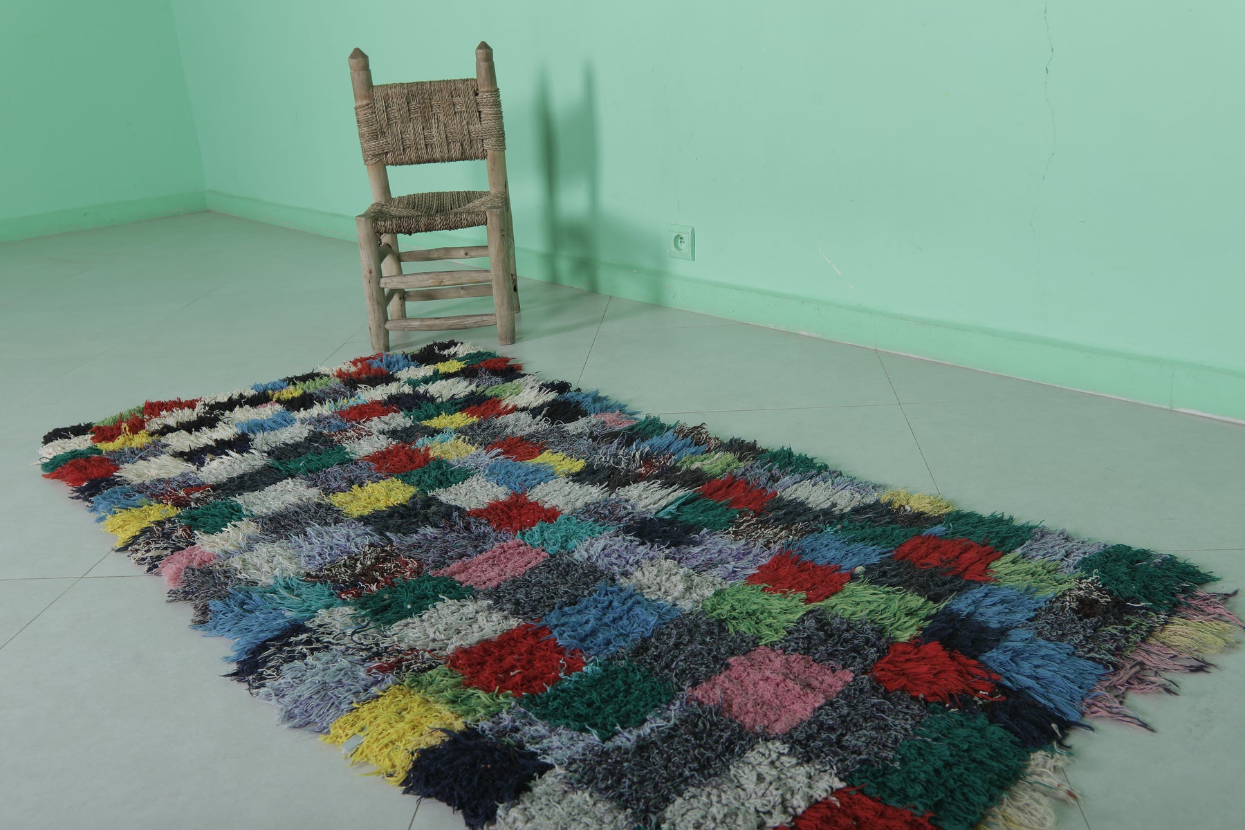 Brighten up your interior with this Vintage Handmade Runner Rug (2.6 x 5.9 FT), featuring a lively checkerboard of bold, contrasting colors and rich texture.