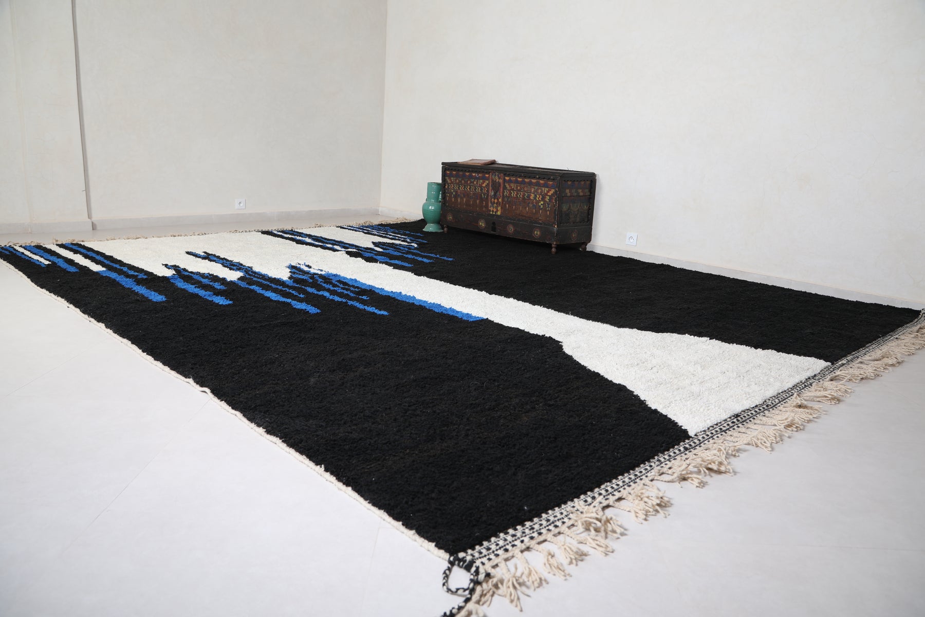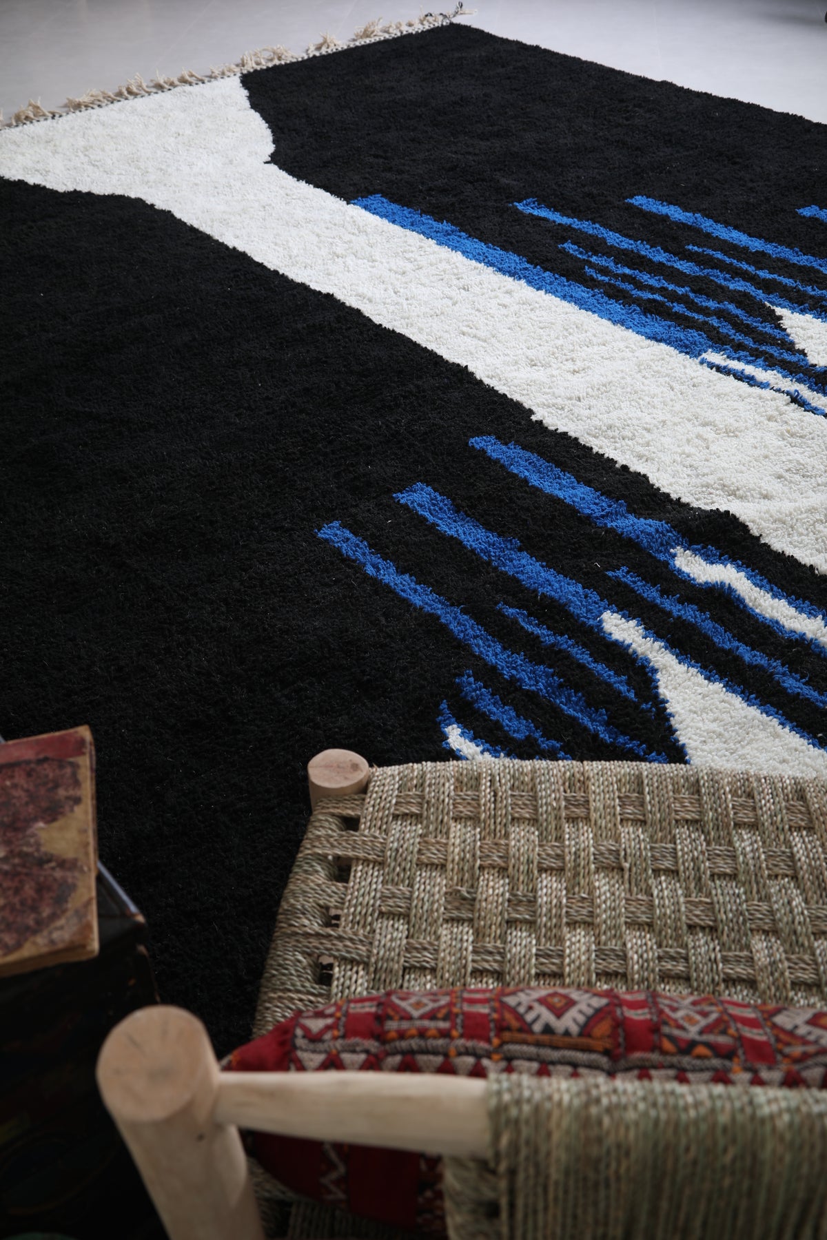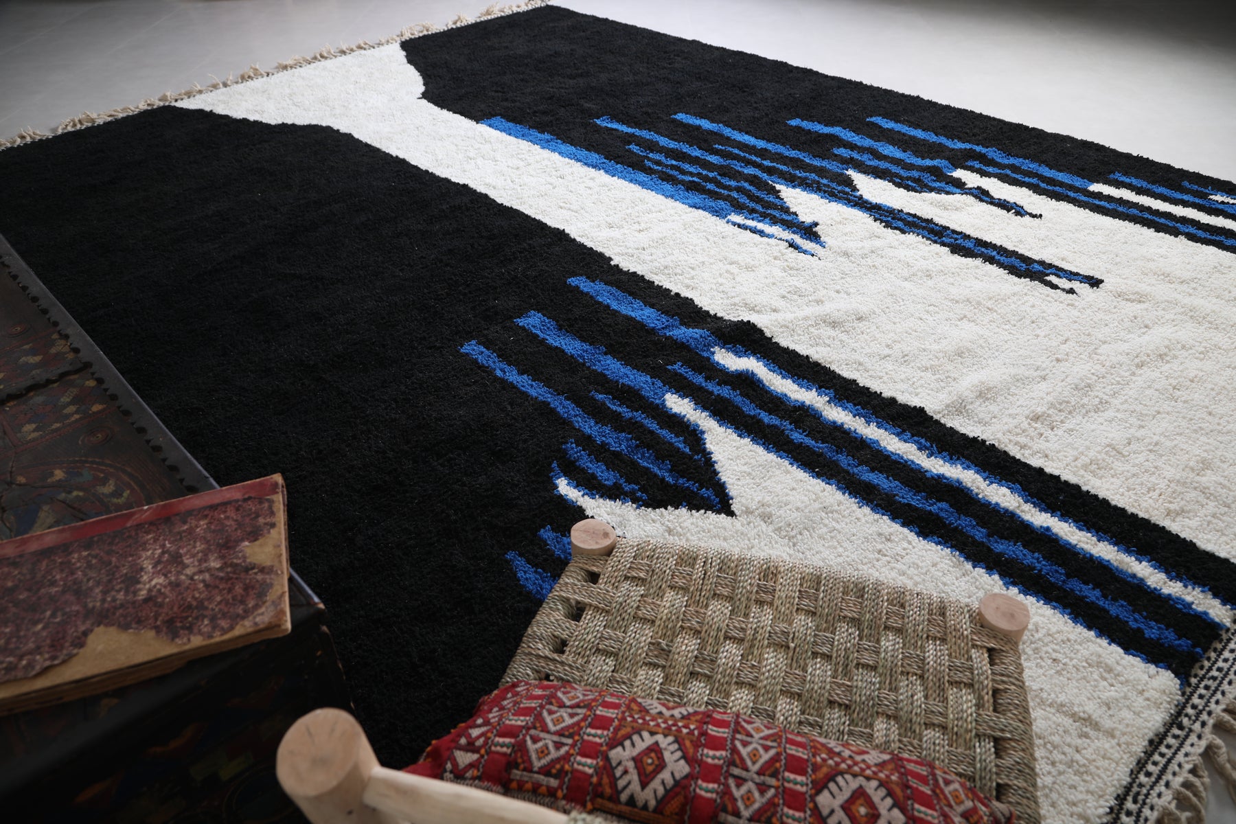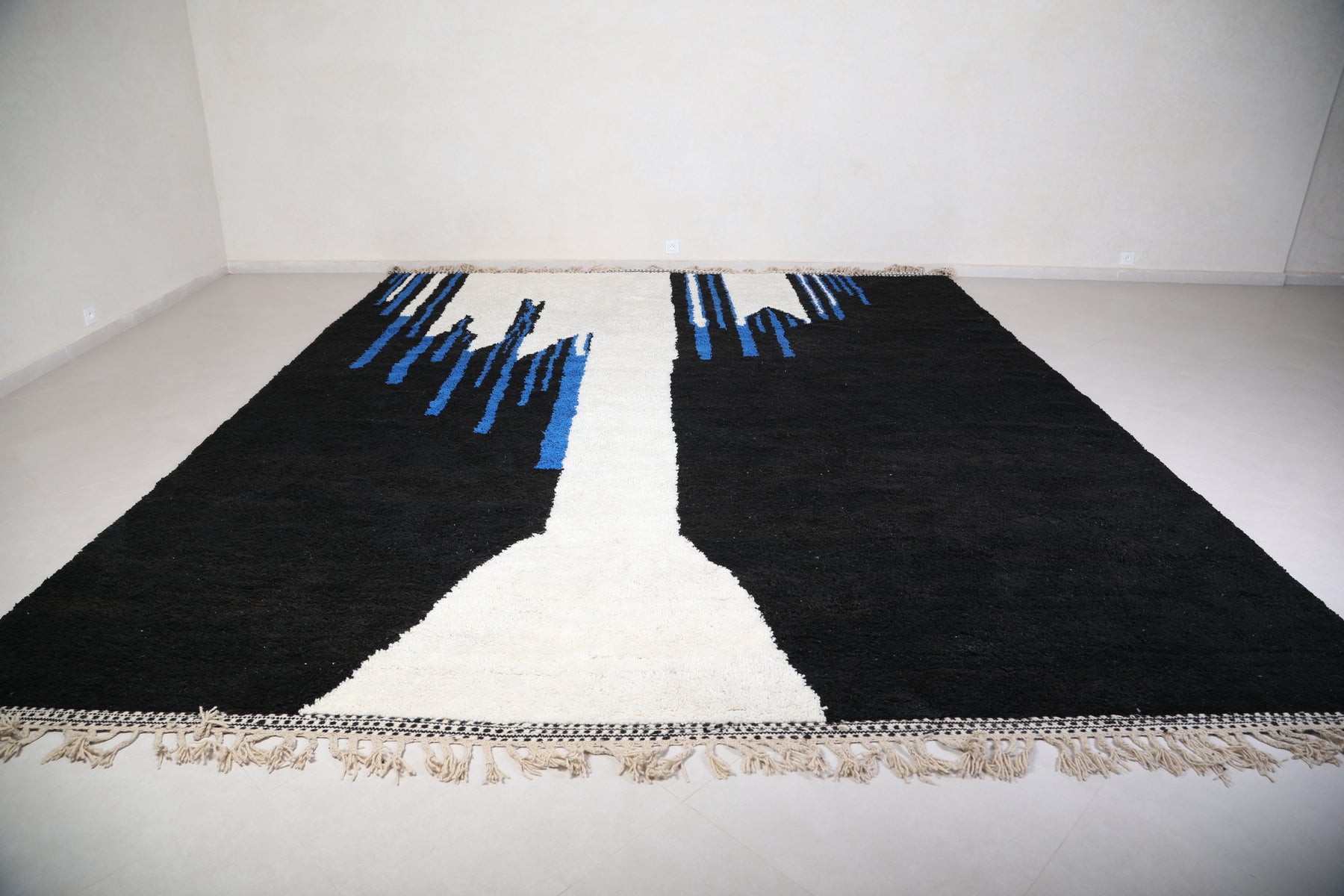Abstract Moroccan rug – Custom black, cream & blue art-inspired design