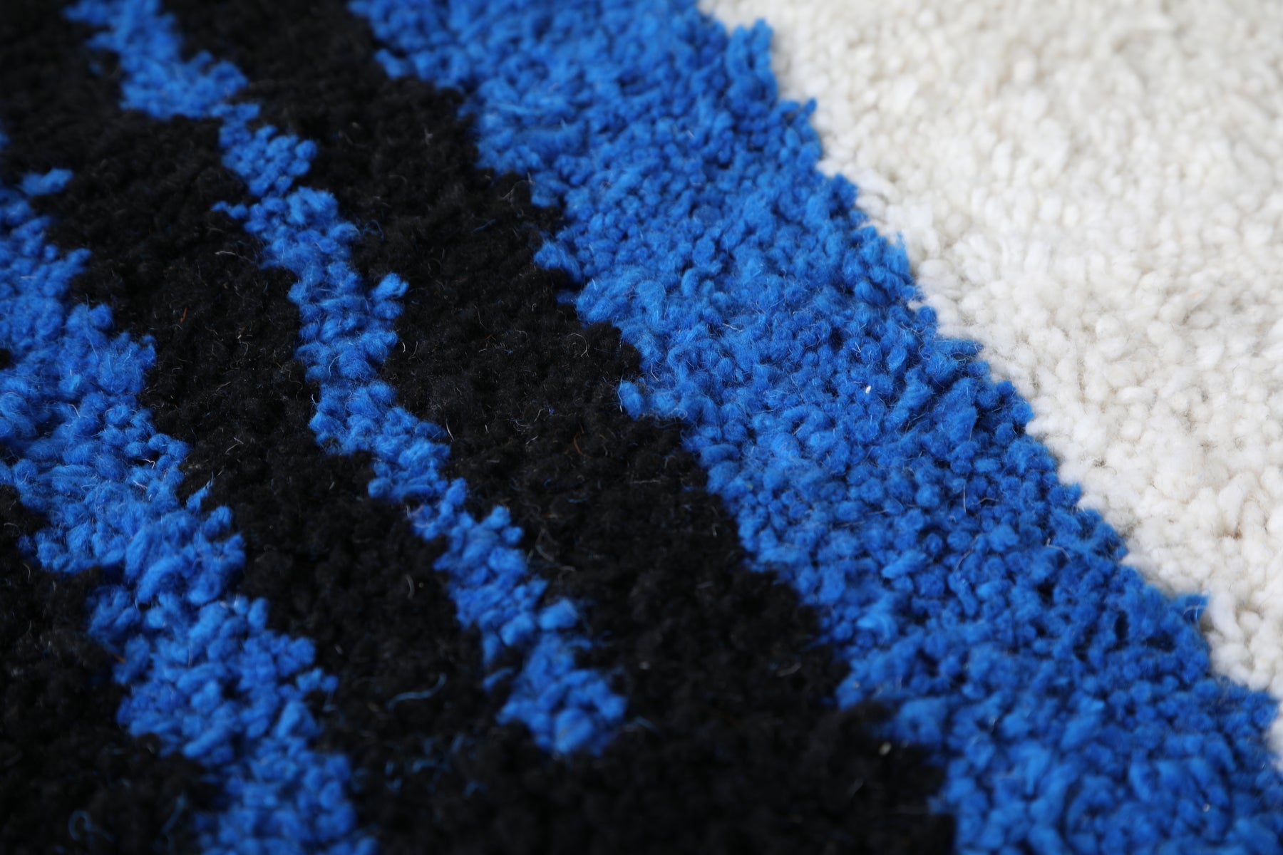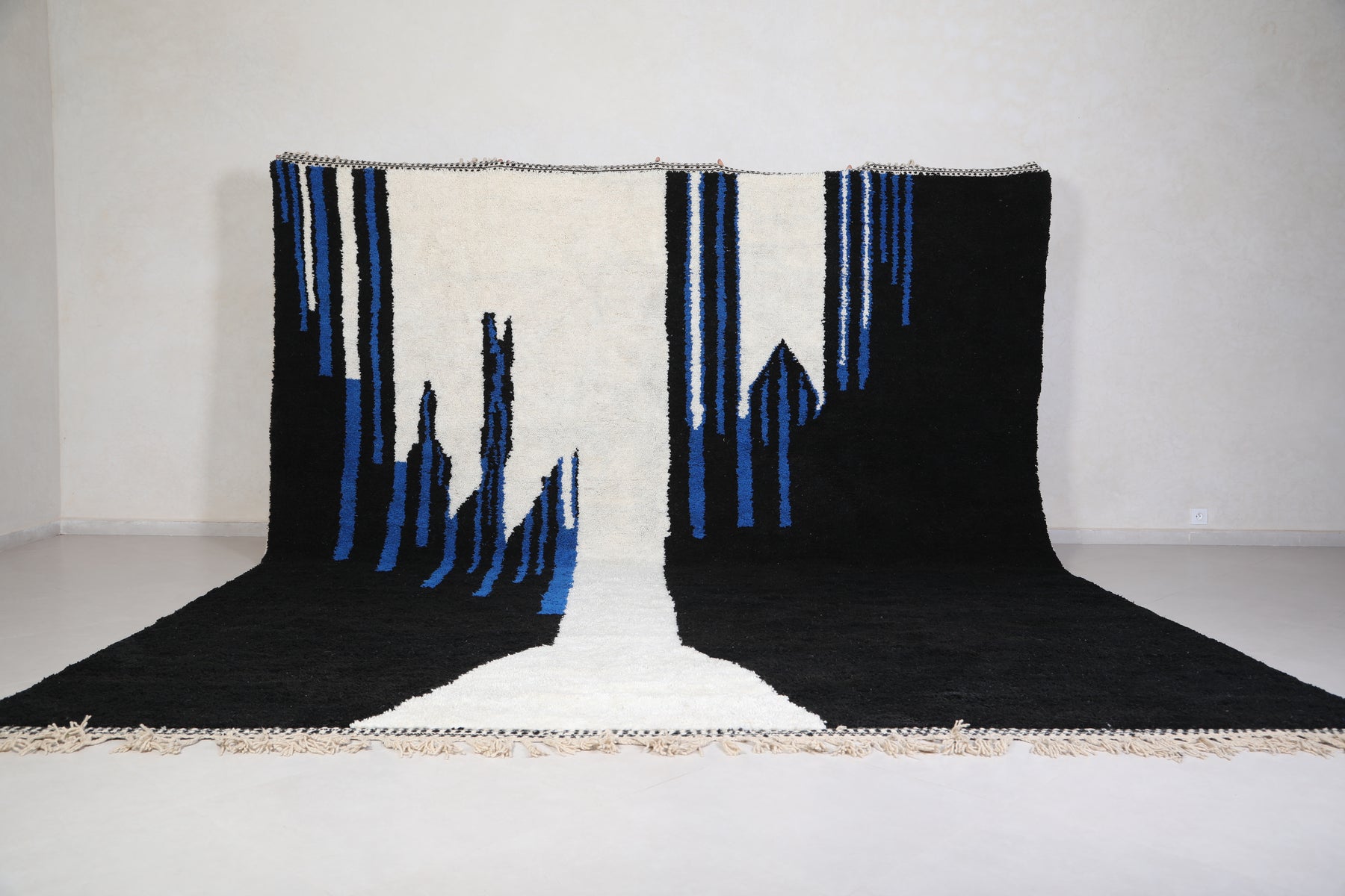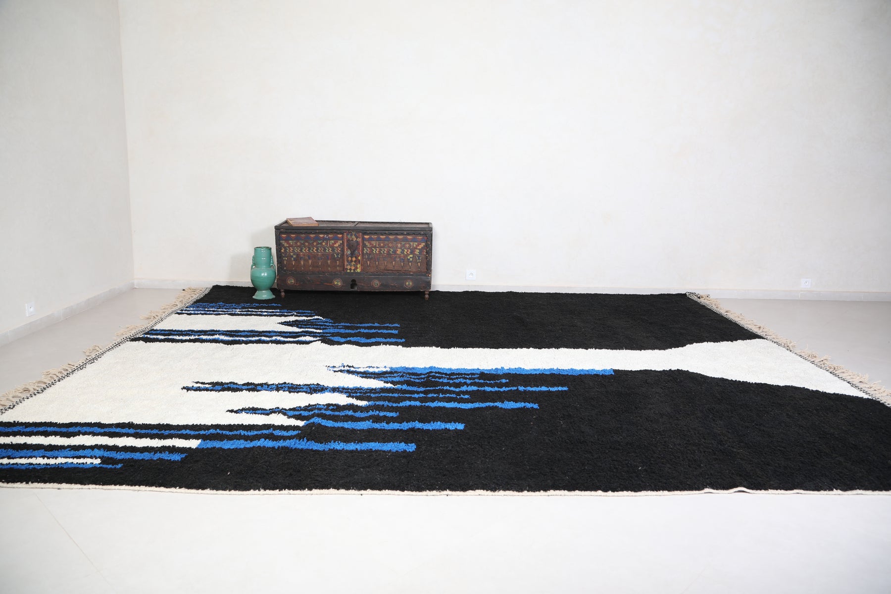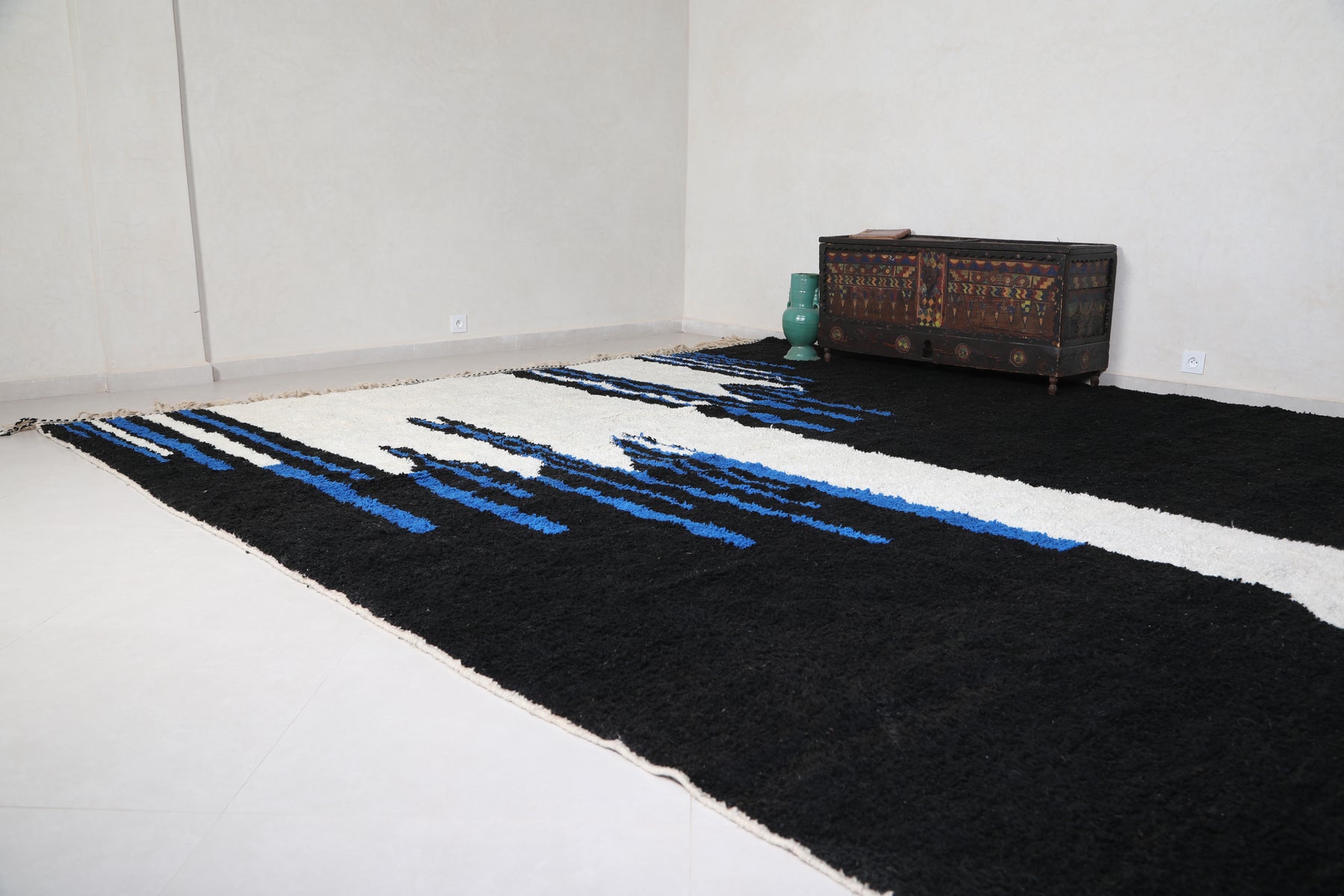 Abstract Moroccan rug – Custom black, cream & blue art-inspired design
