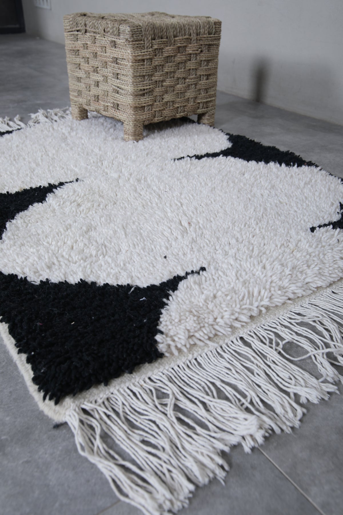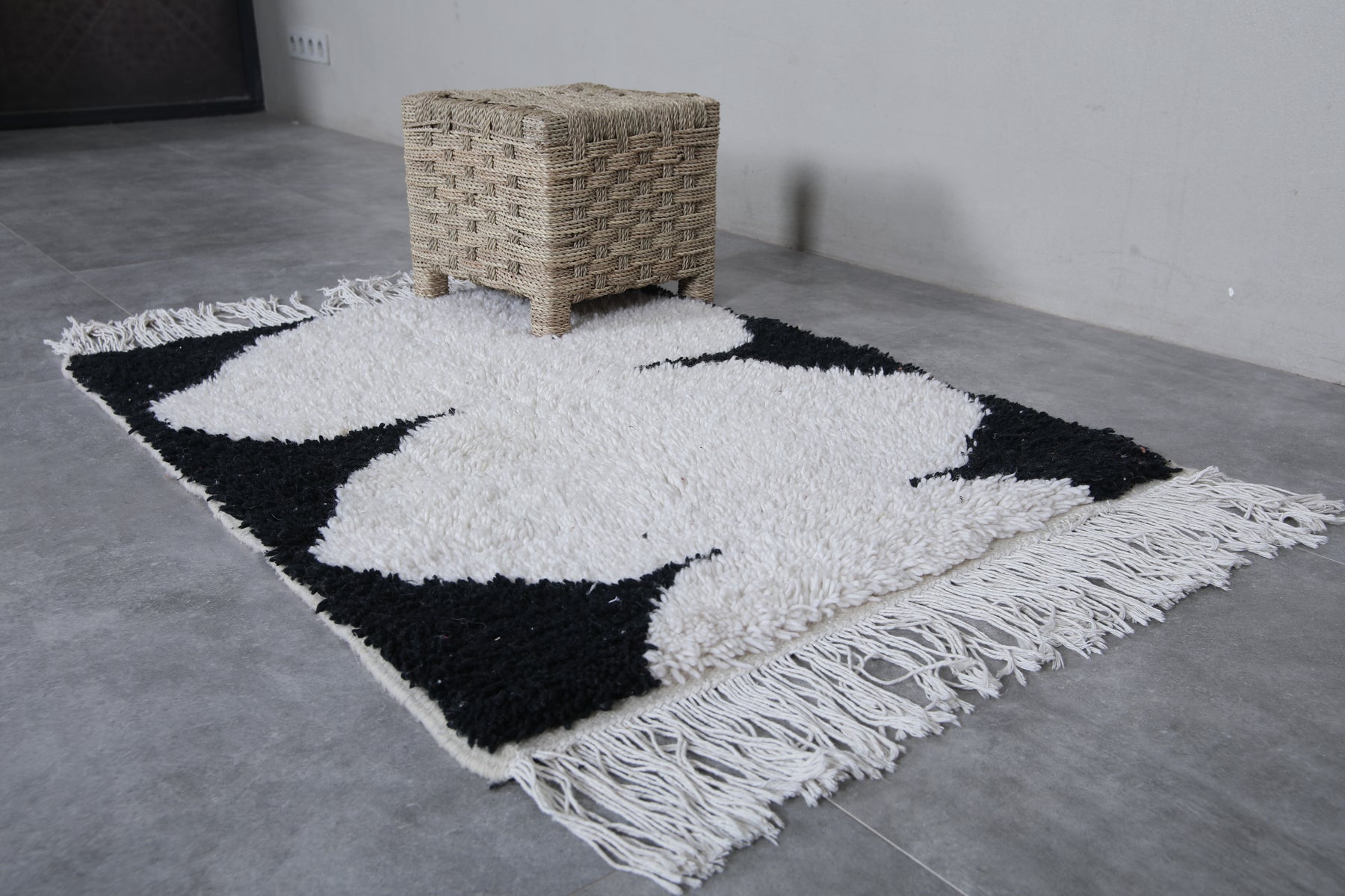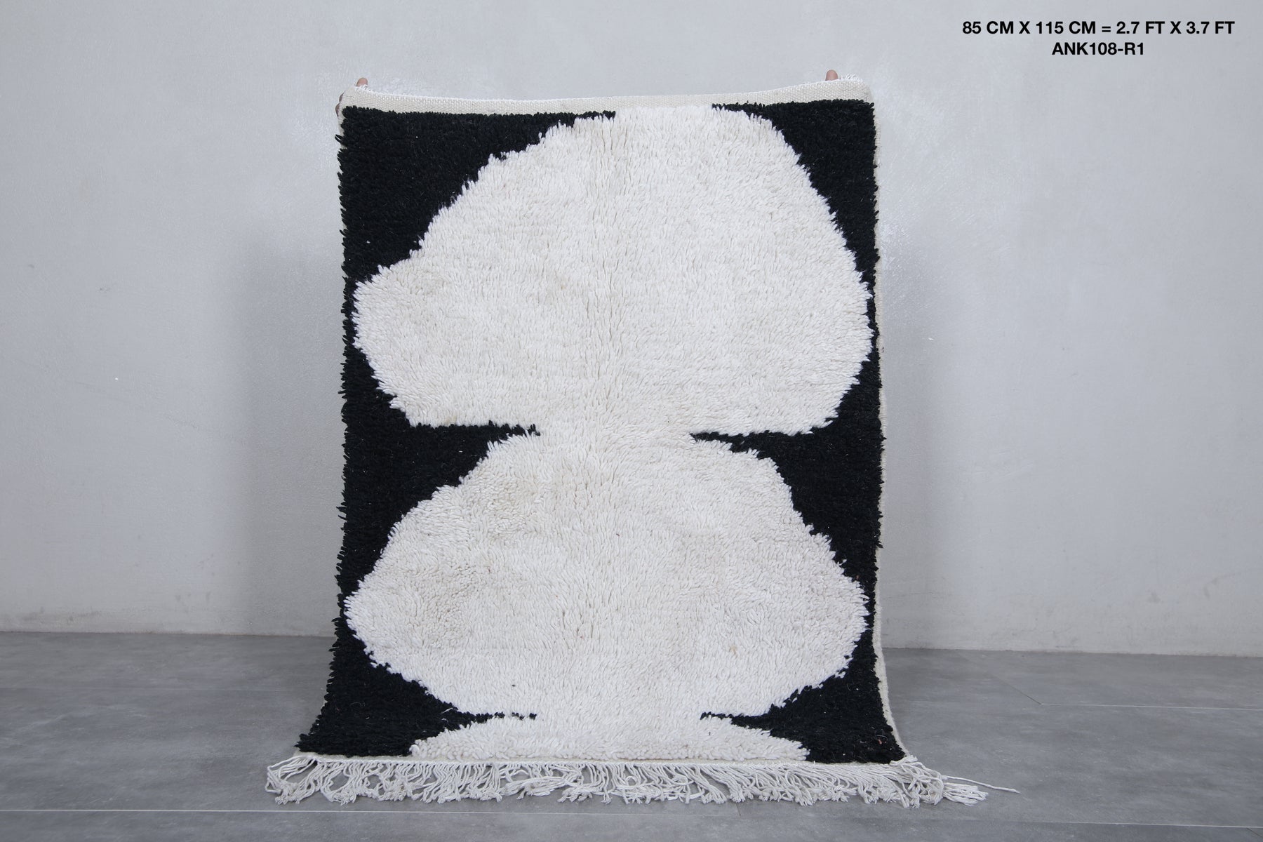 Black and white Moroccan rug - 2.7 x 3.7 Feet | Bold handwoven design