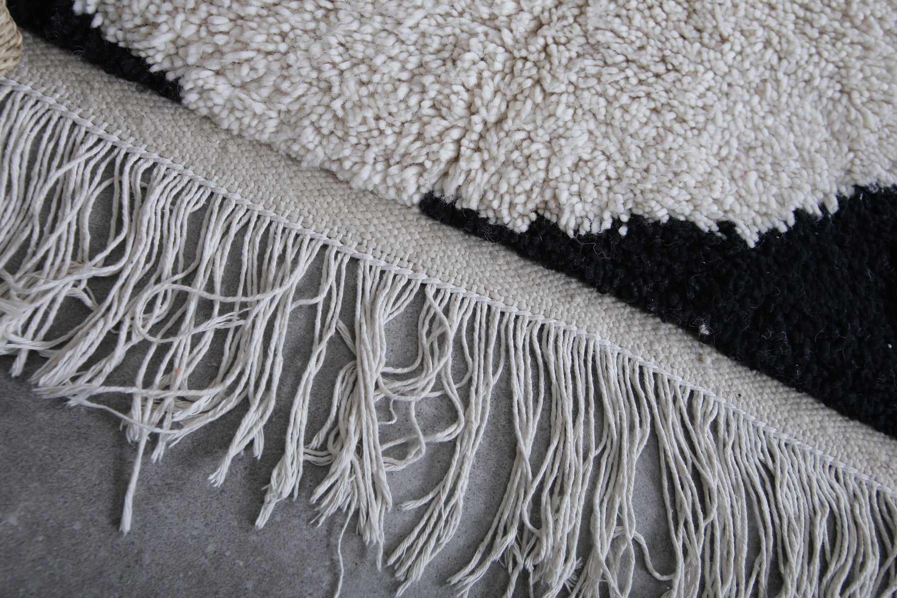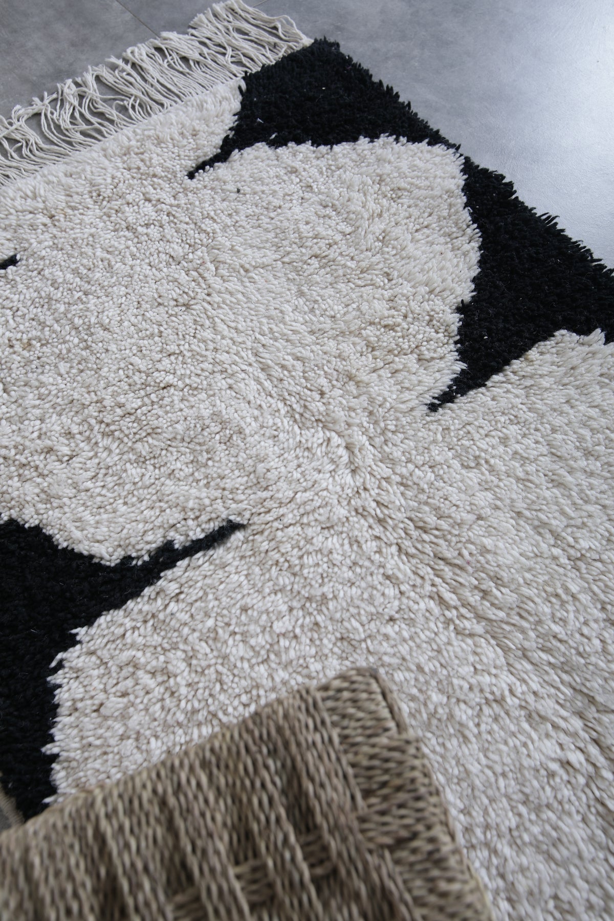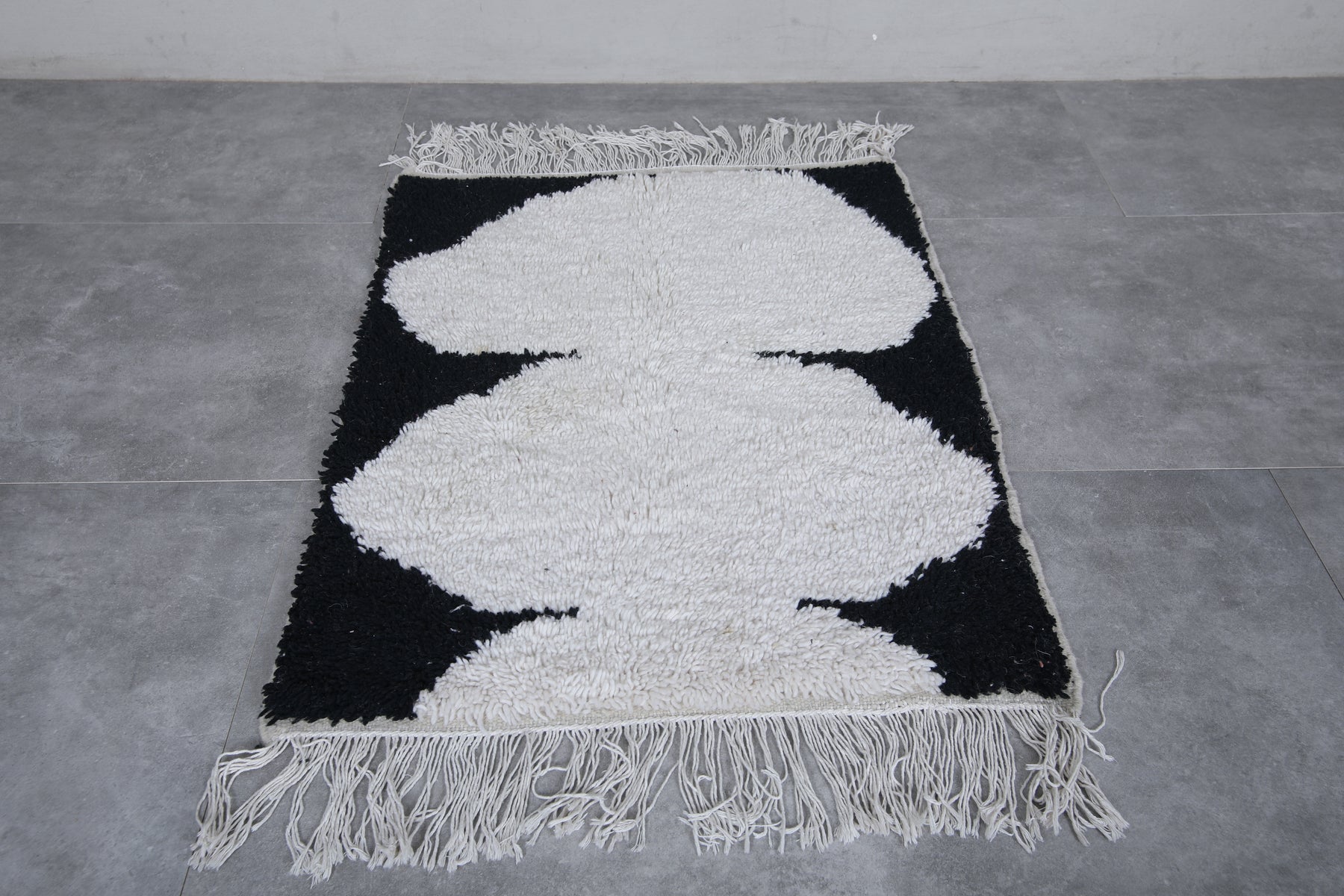 Black and white Moroccan rug - 2.7 x 3.7 Feet | Bold handwoven design