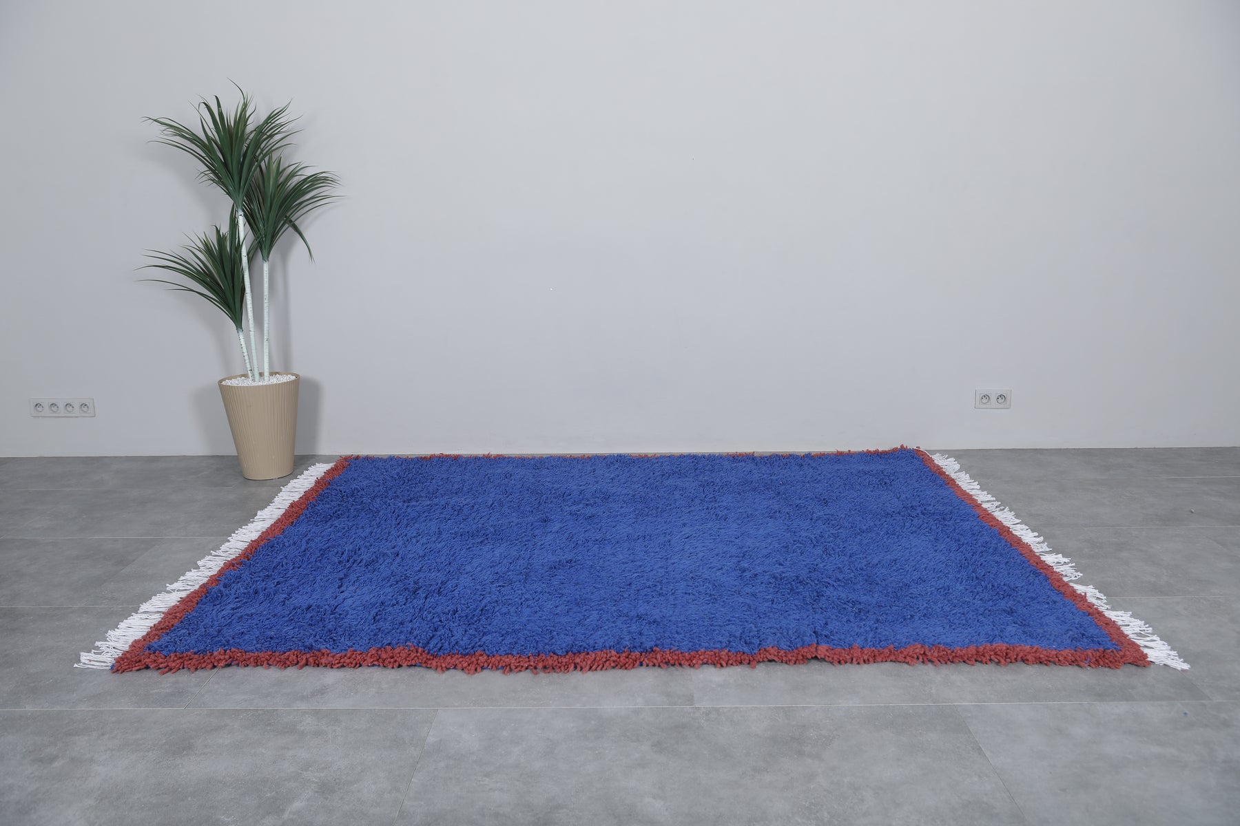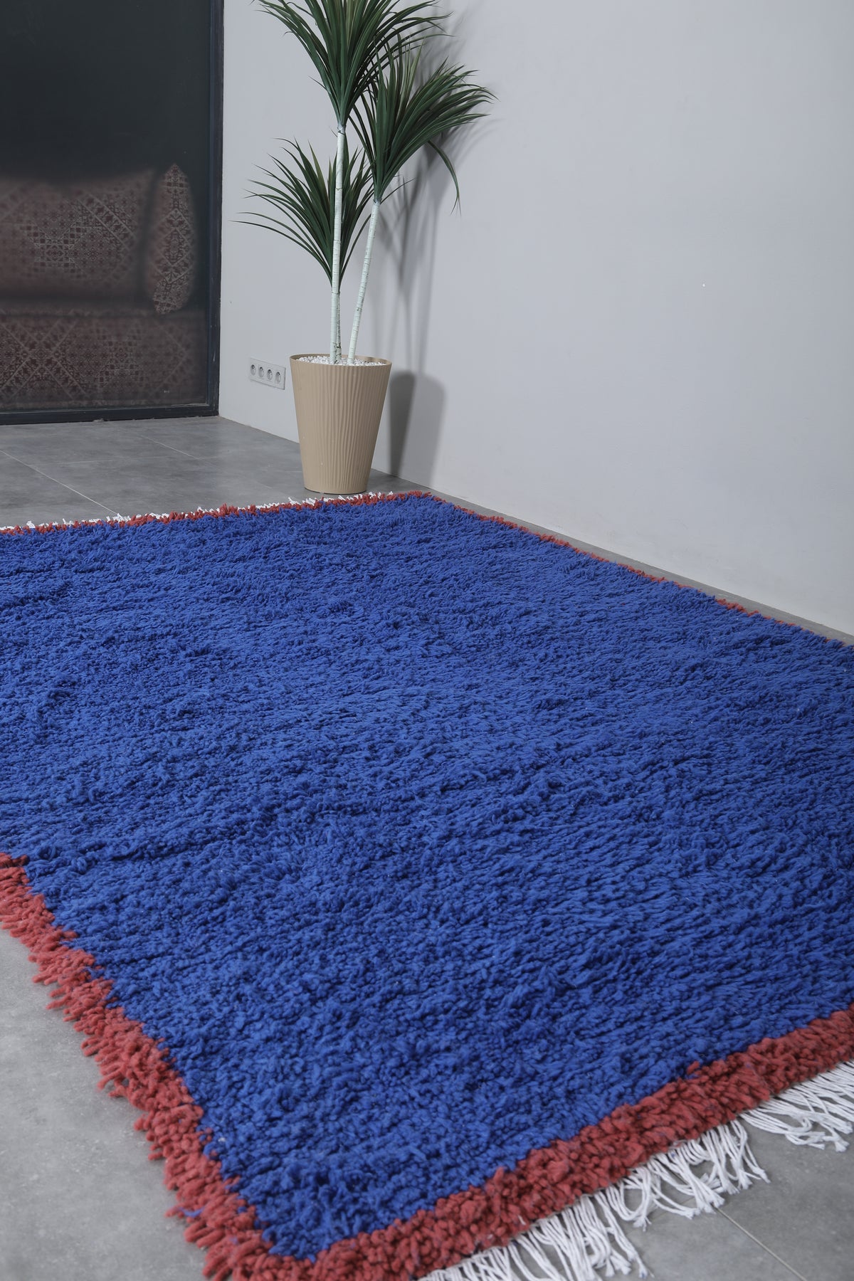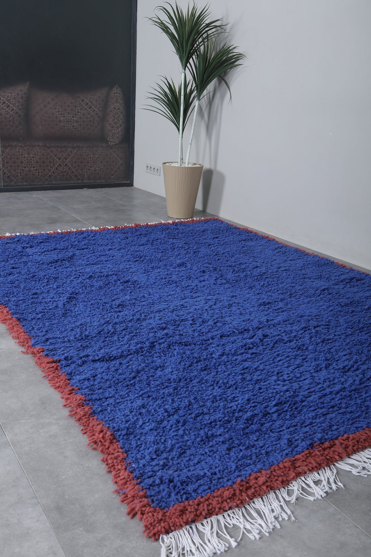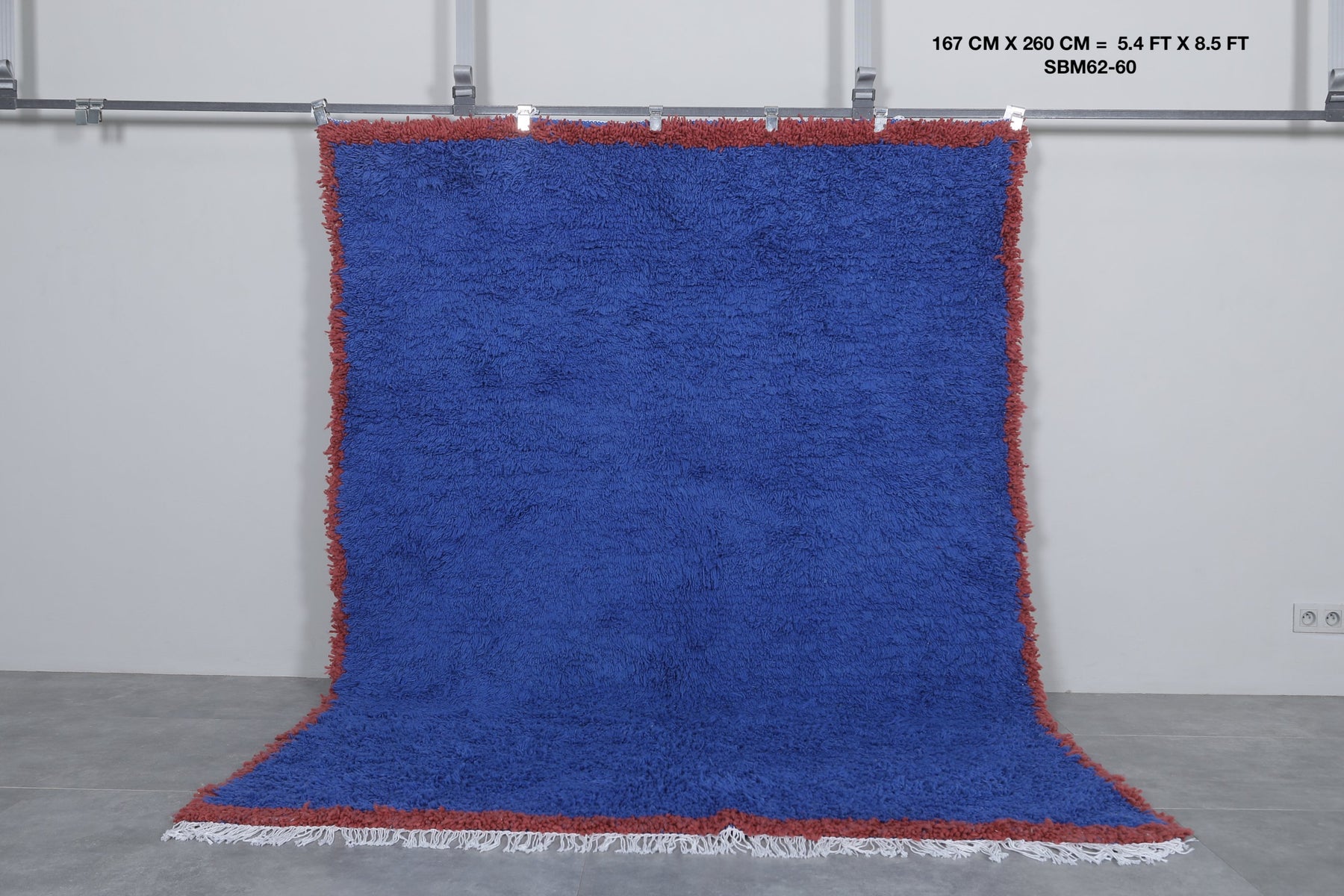Add a bold statement to your decor with this vibrant blue Moroccan rug, measuring 5.4 x 8.5 feet (167 CM x 260 CM). Handmade with care, this rug features a striking blue hue framed by a contrasting border, blending traditional craftsmanship with modern aesthetics. Crafted from premium-quality wool, it offers a plush and cozy texture, ideal for living rooms, bedrooms, or study spaces. Durable and timeless, this rug complements eclectic, contemporary, or boho-style interiors. Transform your home with this artistic and luxurious Moroccan wool rug.