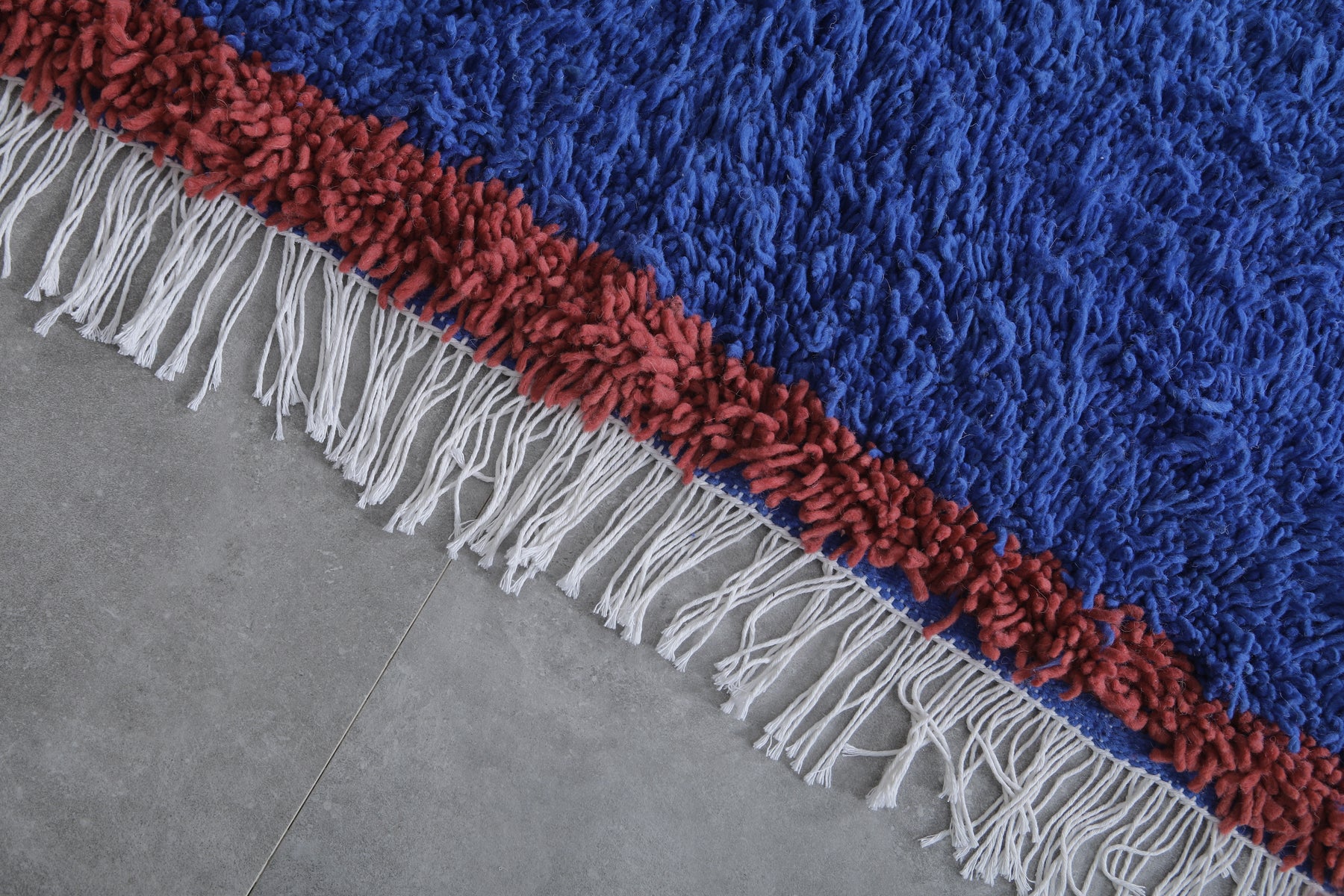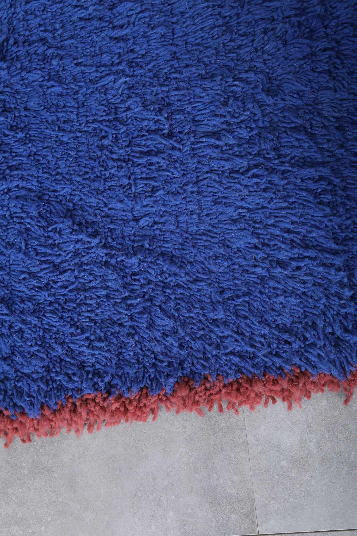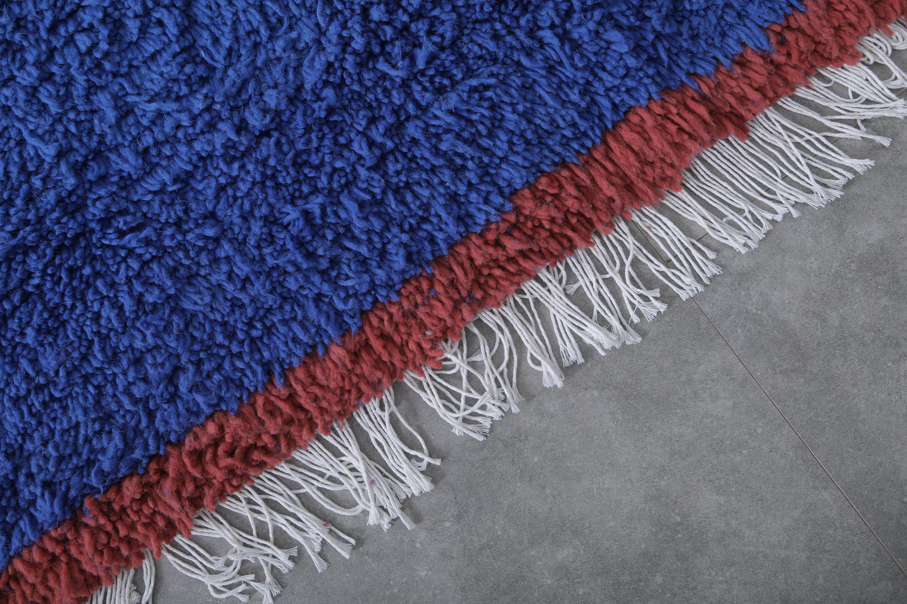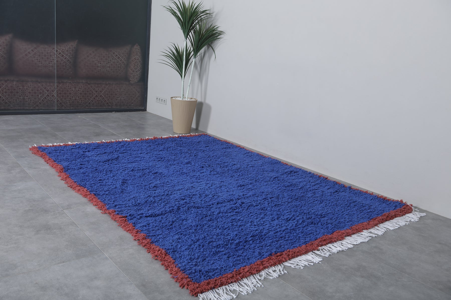 Add a bold statement to your decor with this vibrant blue Moroccan rug, measuring 5.4 x 8.5 feet (167 CM x 260 CM). Handmade with care, this rug features a striking blue hue framed by a contrasting border, blending traditional craftsmanship with modern aesthetics. Crafted from premium-quality wool, it offers a plush and cozy texture, ideal for living rooms, bedrooms, or study spaces. Durable and timeless, this rug complements eclectic, contemporary, or boho-style interiors. Transform your home with this artistic and luxurious Moroccan wool rug.