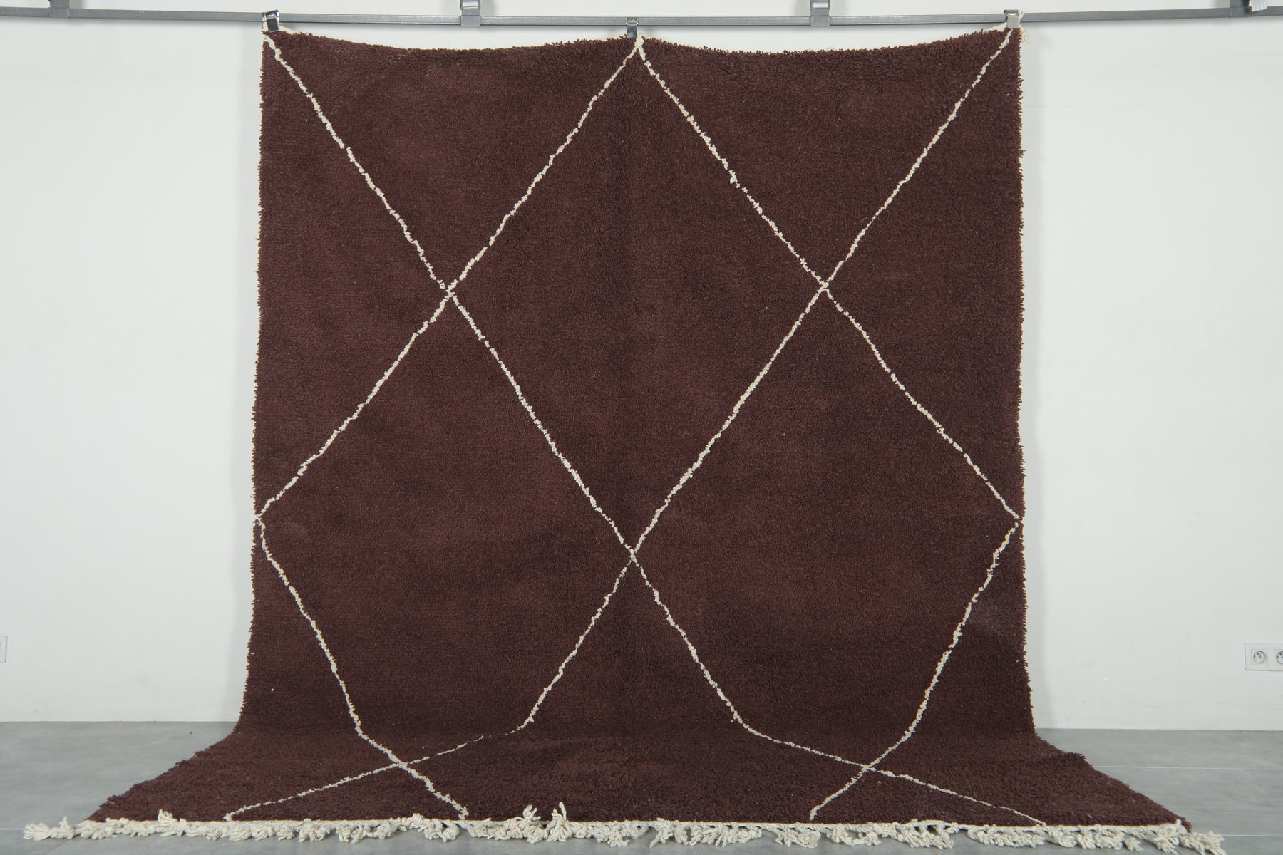 Brown Moroccan beni ourain rug with white diamond pattern - 8 ft x 10.3 ft