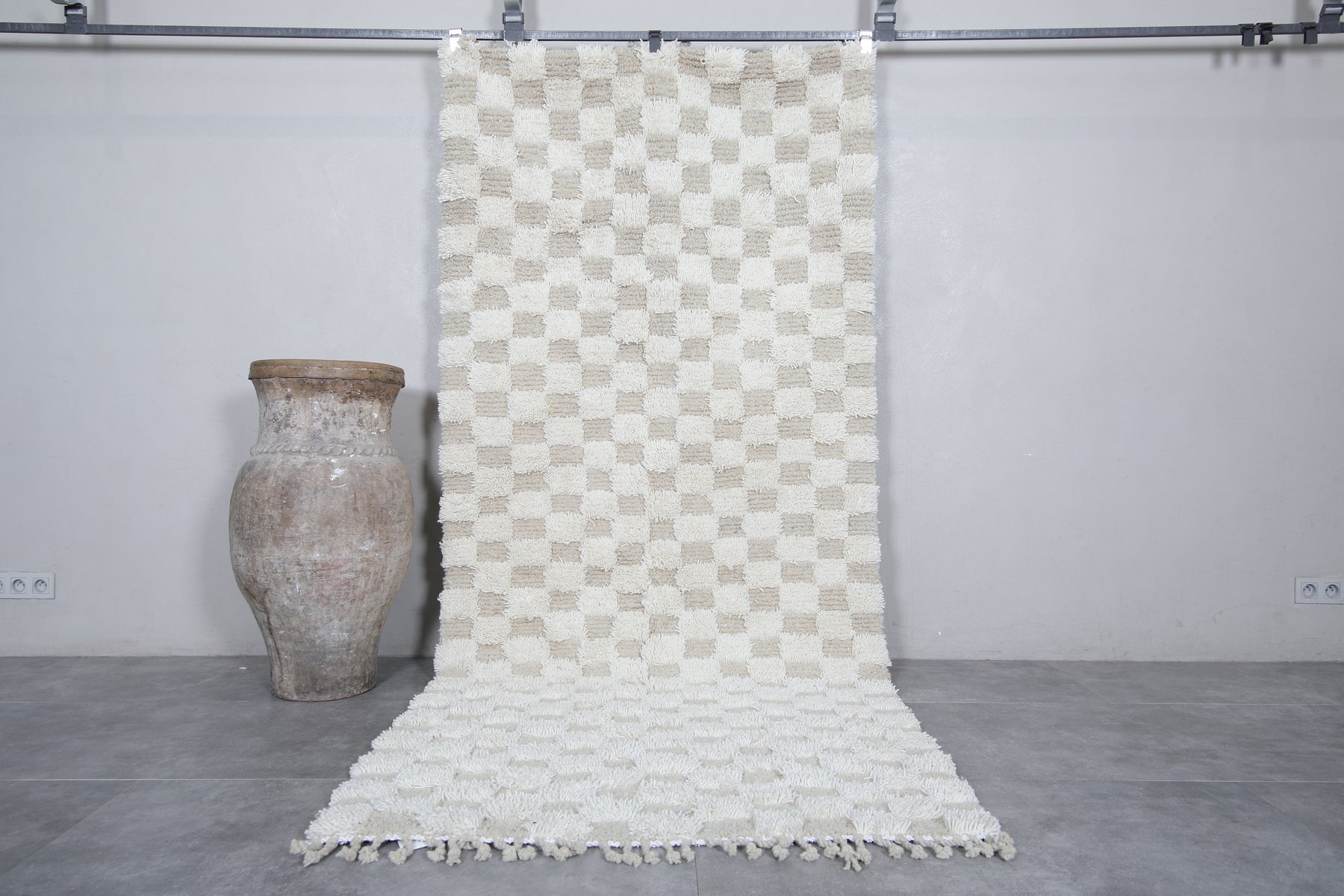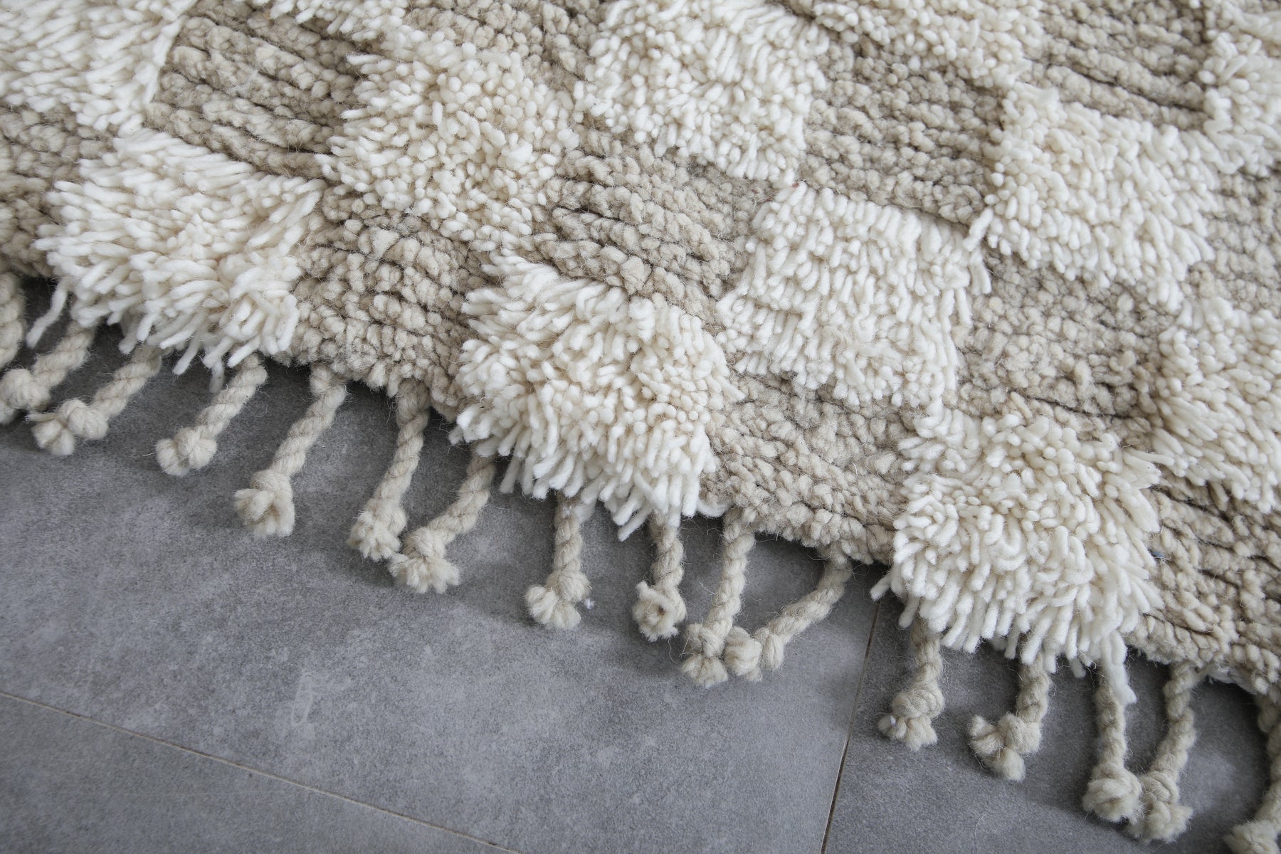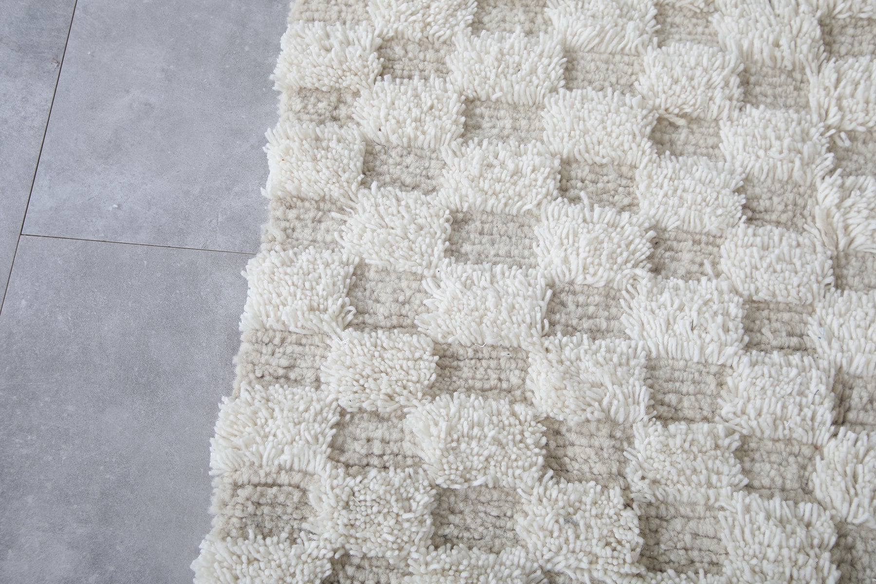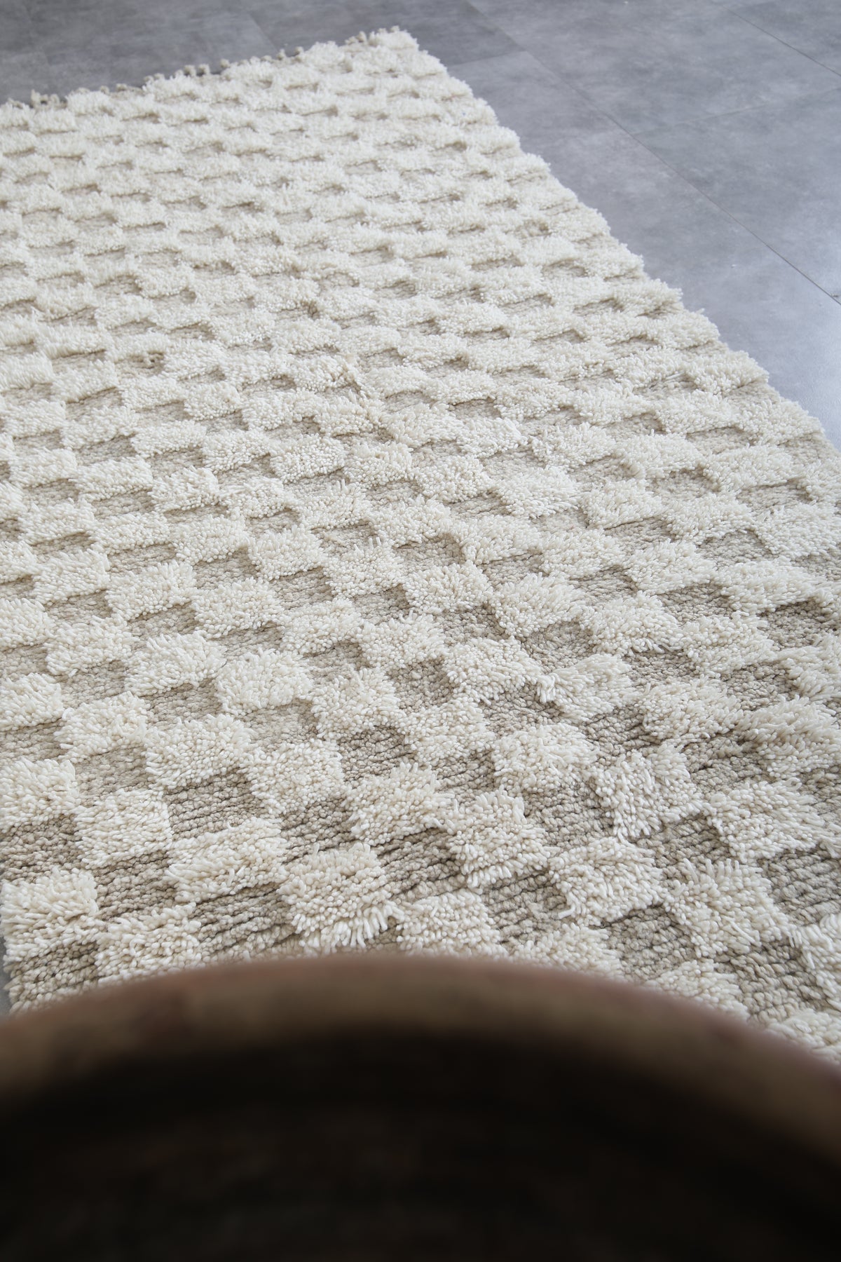 Checkered Moroccan rug – Custom beige & white wool carpet