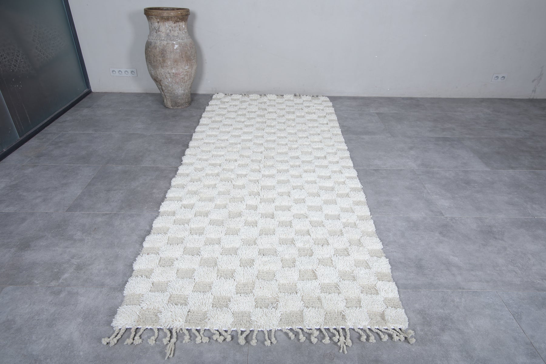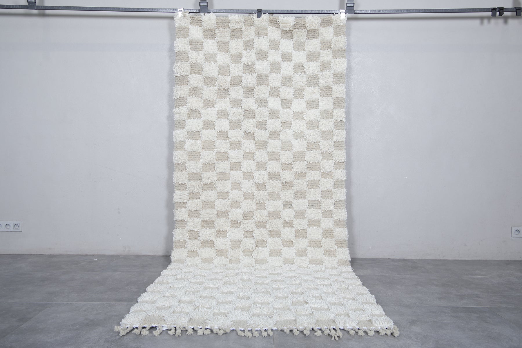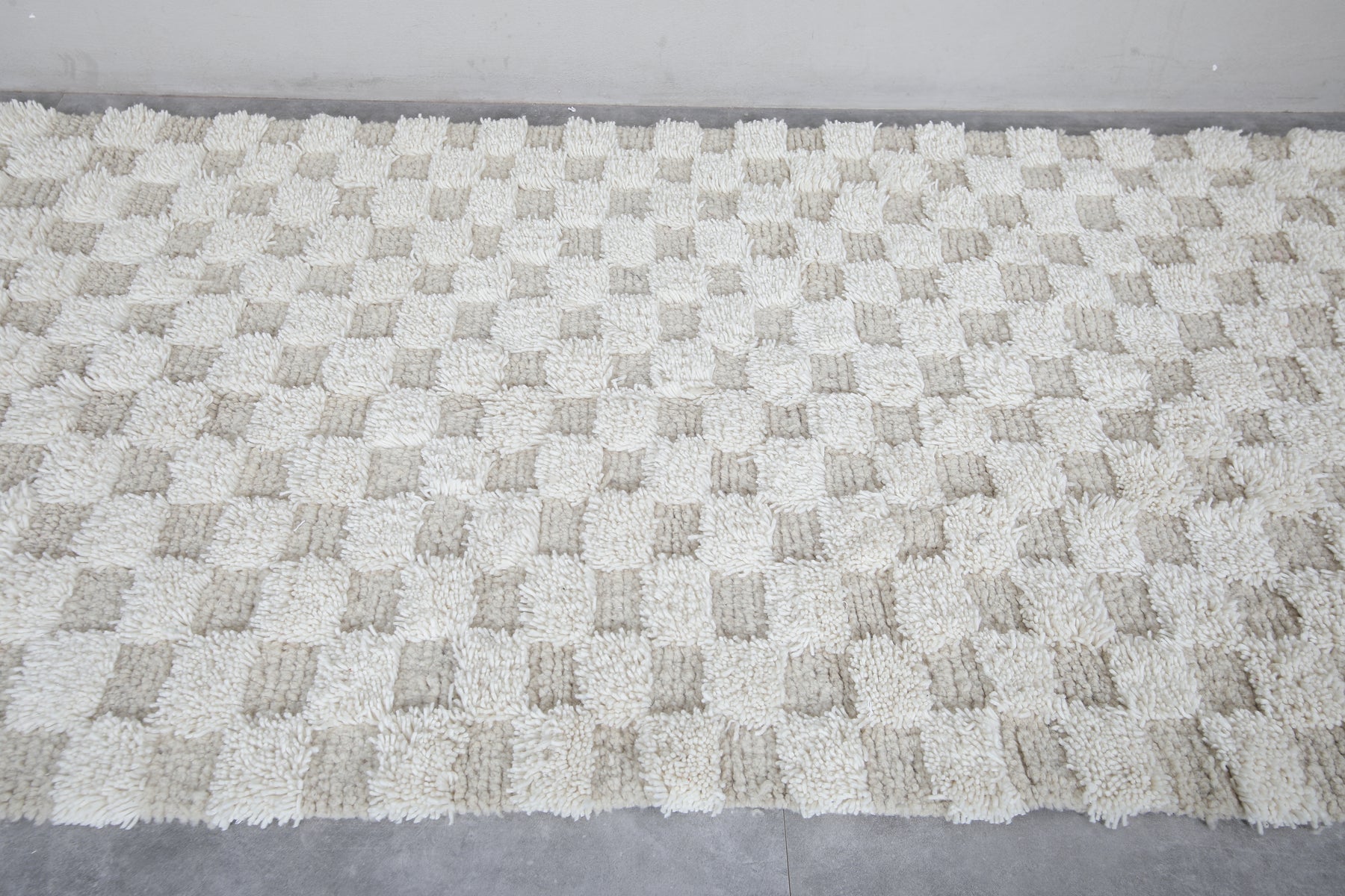 Checkered Moroccan rug – Custom beige & white wool carpet
