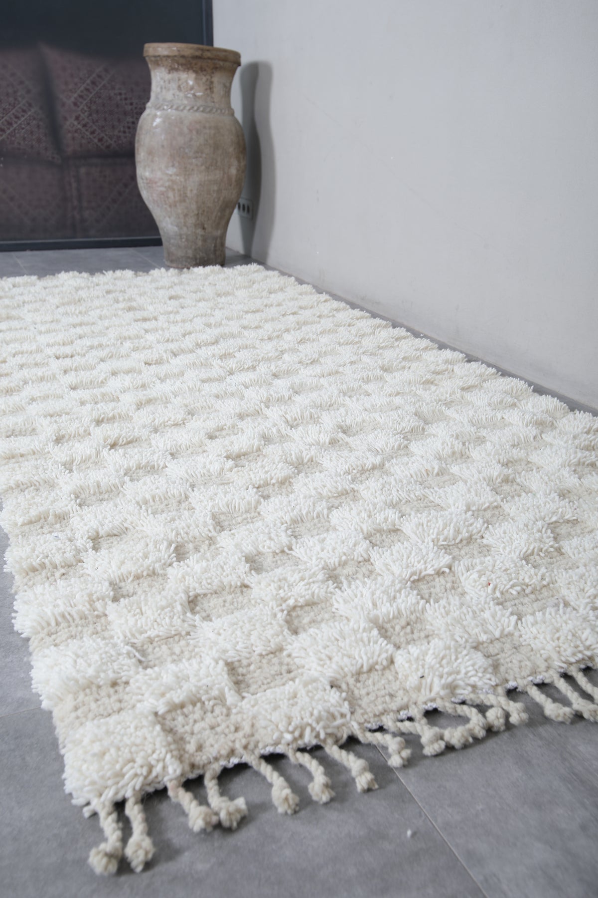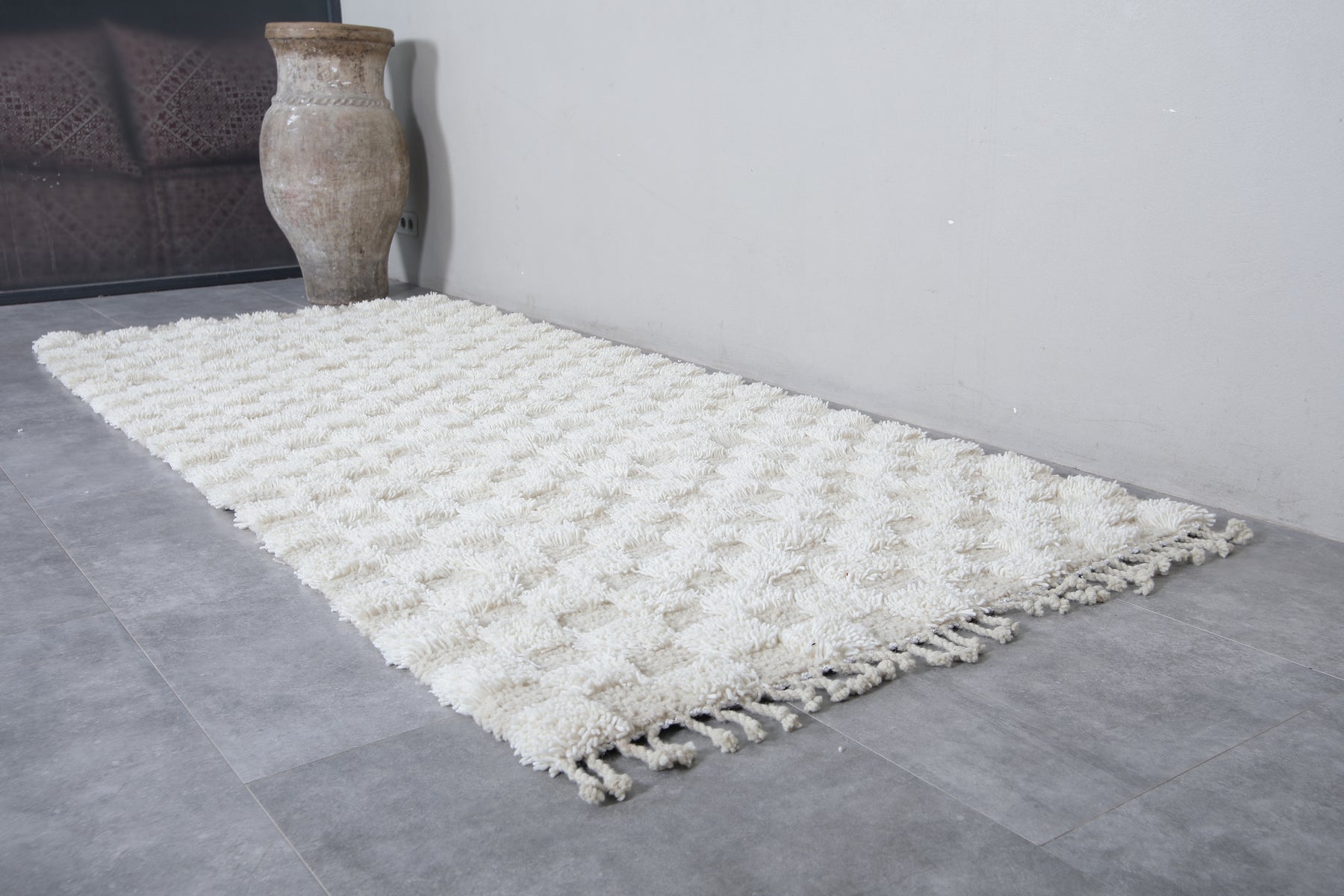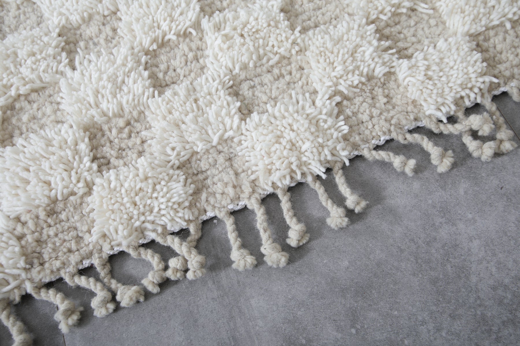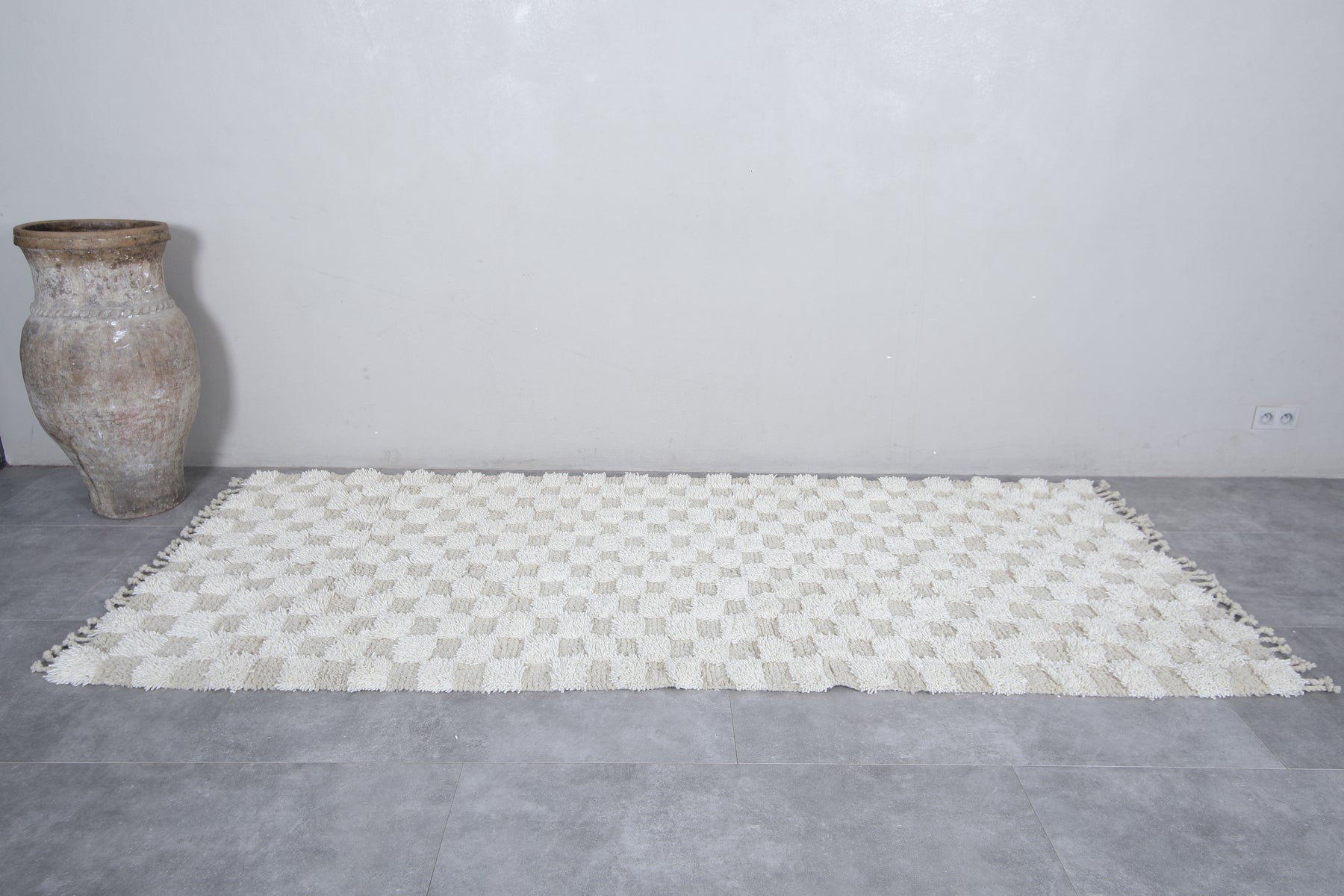 Checkered Moroccan rug – Custom beige & white wool carpet