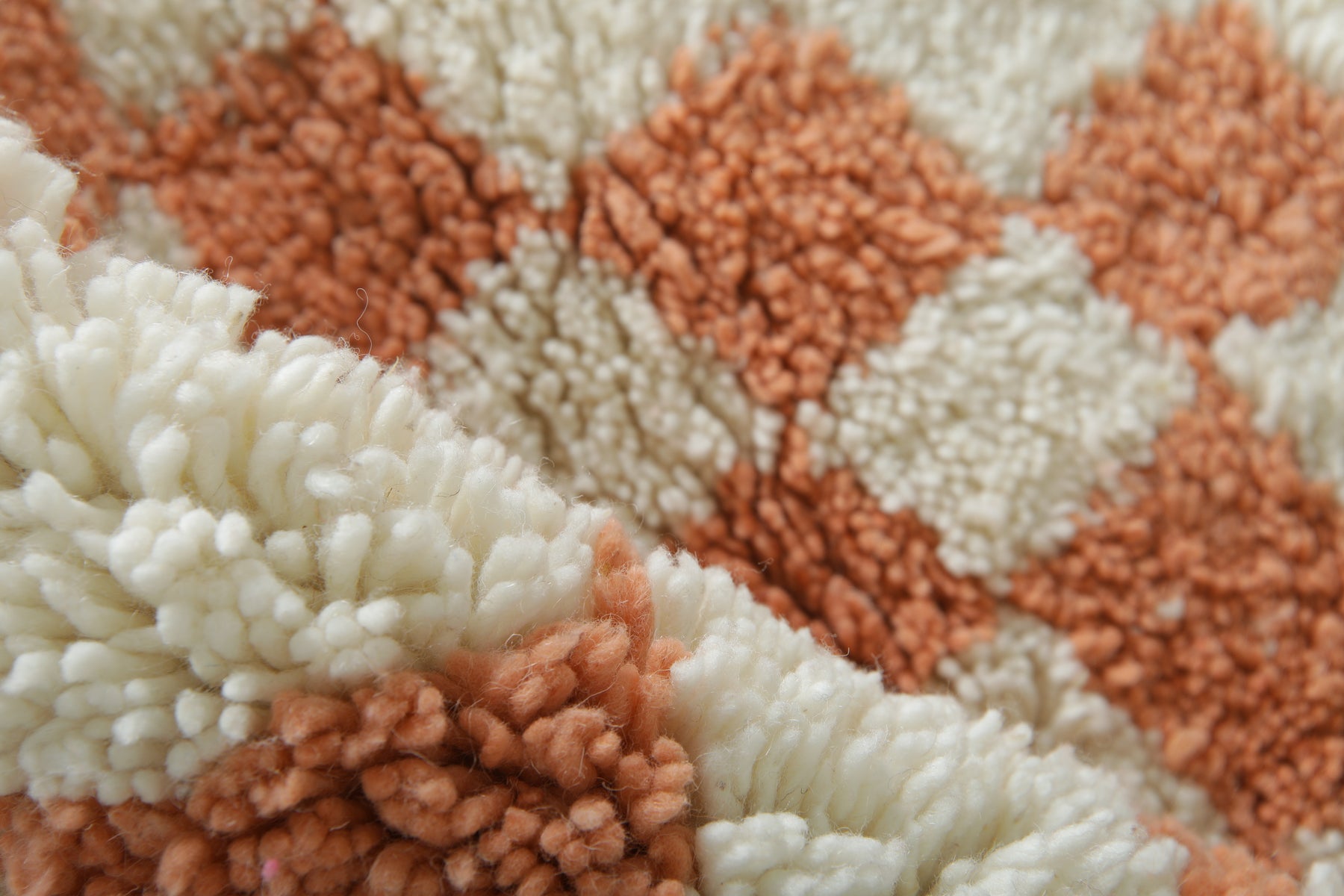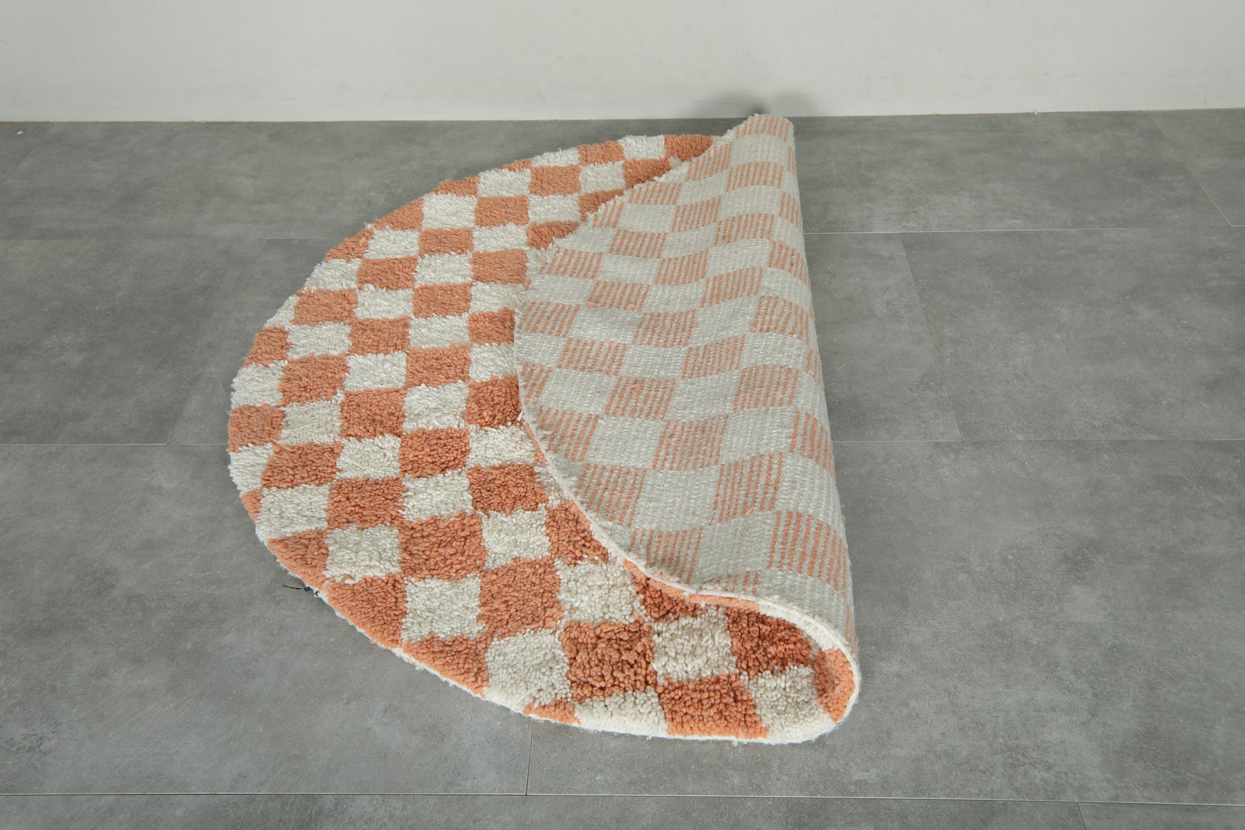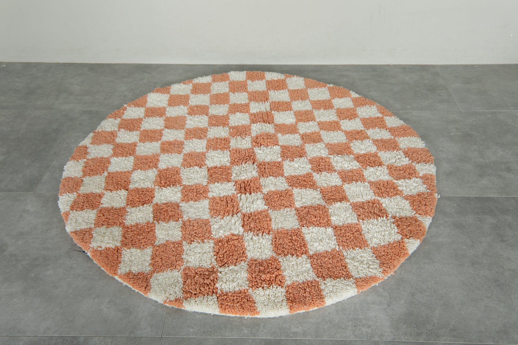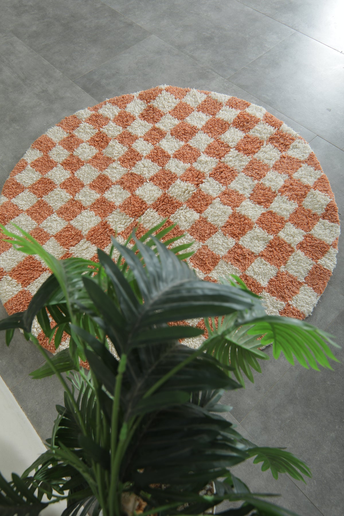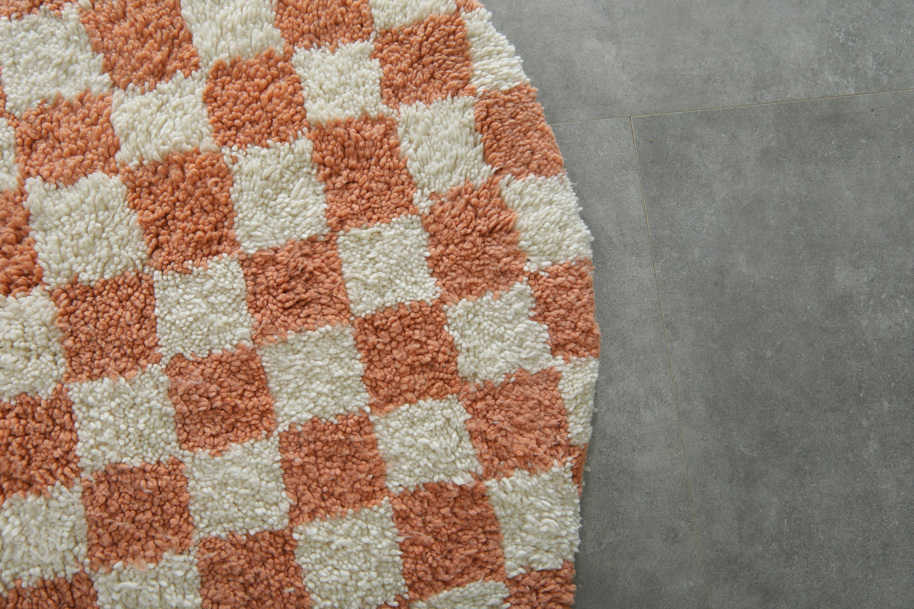 Checkered orange & white Moroccan round rug - 4.7 ft