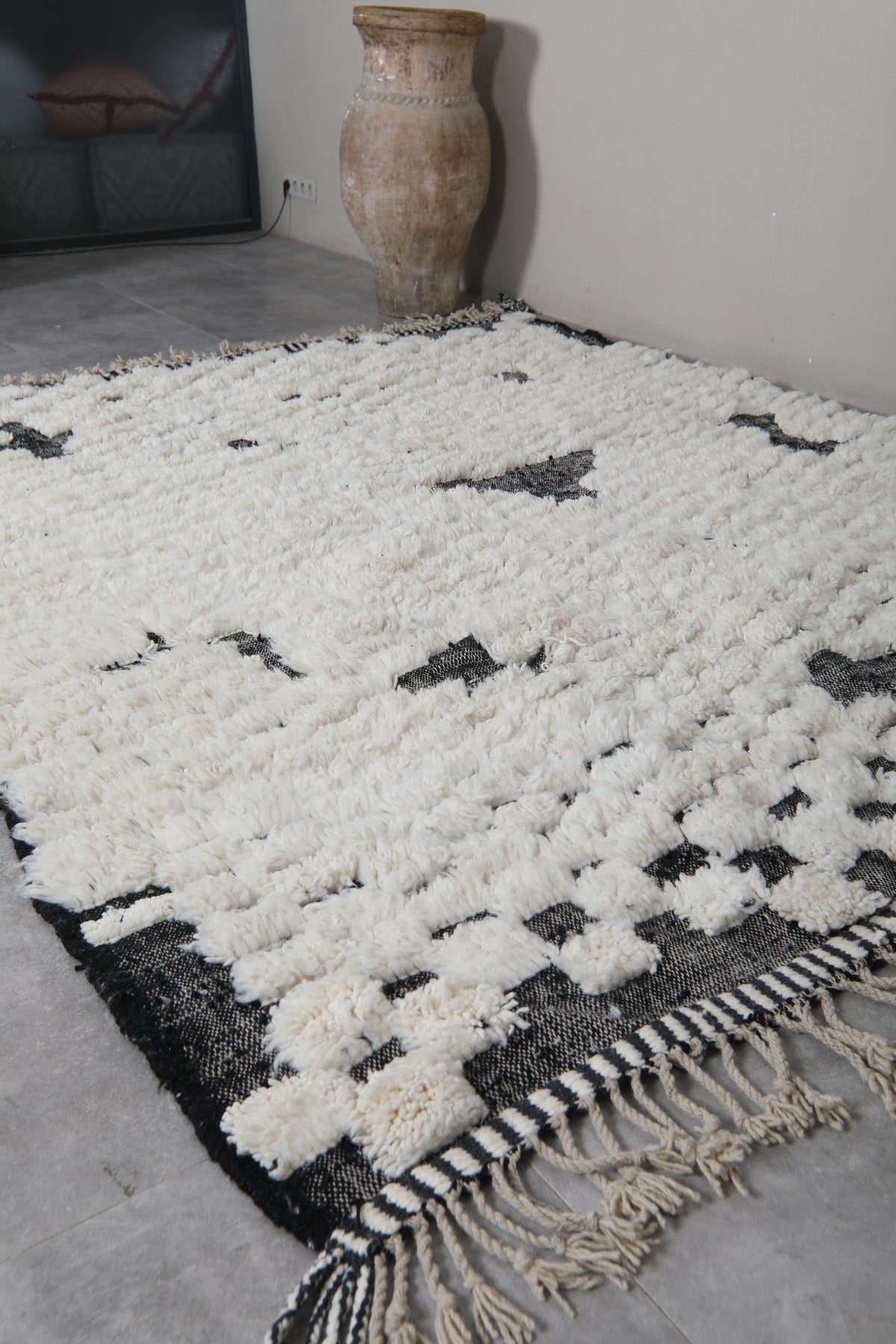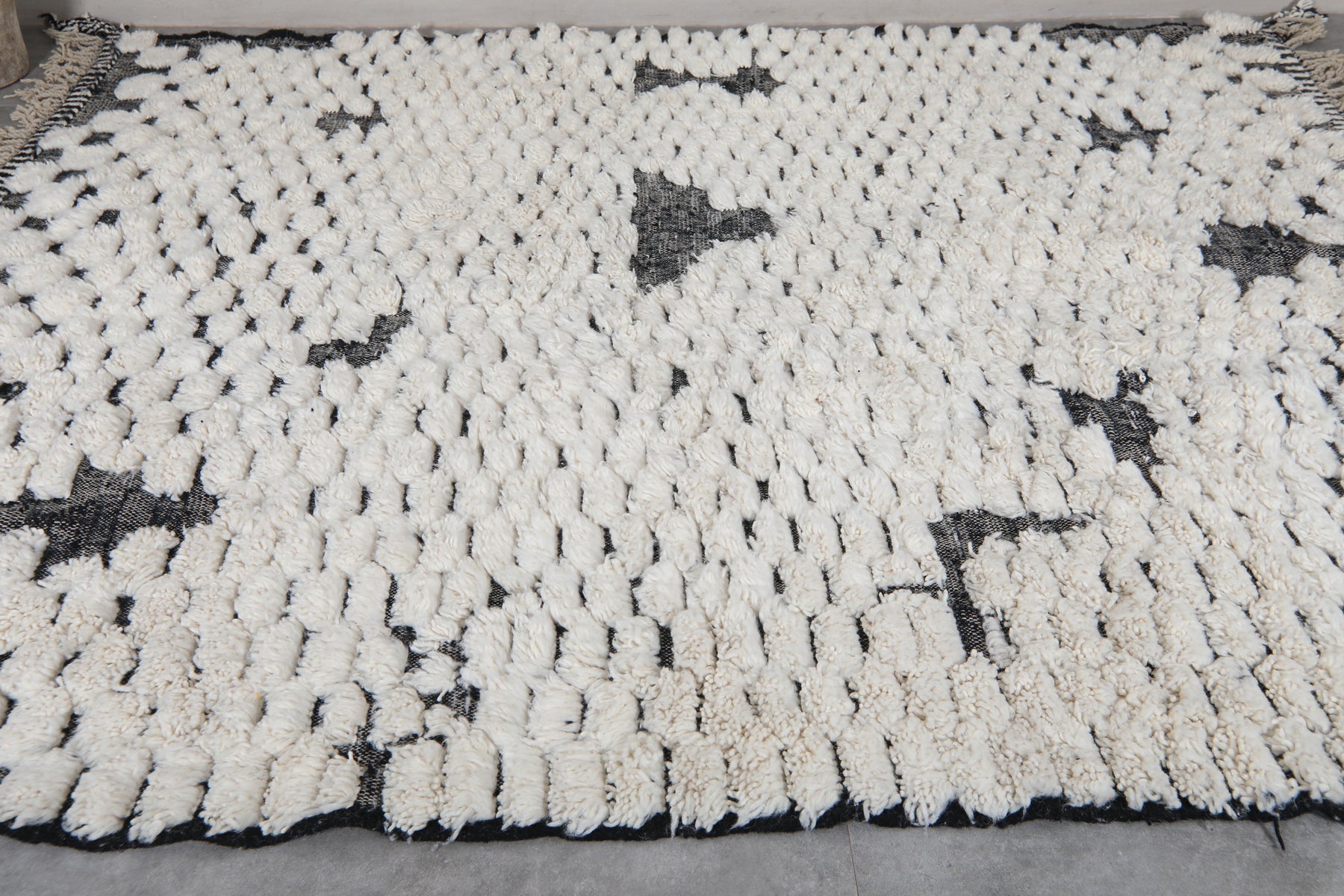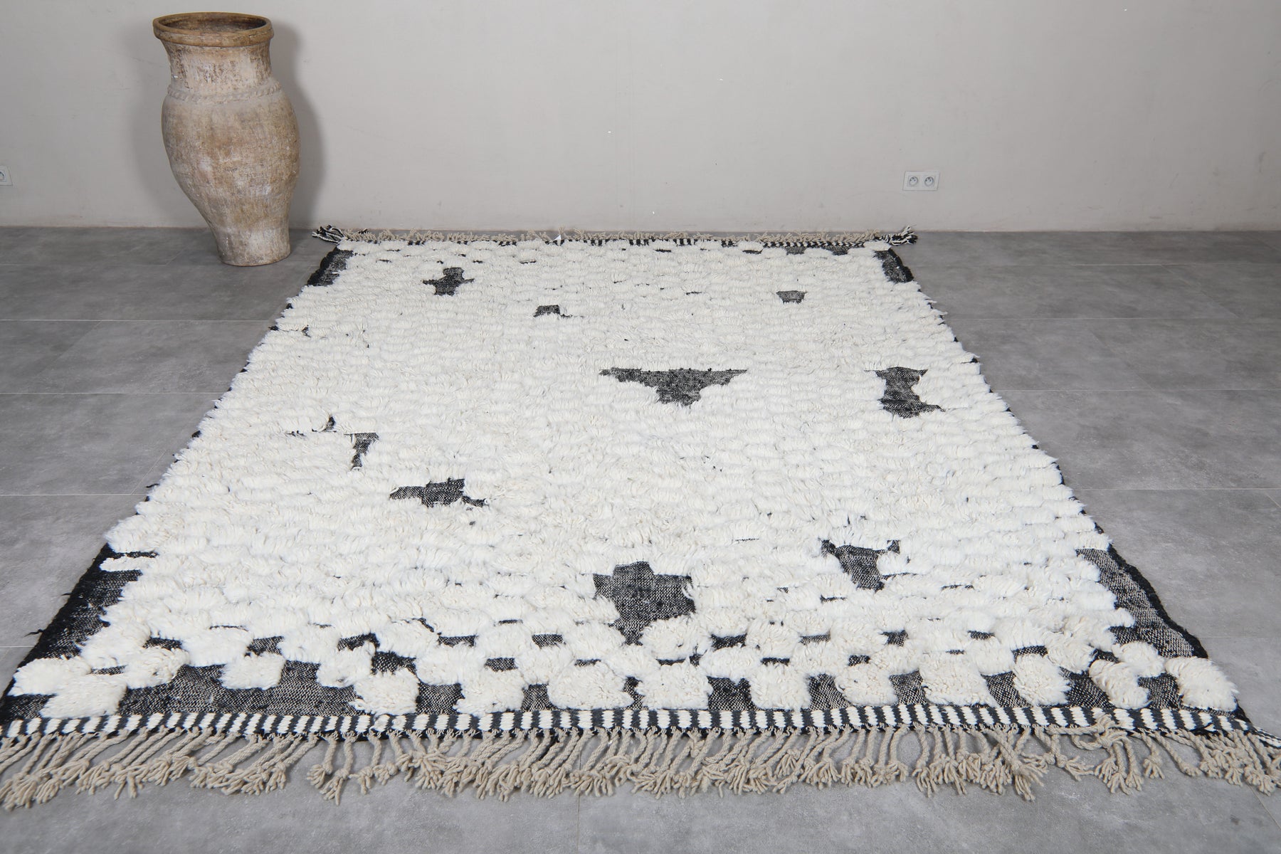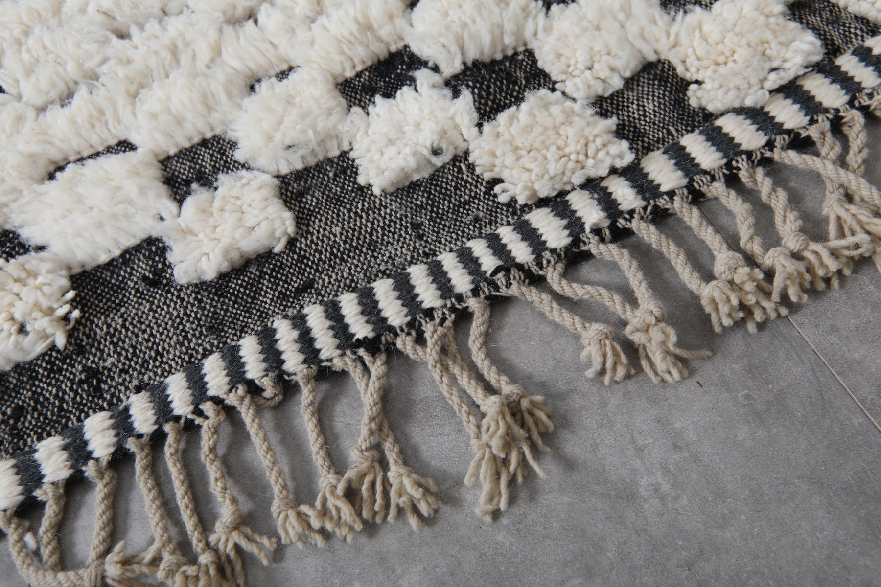 Add bold character to your space with this black and white Moroccan rug, featuring a modern checkered design with abstract motifs. Handwoven from 100% wool, this plush Beni Ourain-style rug brings both comfort and striking contrast to any room. Its monochrome palette makes it a versatile addition to minimalist, contemporary, or boho interiors. Ideal for living rooms, bedrooms, or studios, this eye-catching rug is a statement piece rooted in Moroccan tradition and crafted for modern living.
