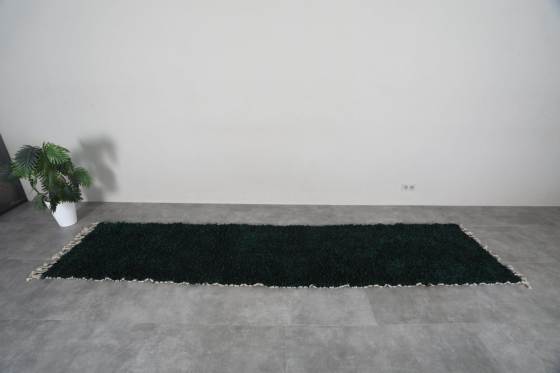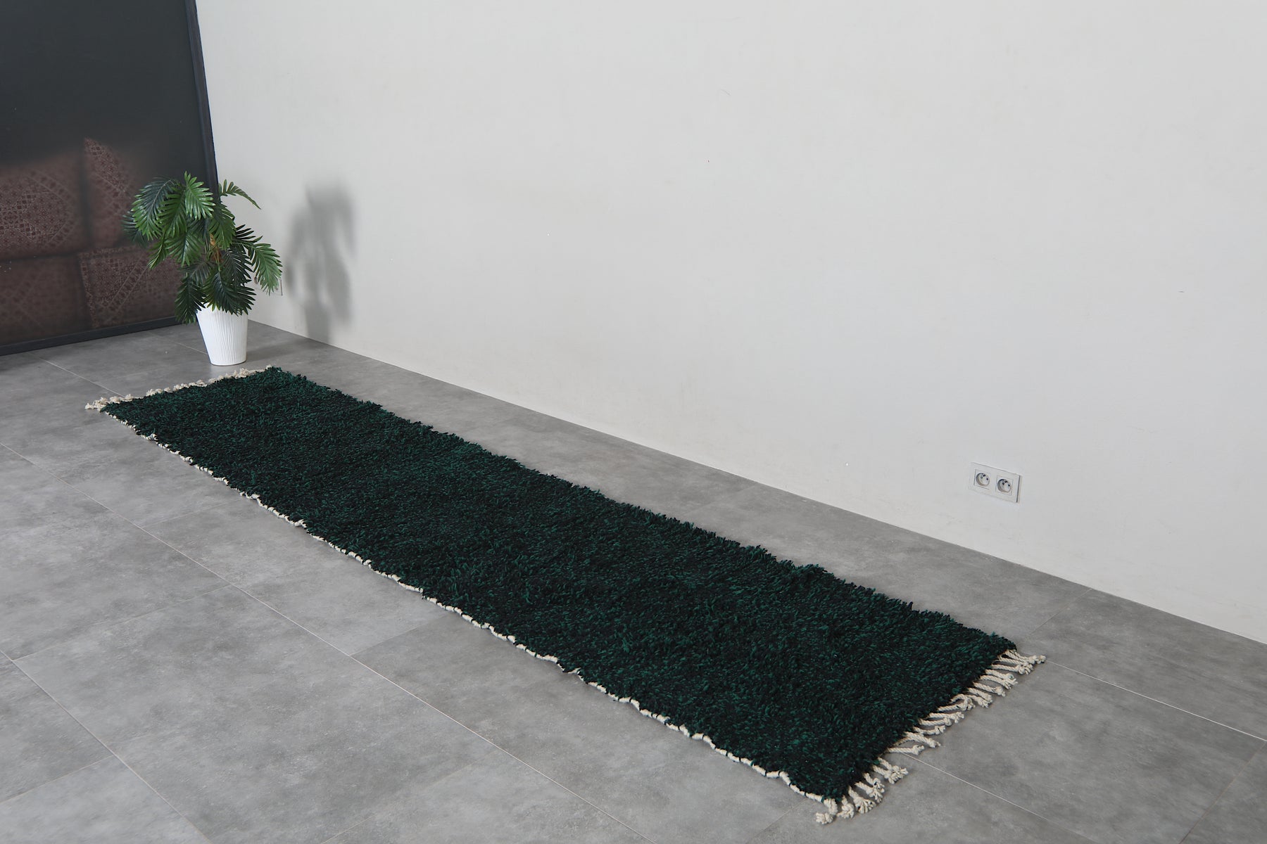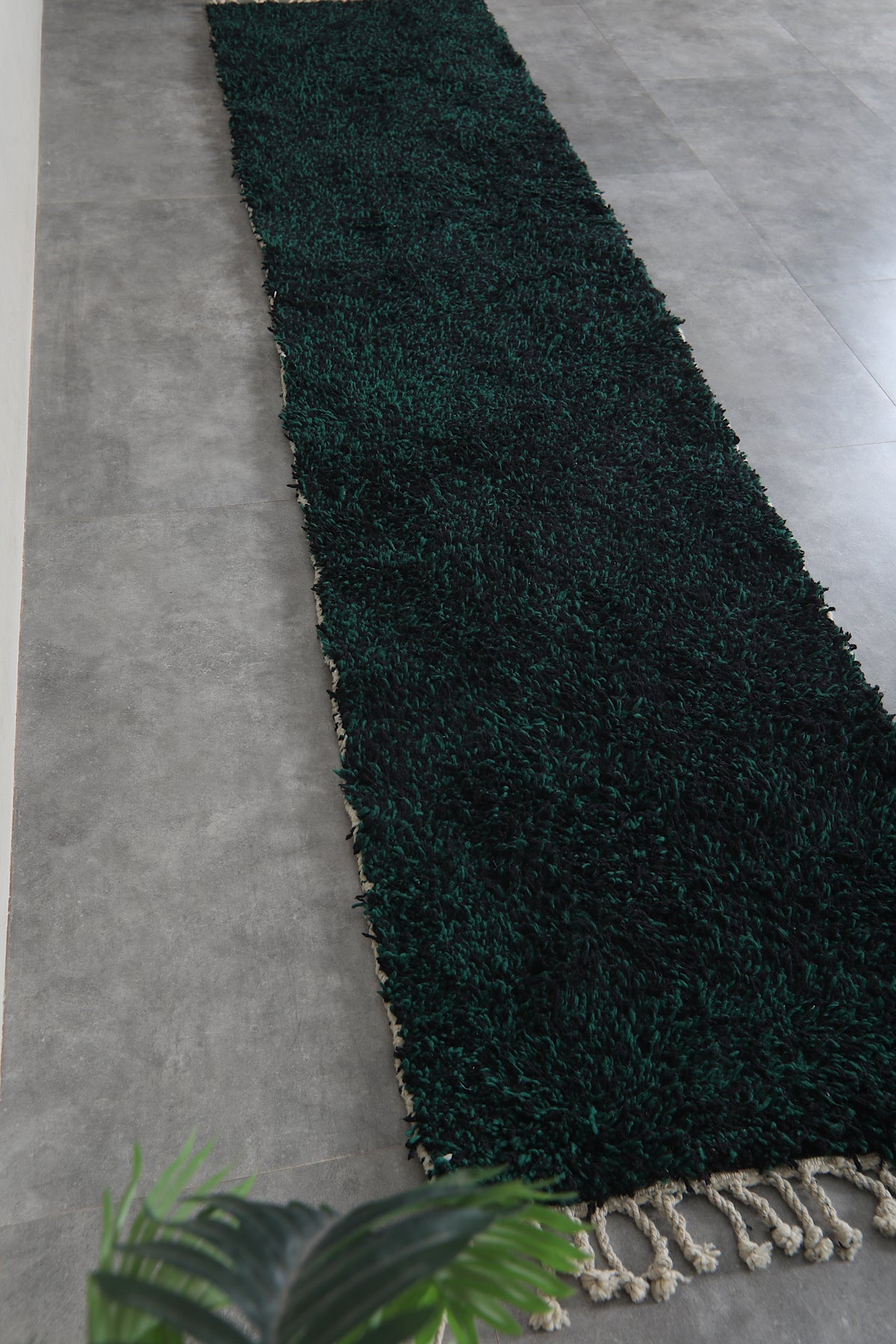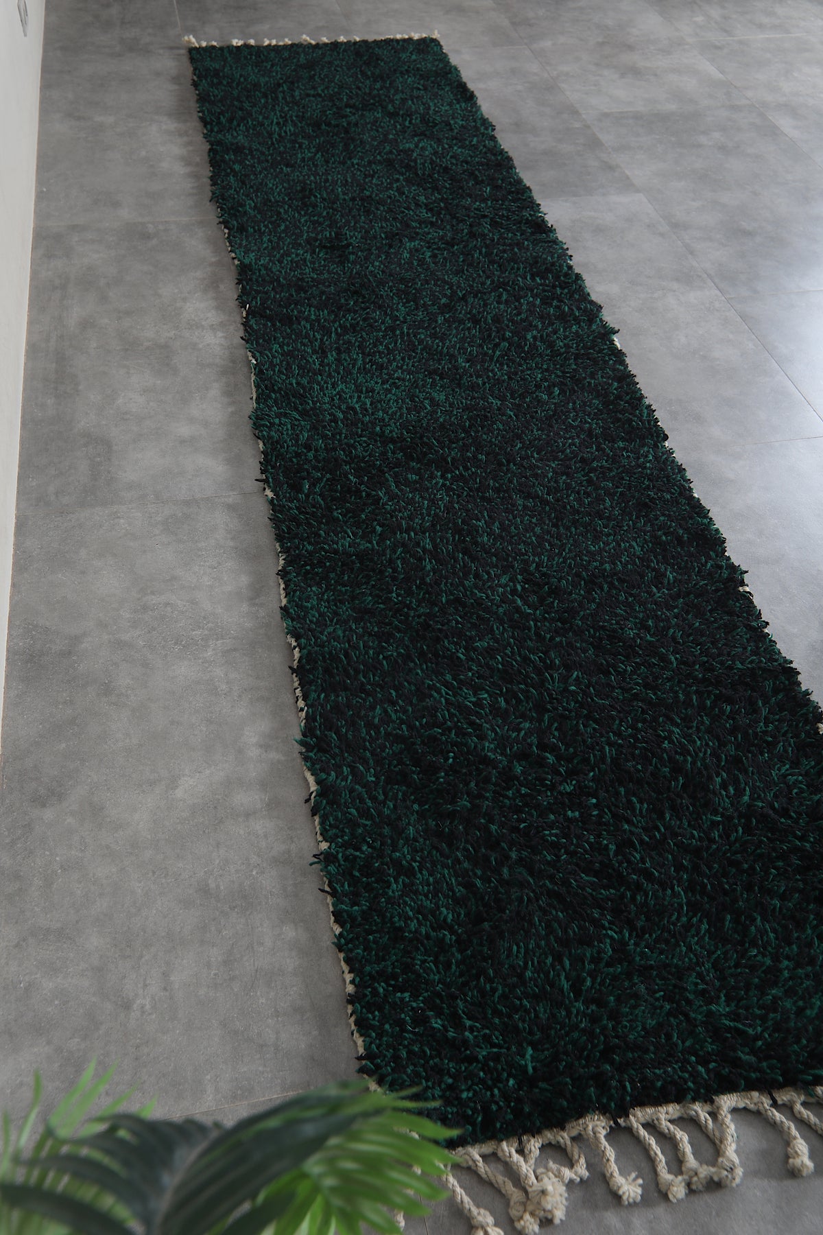 Elevate your hallway with this stunning handmade Berber wool runner rug, crafted in Morocco with traditional techniques. The rich dark emerald green hue brings warmth and sophistication to any space, while the durable wool construction ensures lasting beauty. Perfect for high-traffic areas, this authentic carpet adds character and comfort underfoot. Available in custom sizes to fit your exact needs, this deep forest green runner combines timeless Moroccan craftsmanship with modern versatility for a truly unique home accent.