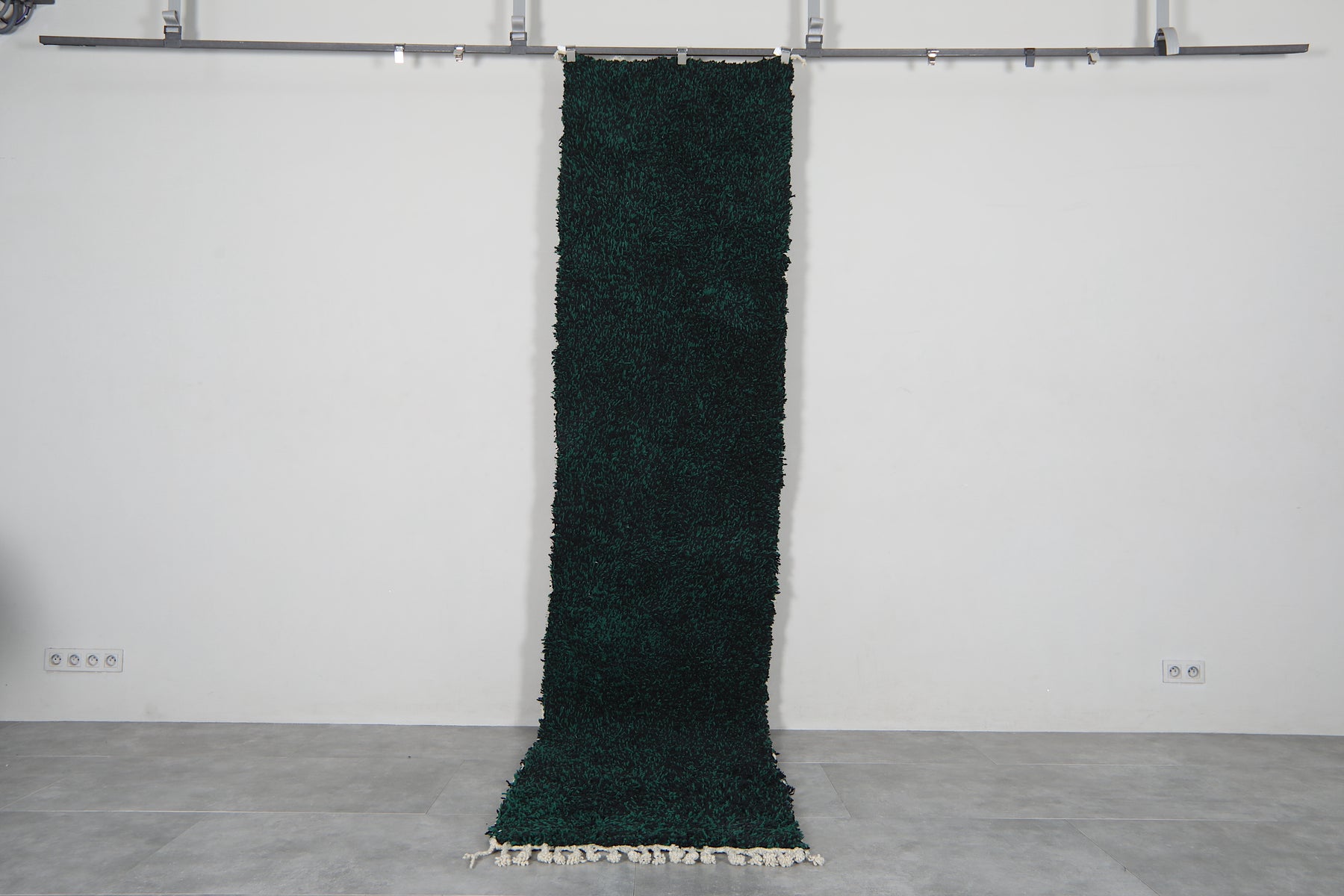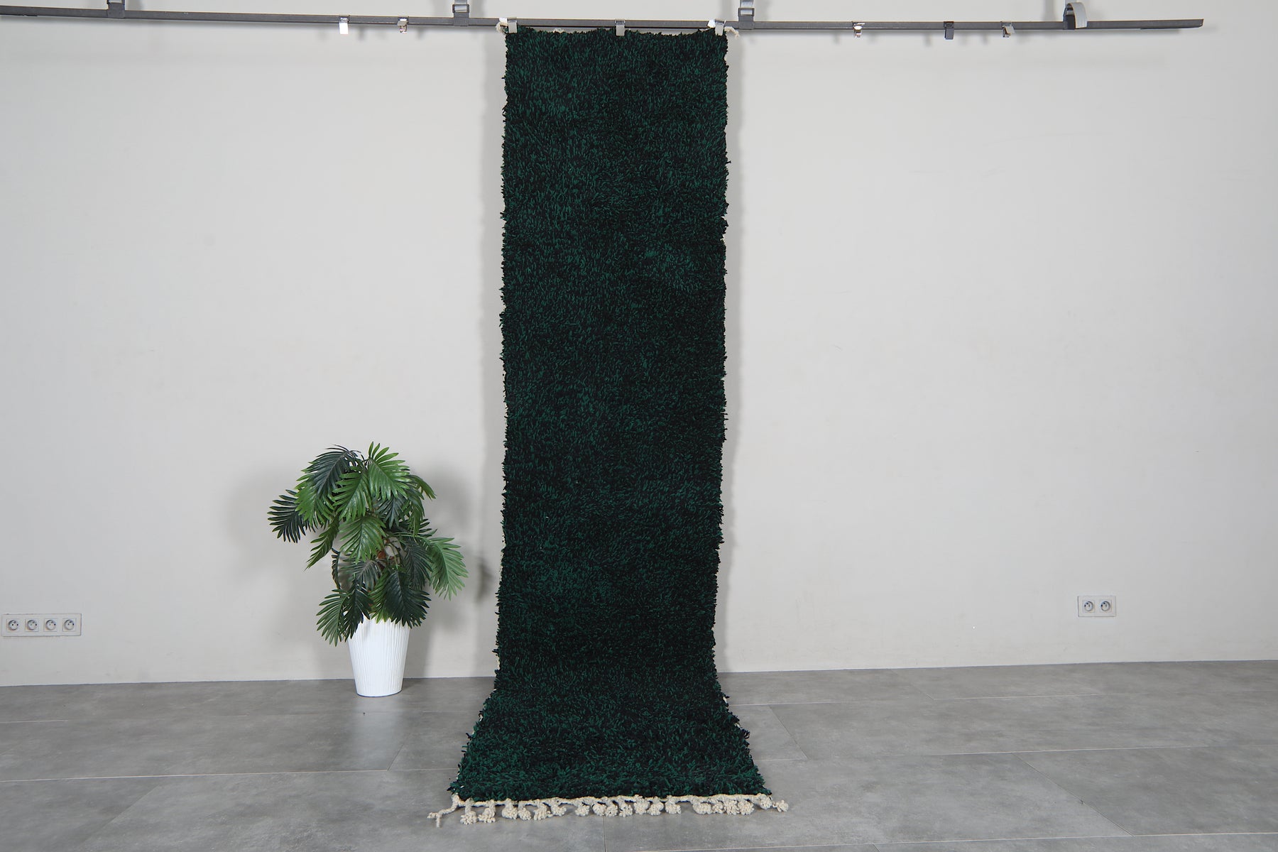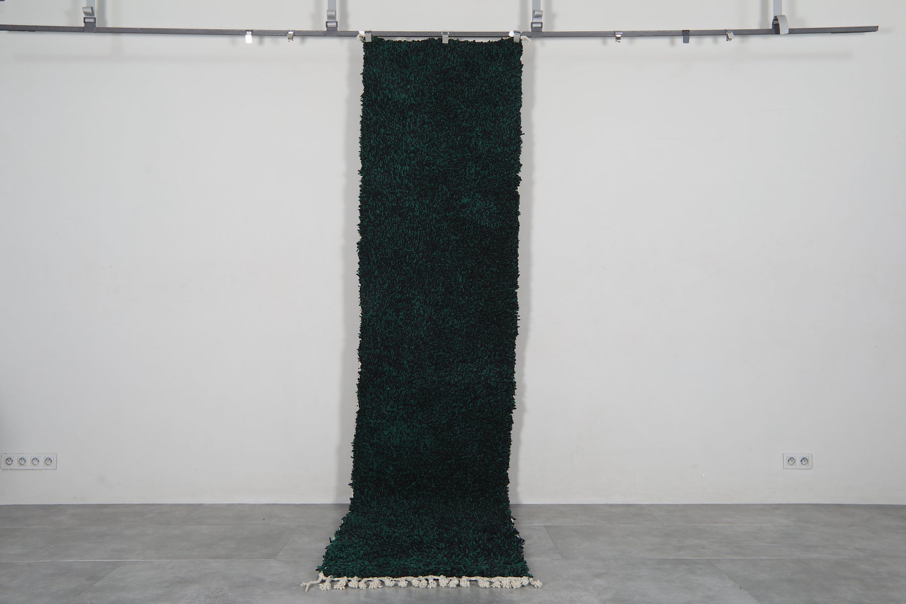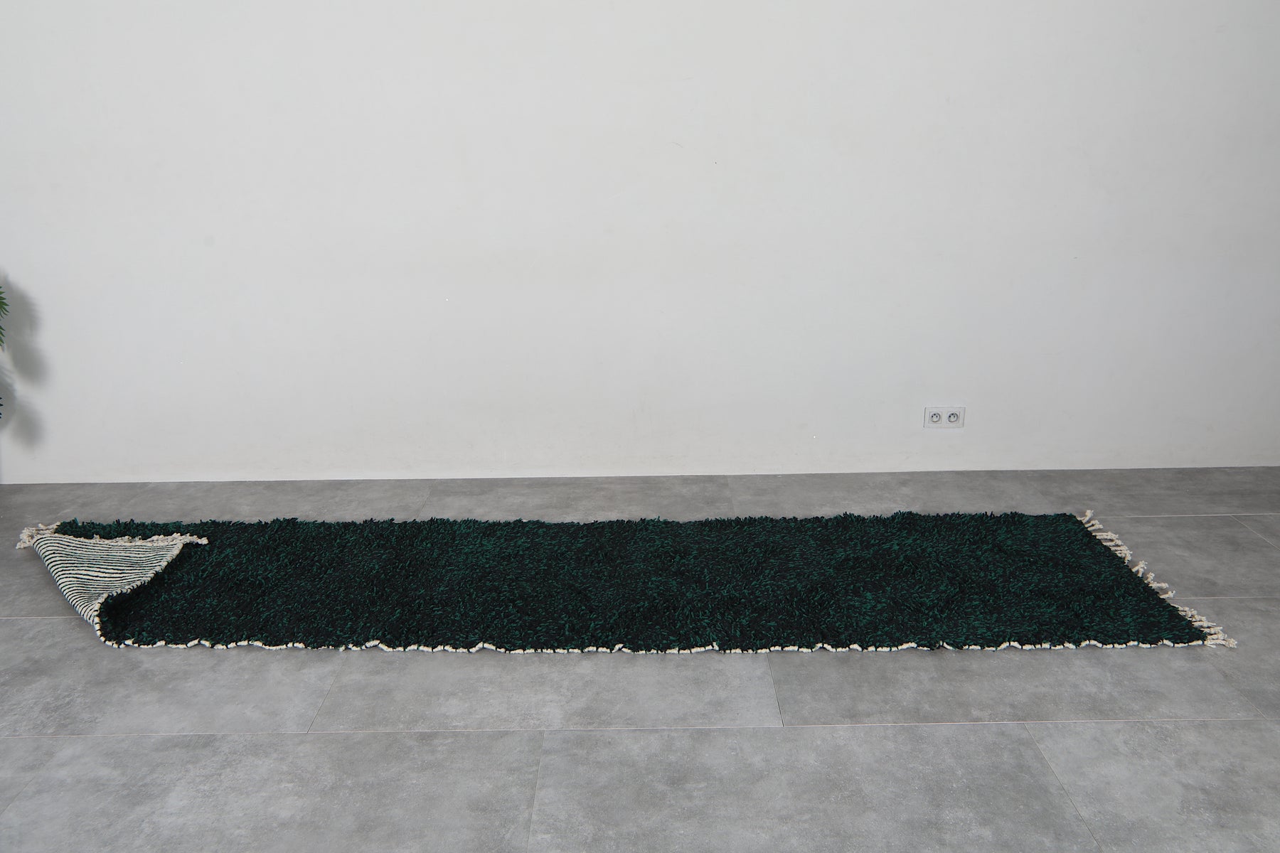 Elevate your hallway with this stunning handmade Berber wool runner rug, crafted in Morocco with traditional techniques. The rich dark emerald green hue brings warmth and sophistication to any space, while the durable wool construction ensures lasting beauty. Perfect for high-traffic areas, this authentic carpet adds character and comfort underfoot. Available in custom sizes to fit your exact needs, this deep forest green runner combines timeless Moroccan craftsmanship with modern versatility for a truly unique home accent.