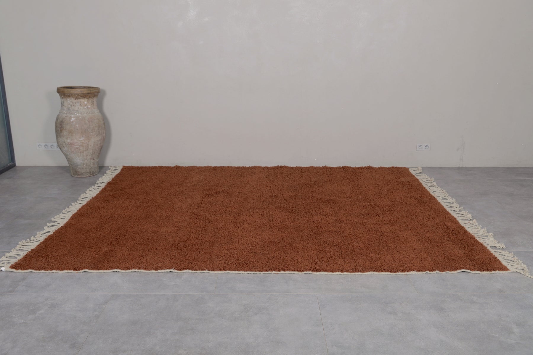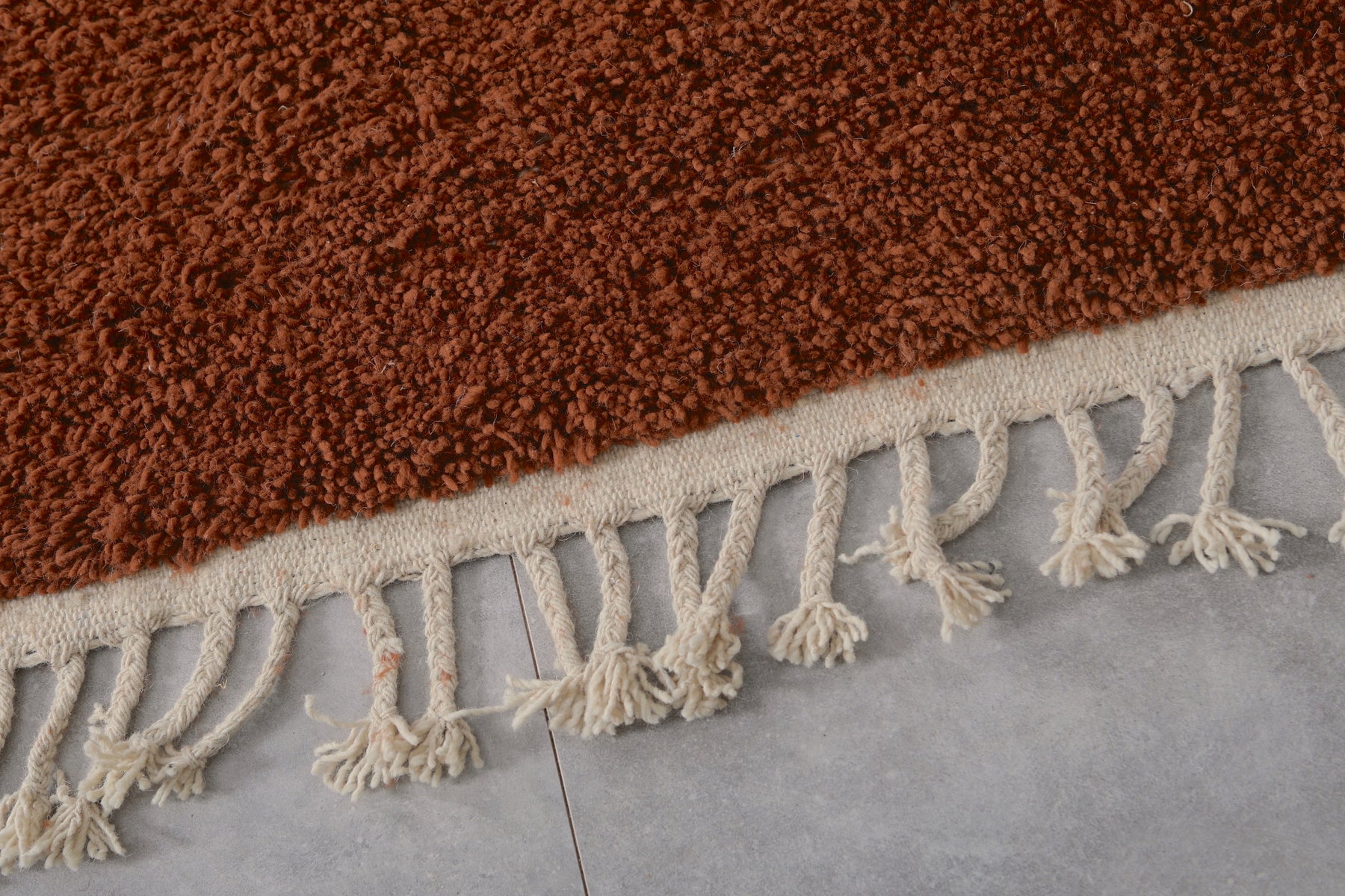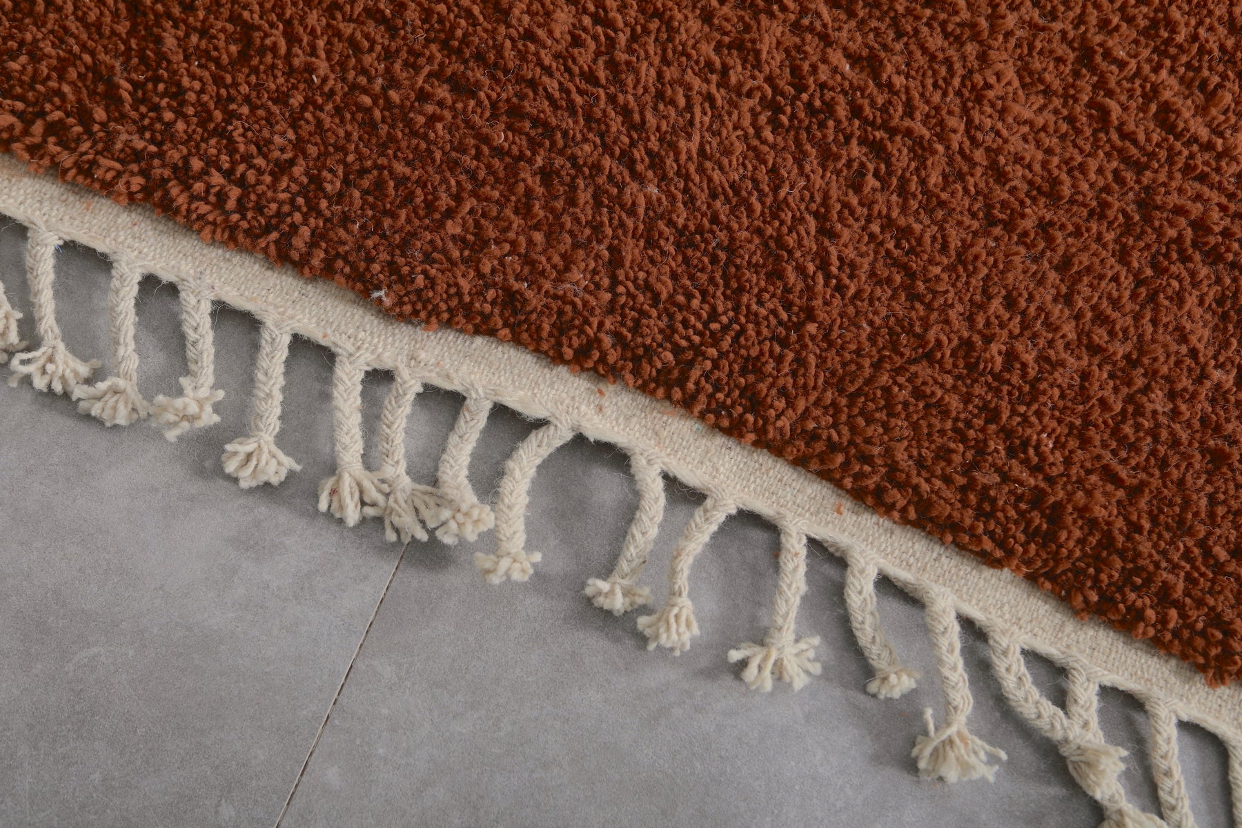 Add cozy elegance to your home with this minimalist brown Moroccan wool rug. Handmade by Berber artisans using 100% natural wool, this rug features a rich brown hue that creates warmth and balance in any space. The simple, solid design enhances modern, Scandinavian, or earthy interiors with understated charm. Durable, soft, and available in custom sizes, it’s the perfect blend of tradition and contemporary style.