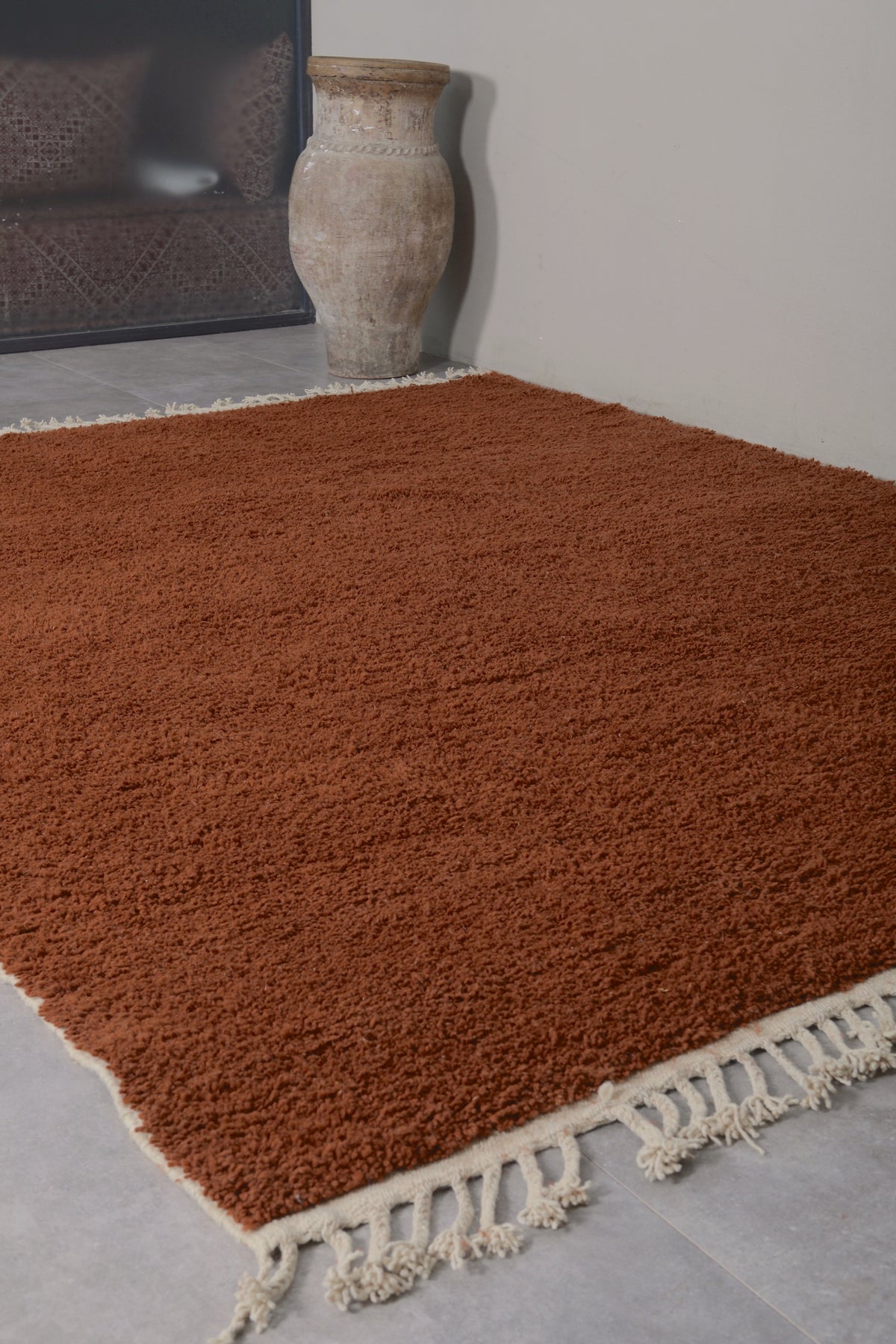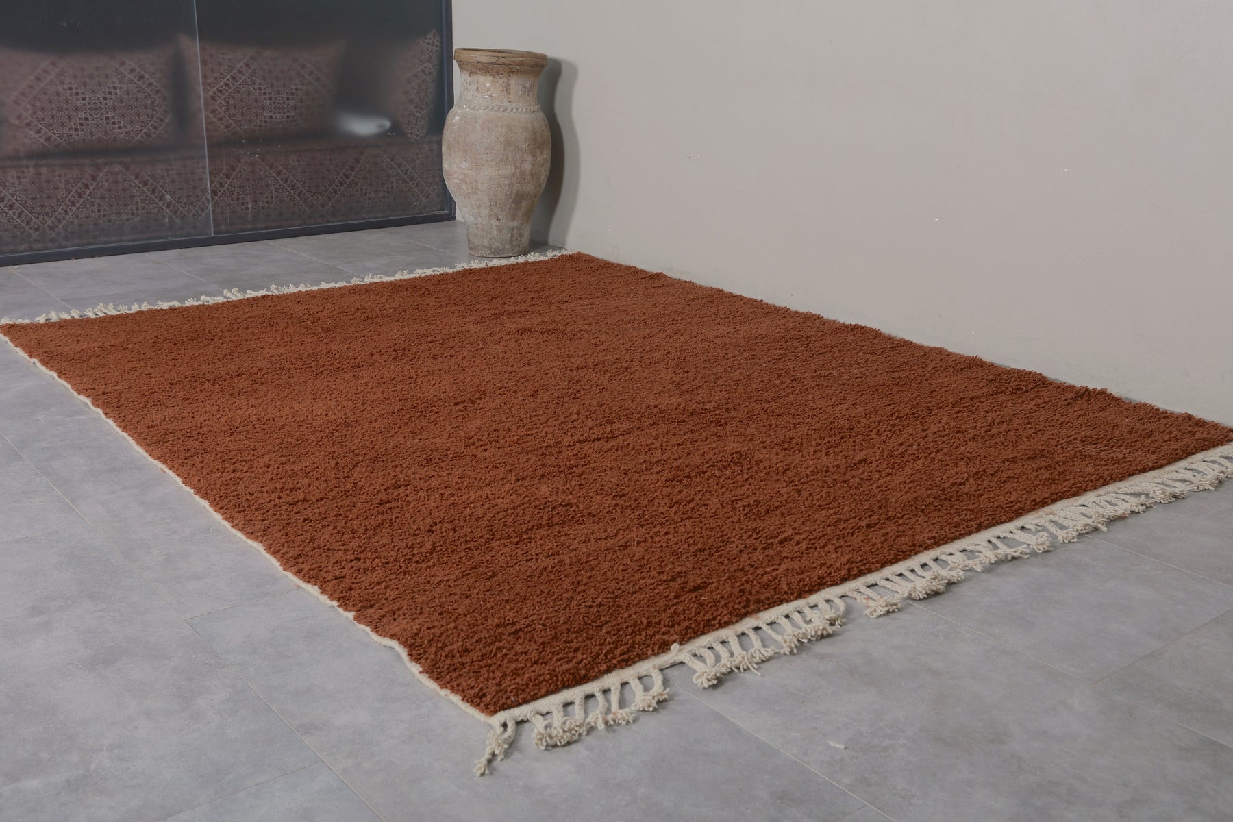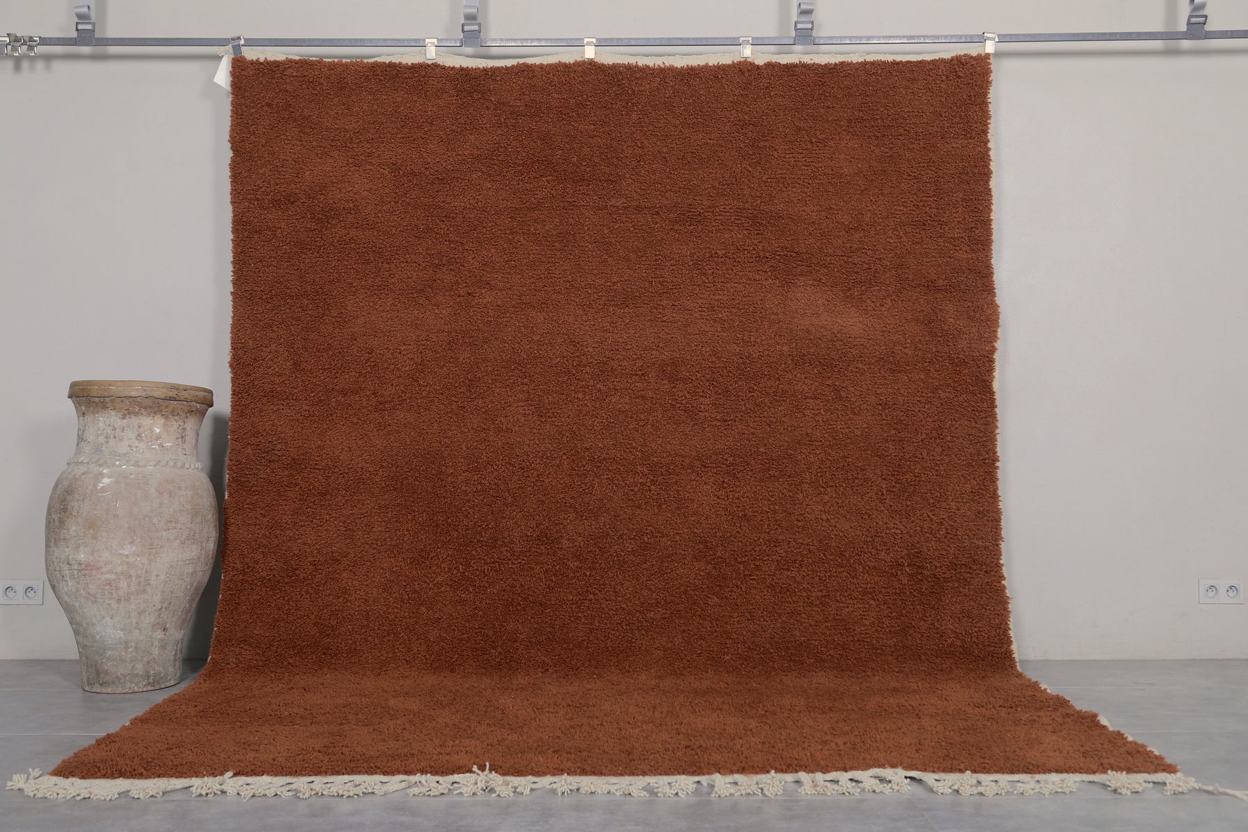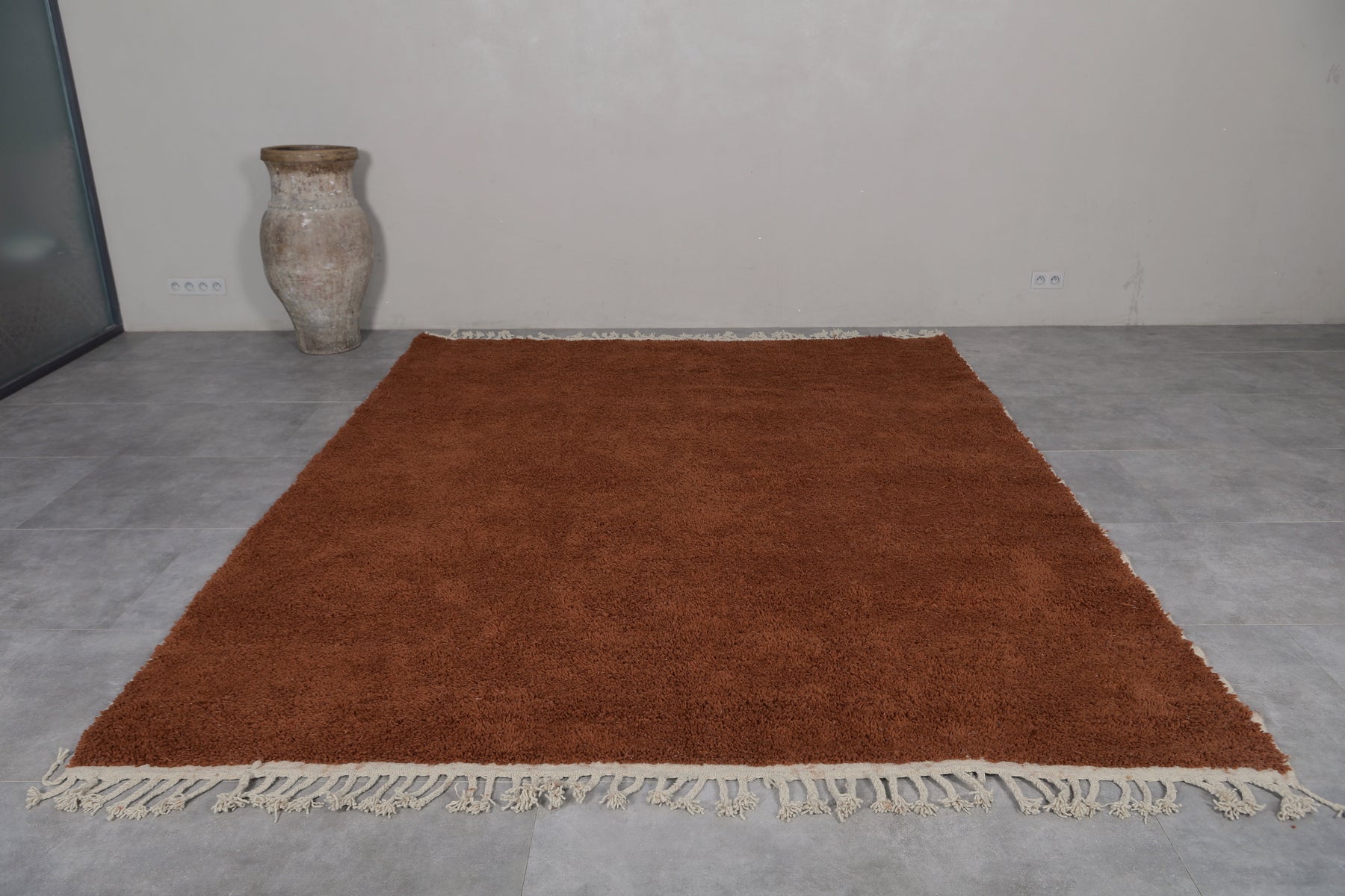 Add cozy elegance to your home with this minimalist brown Moroccan wool rug. Handmade by Berber artisans using 100% natural wool, this rug features a rich brown hue that creates warmth and balance in any space. The simple, solid design enhances modern, Scandinavian, or earthy interiors with understated charm. Durable, soft, and available in custom sizes, it’s the perfect blend of tradition and contemporary style.