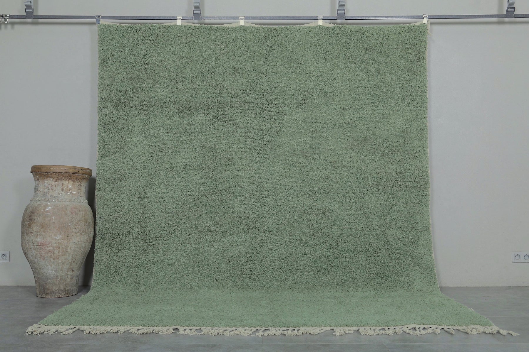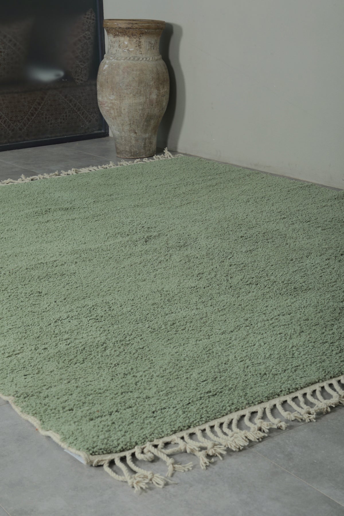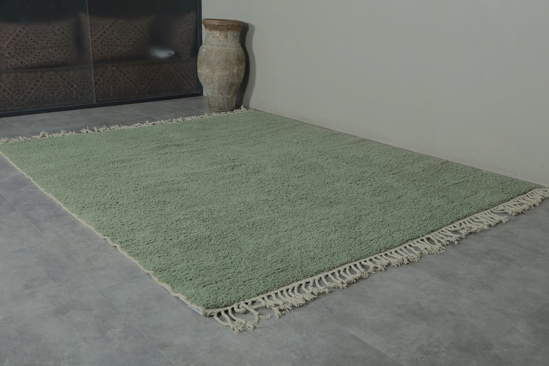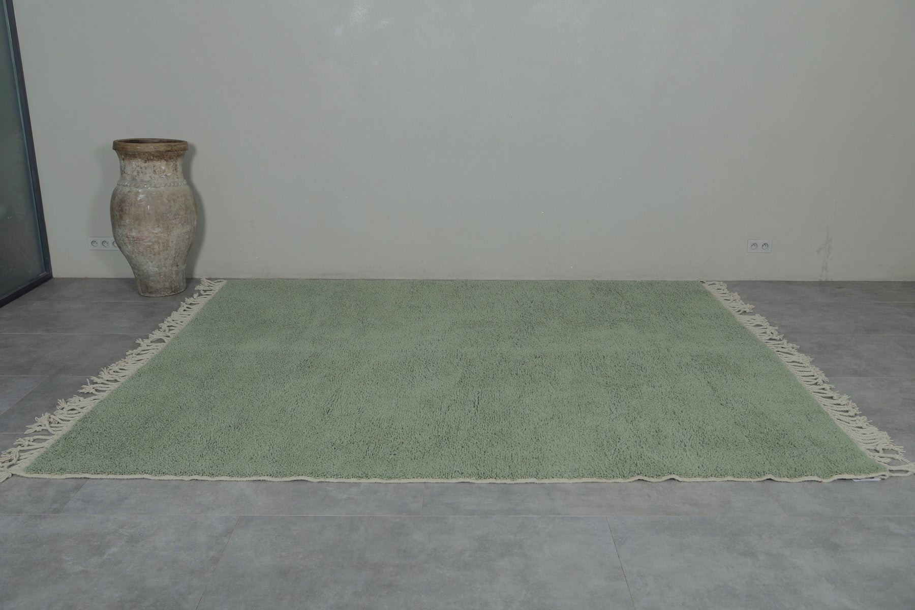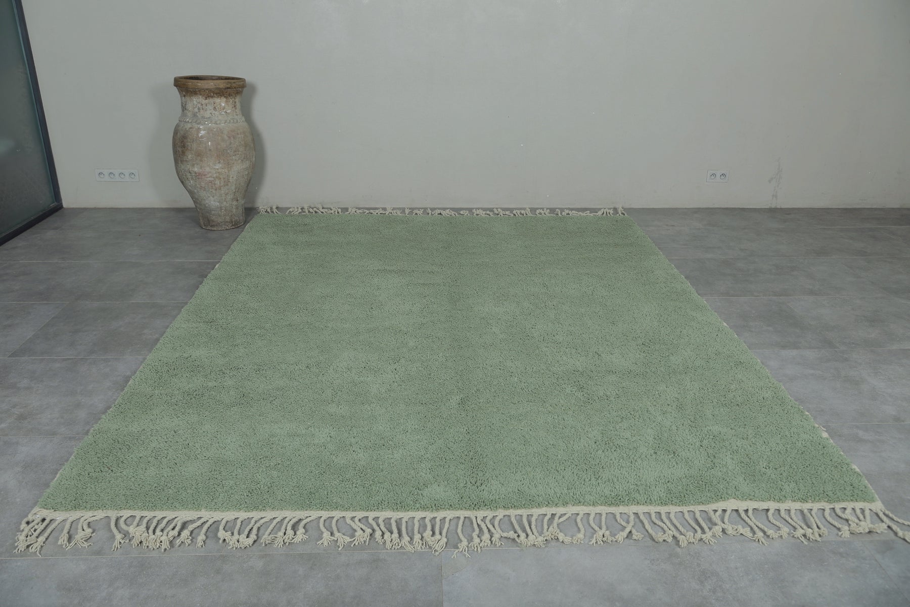 Custom sage green Moroccan rug – Soft minimalist comfort