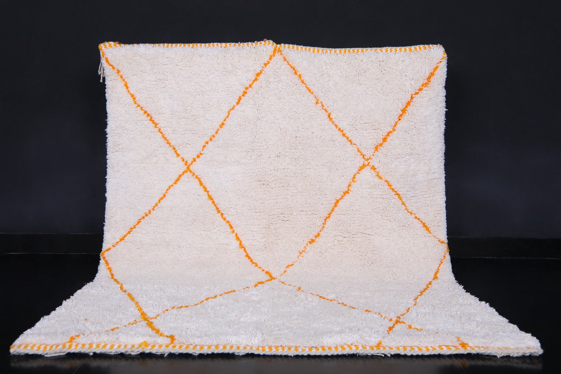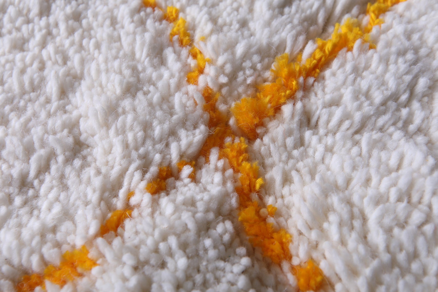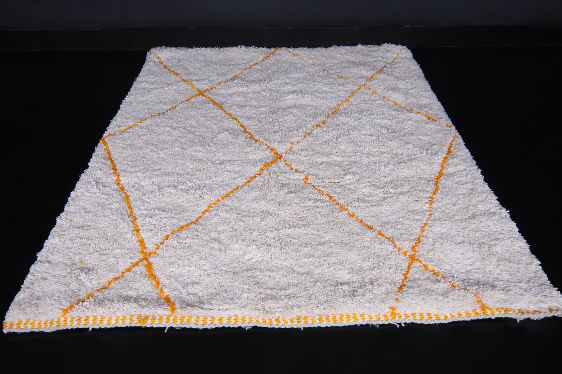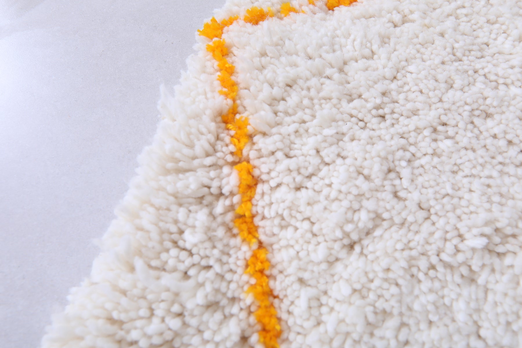 Add a bold yet timeless touch to your home with this White Moroccan Beni Ourain Rug featuring striking orange diamond lines. Handwoven by skilled artisans in the Atlas Mountains, this authentic wool rug combines traditional Berber design with a modern twist. The soft, plush texture offers warmth and comfort underfoot, while the vibrant orange pattern adds an energetic pop to any neutral space. Ideal for boho, contemporary, or minimalist interiors, this rug is both functional and eye-catching. Crafted with 100% natural wool, it's a sustainable and stylish choice for living rooms, bedrooms, or creative spaces.