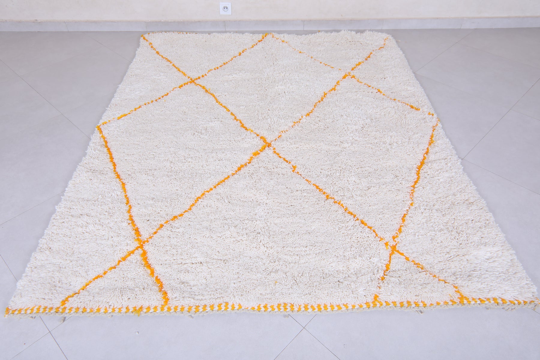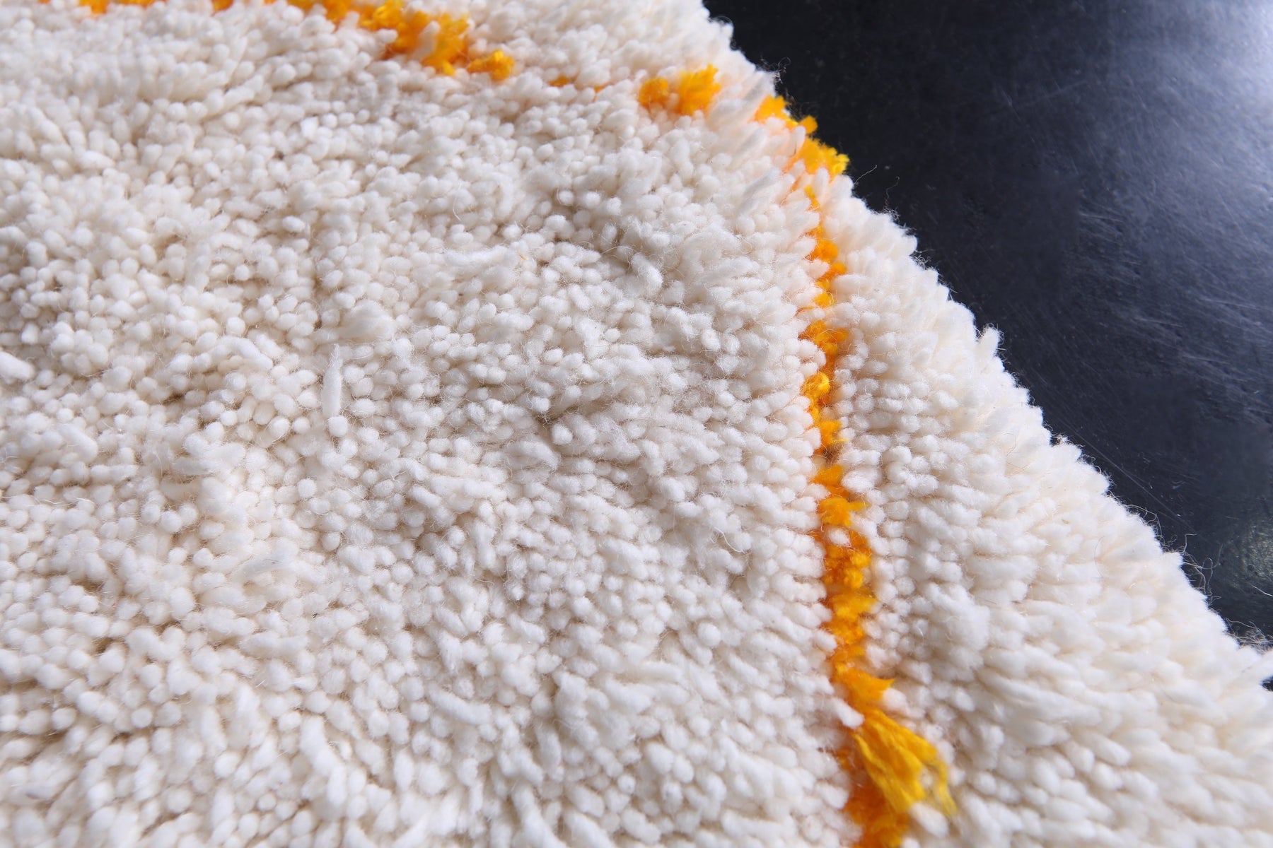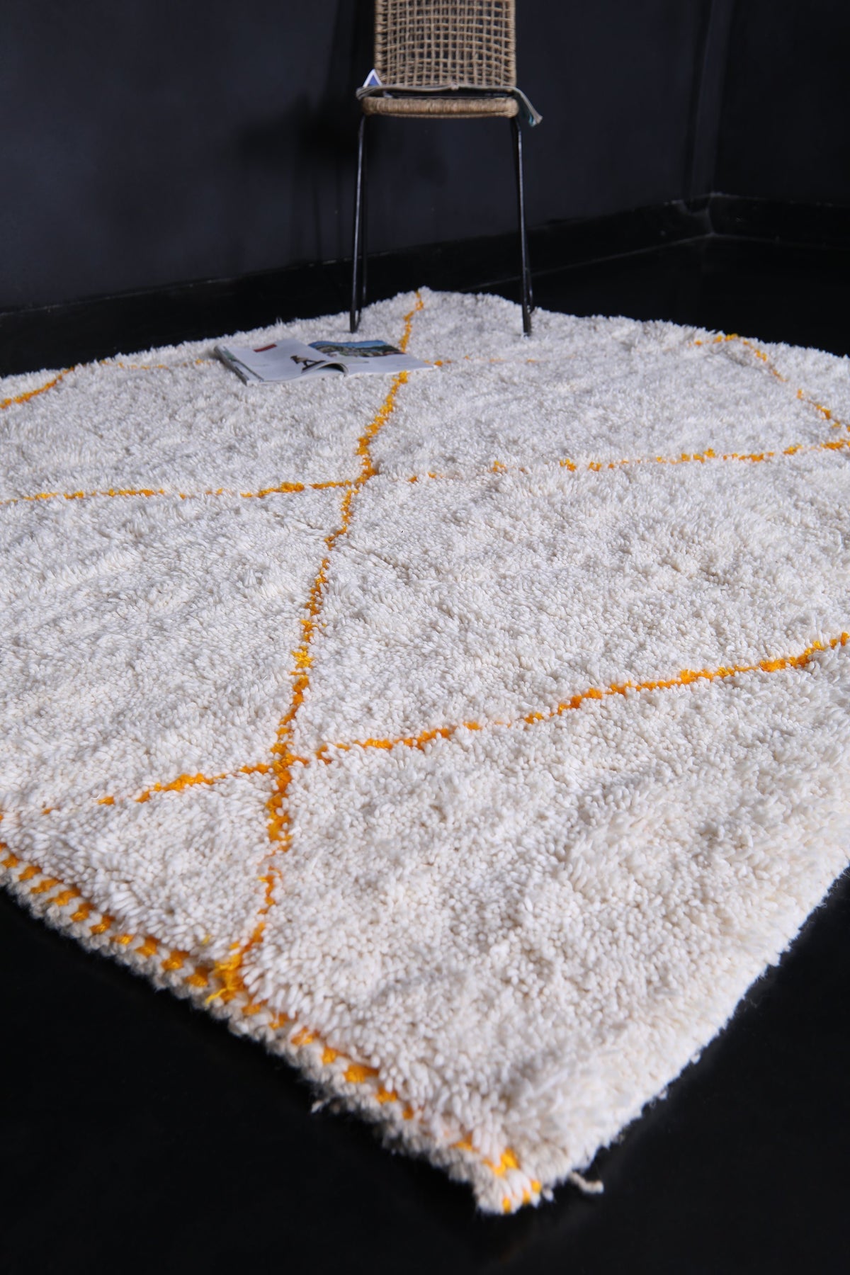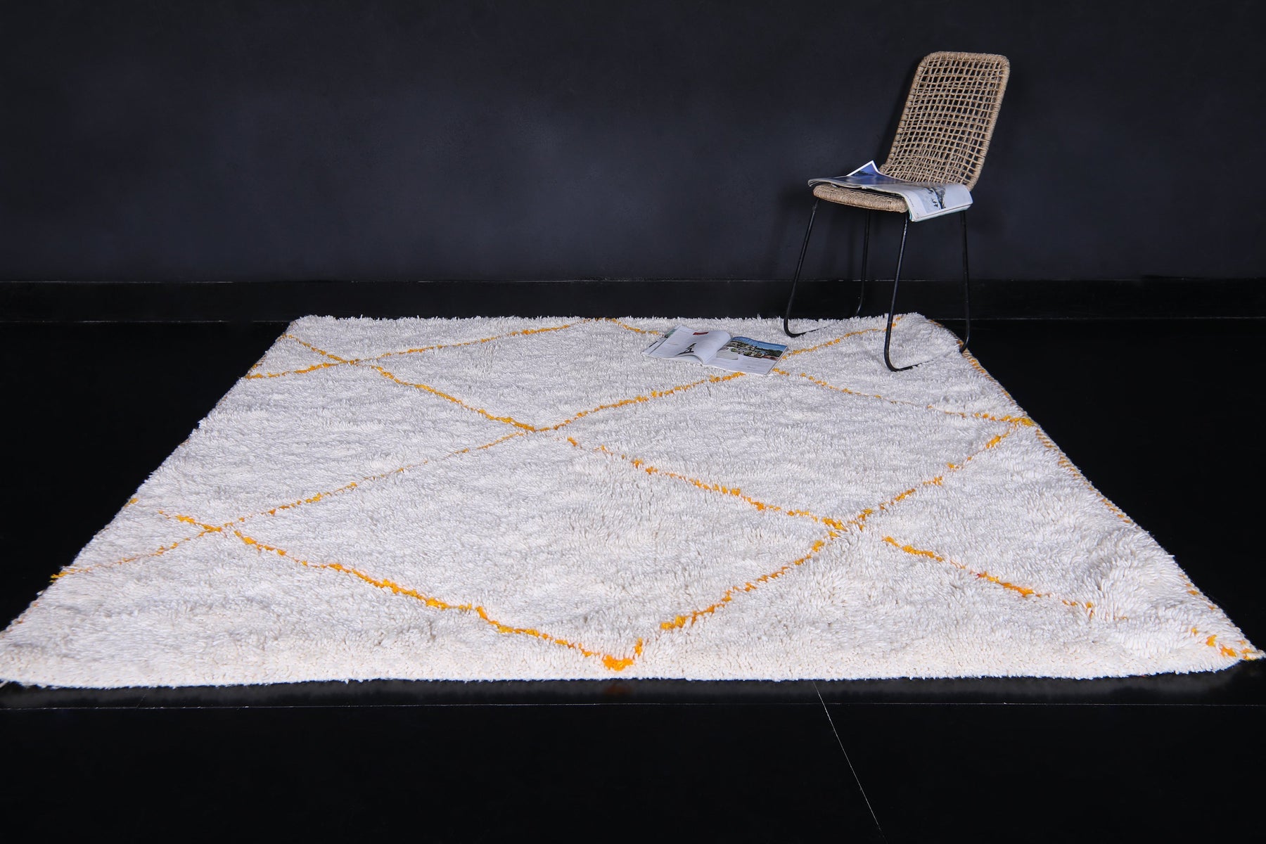 Add a bold yet timeless touch to your home with this White Moroccan Beni Ourain Rug featuring striking orange diamond lines. Handwoven by skilled artisans in the Atlas Mountains, this authentic wool rug combines traditional Berber design with a modern twist. The soft, plush texture offers warmth and comfort underfoot, while the vibrant orange pattern adds an energetic pop to any neutral space. Ideal for boho, contemporary, or minimalist interiors, this rug is both functional and eye-catching. Crafted with 100% natural wool, it's a sustainable and stylish choice for living rooms, bedrooms, or creative spaces.