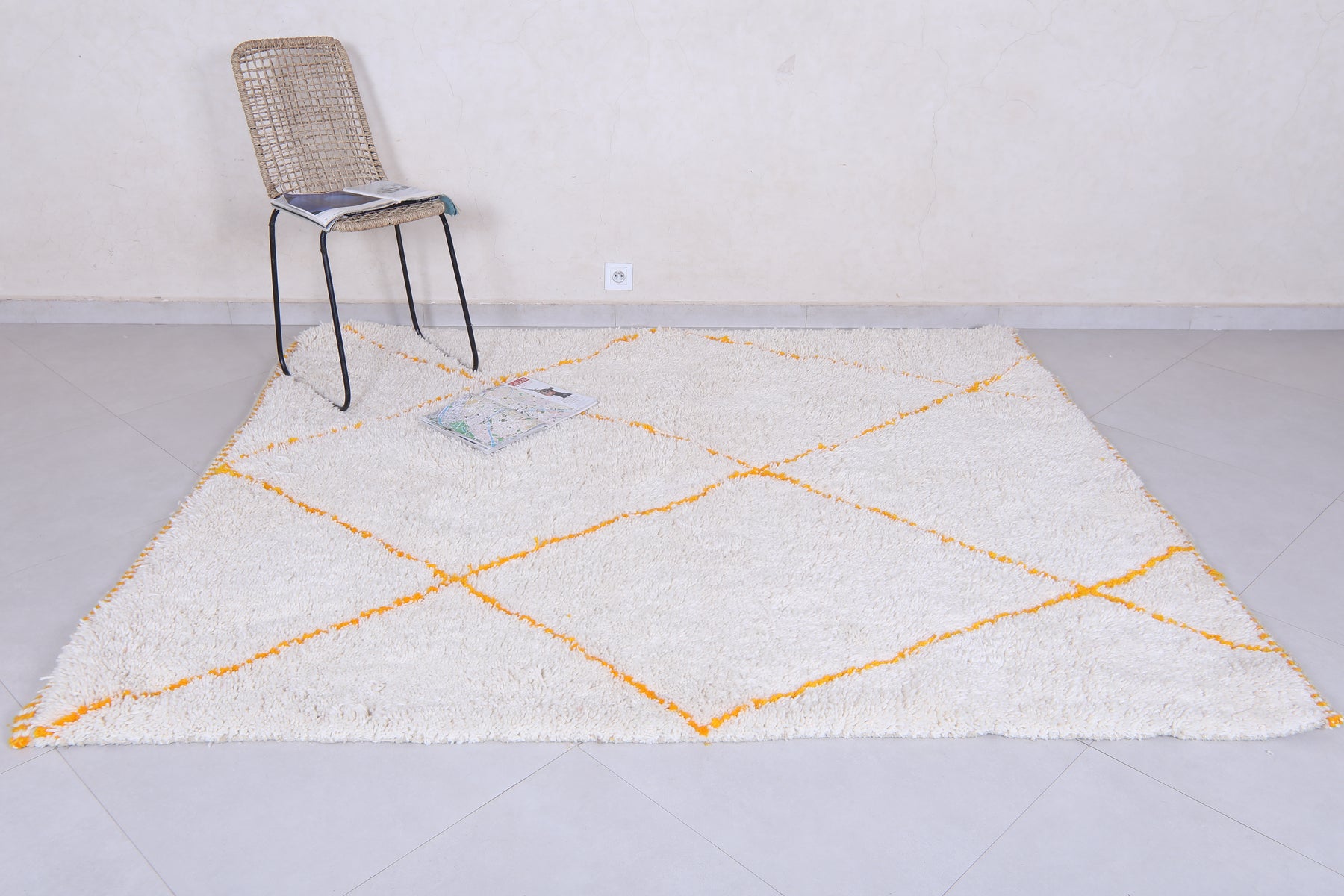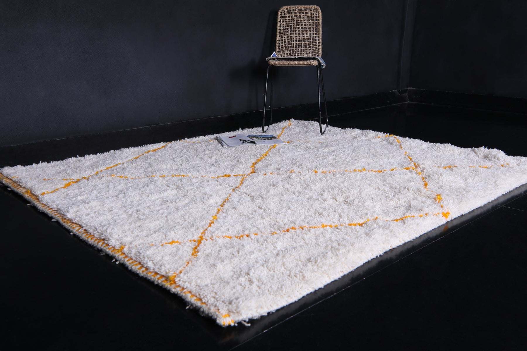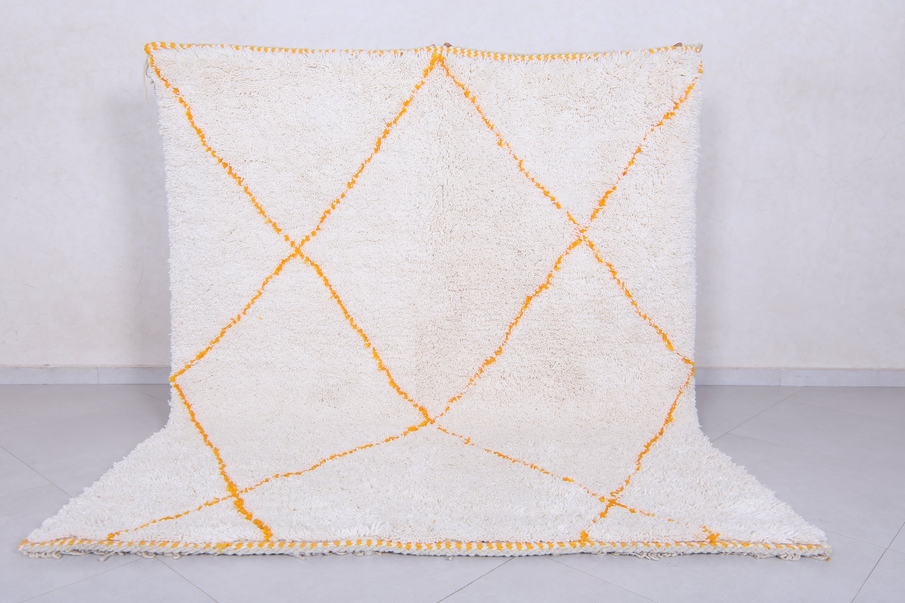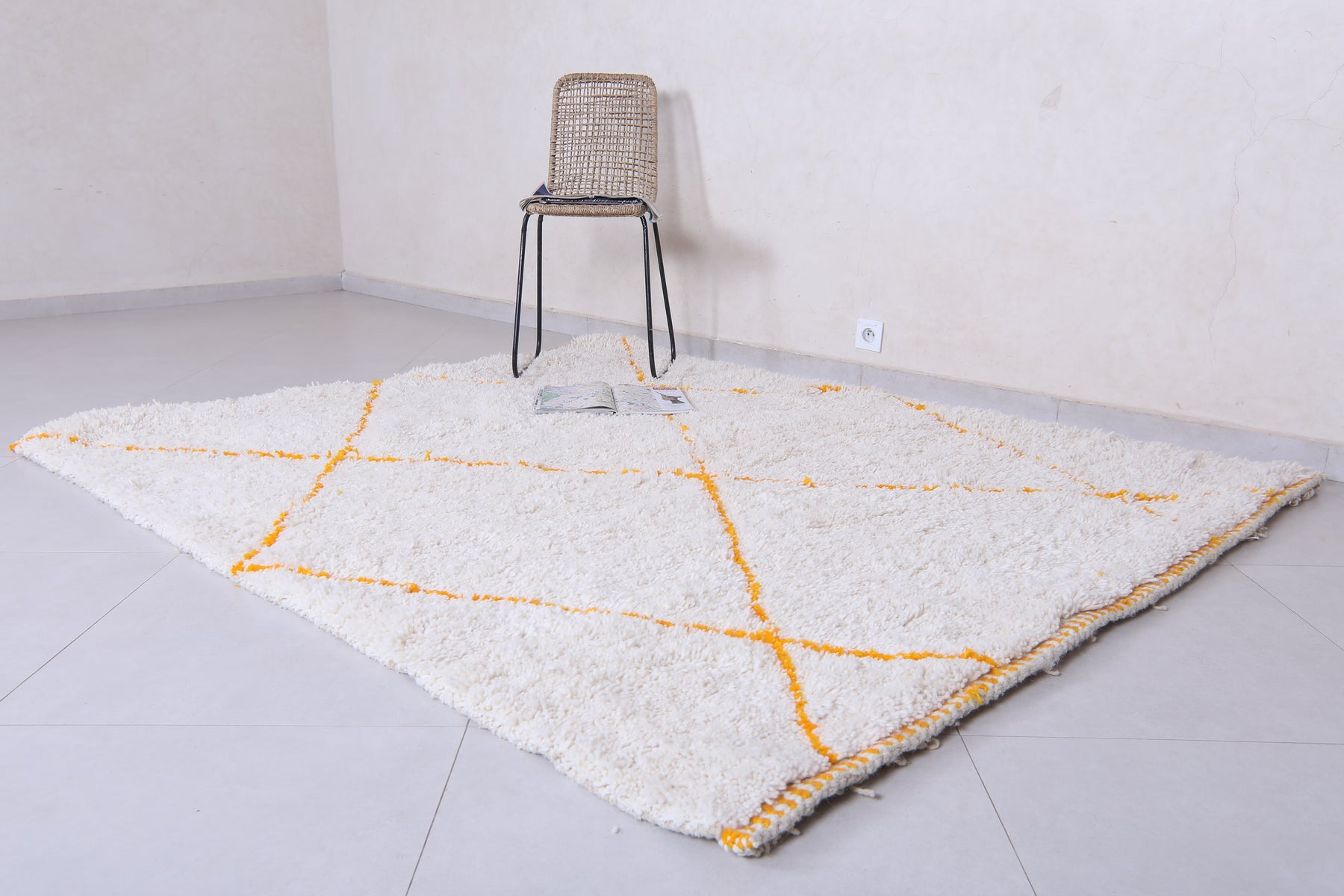 Add a bold yet timeless touch to your home with this White Moroccan Beni Ourain Rug featuring striking orange diamond lines. Handwoven by skilled artisans in the Atlas Mountains, this authentic wool rug combines traditional Berber design with a modern twist. The soft, plush texture offers warmth and comfort underfoot, while the vibrant orange pattern adds an energetic pop to any neutral space. Ideal for boho, contemporary, or minimalist interiors, this rug is both functional and eye-catching. Crafted with 100% natural wool, it's a sustainable and stylish choice for living rooms, bedrooms, or creative spaces.