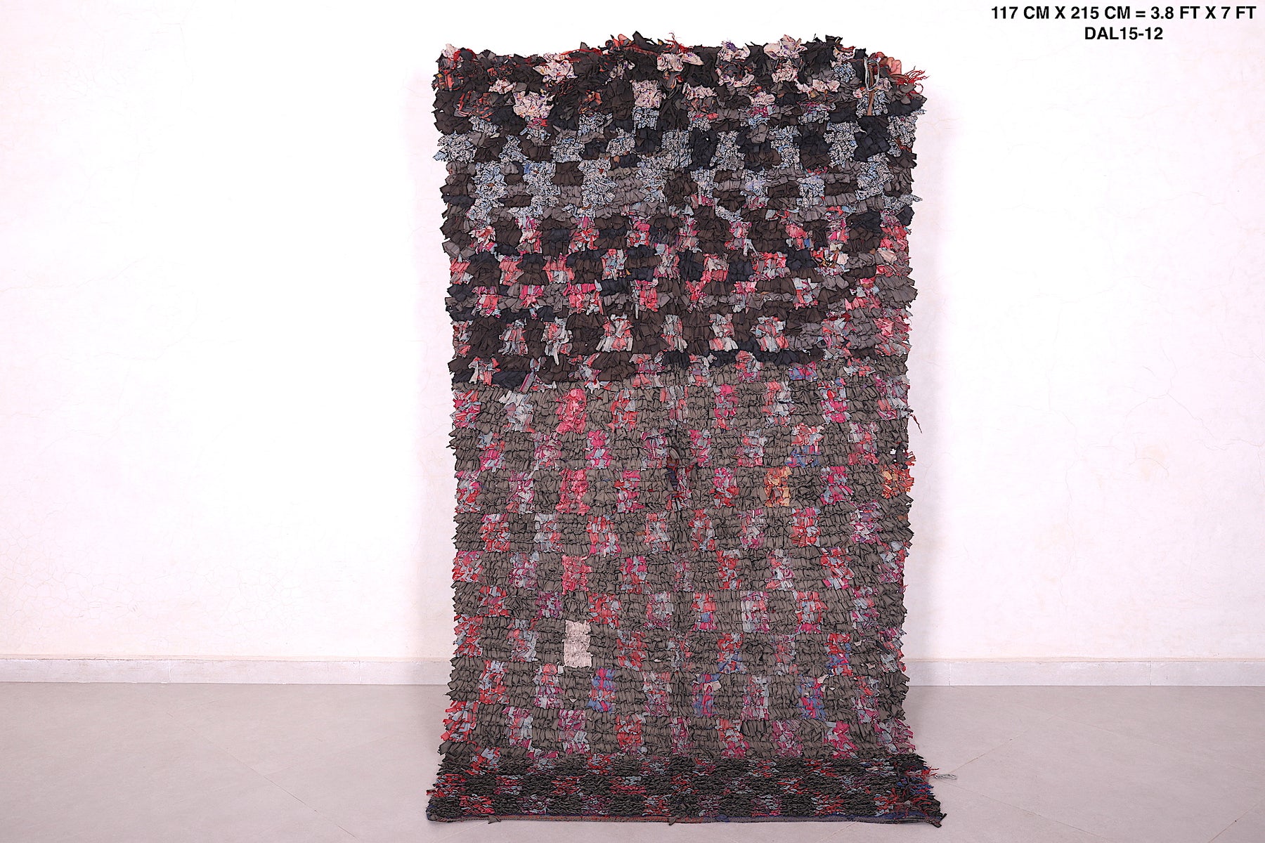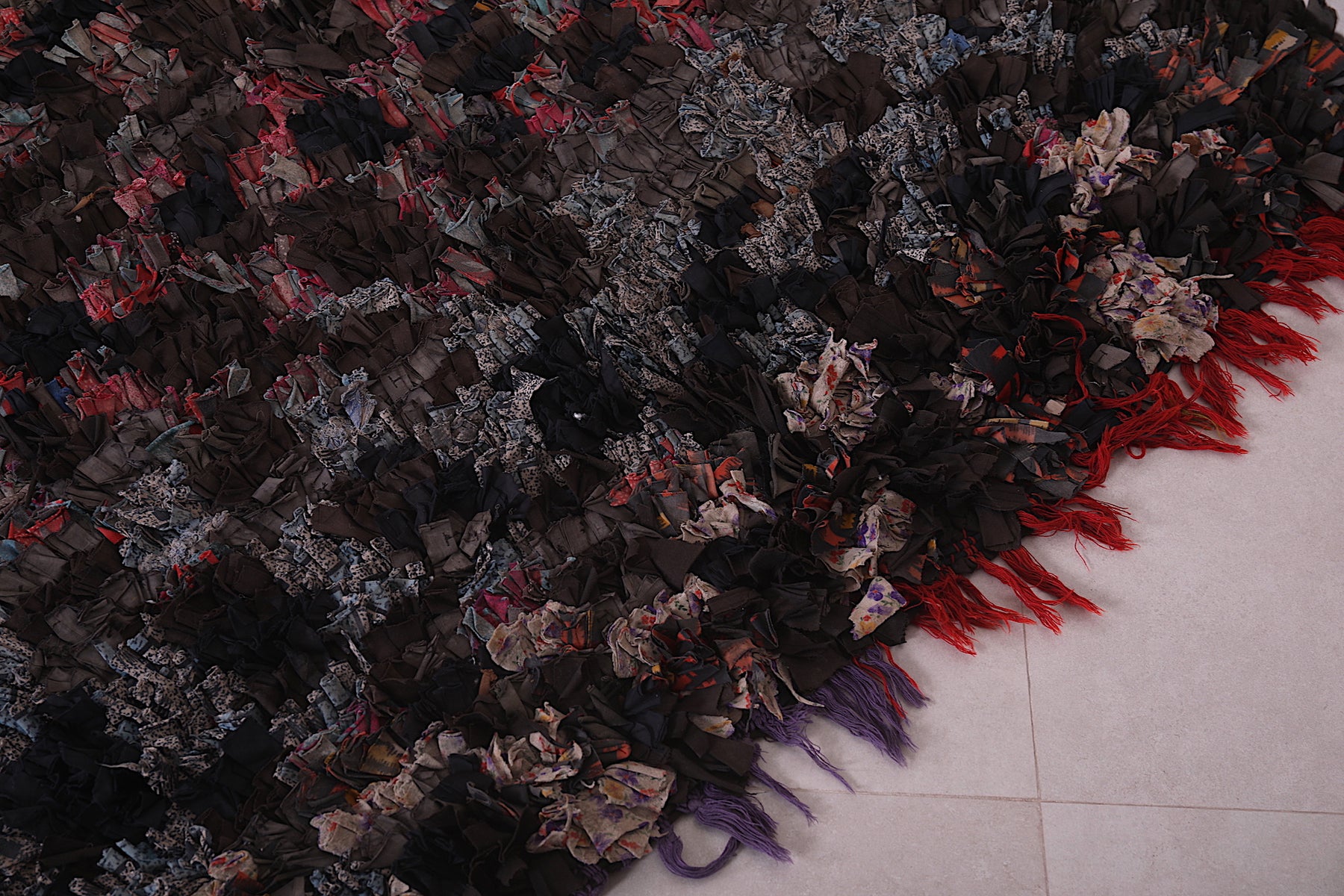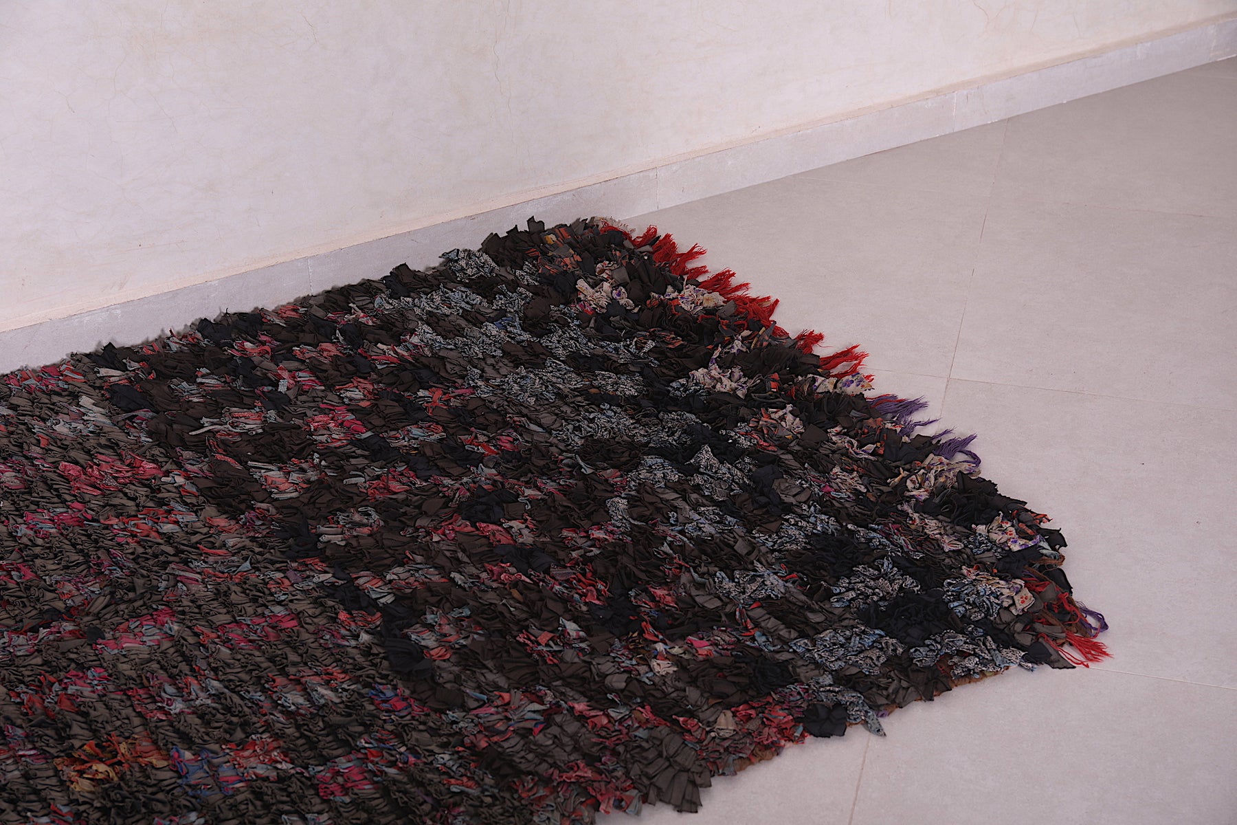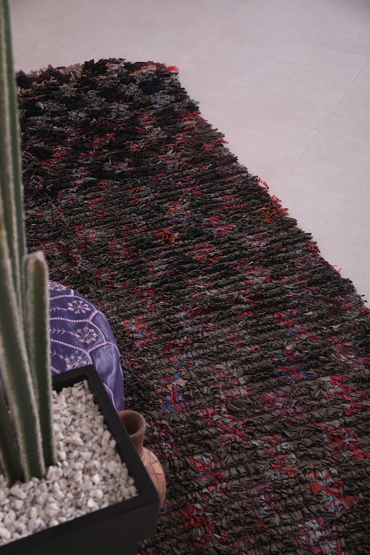 Dark Handwoven Boucherouite Rug - 3.8x7 ft | Moroccan Eco-Friendly Design - Boucherouite rug