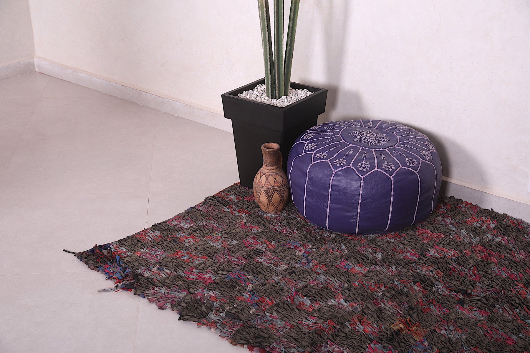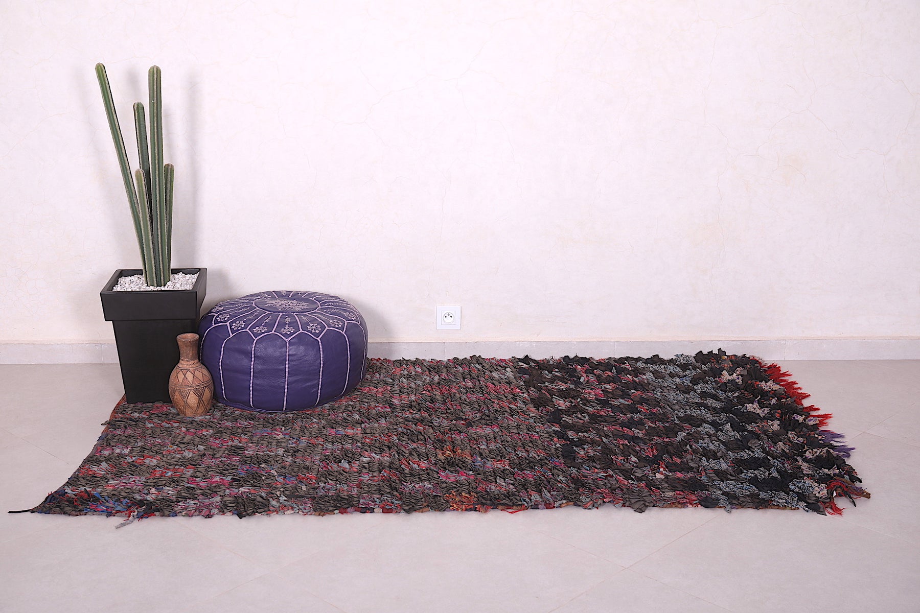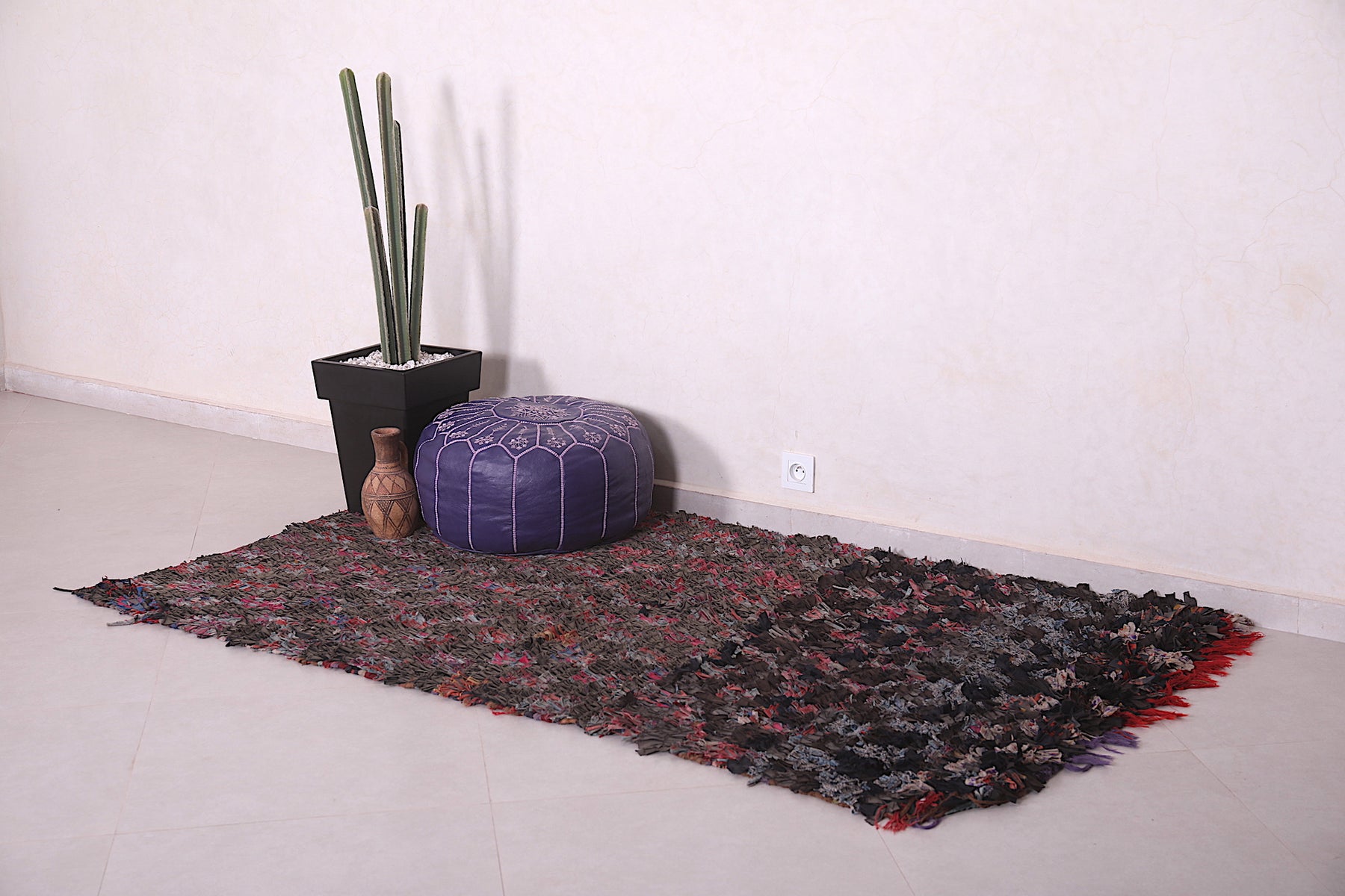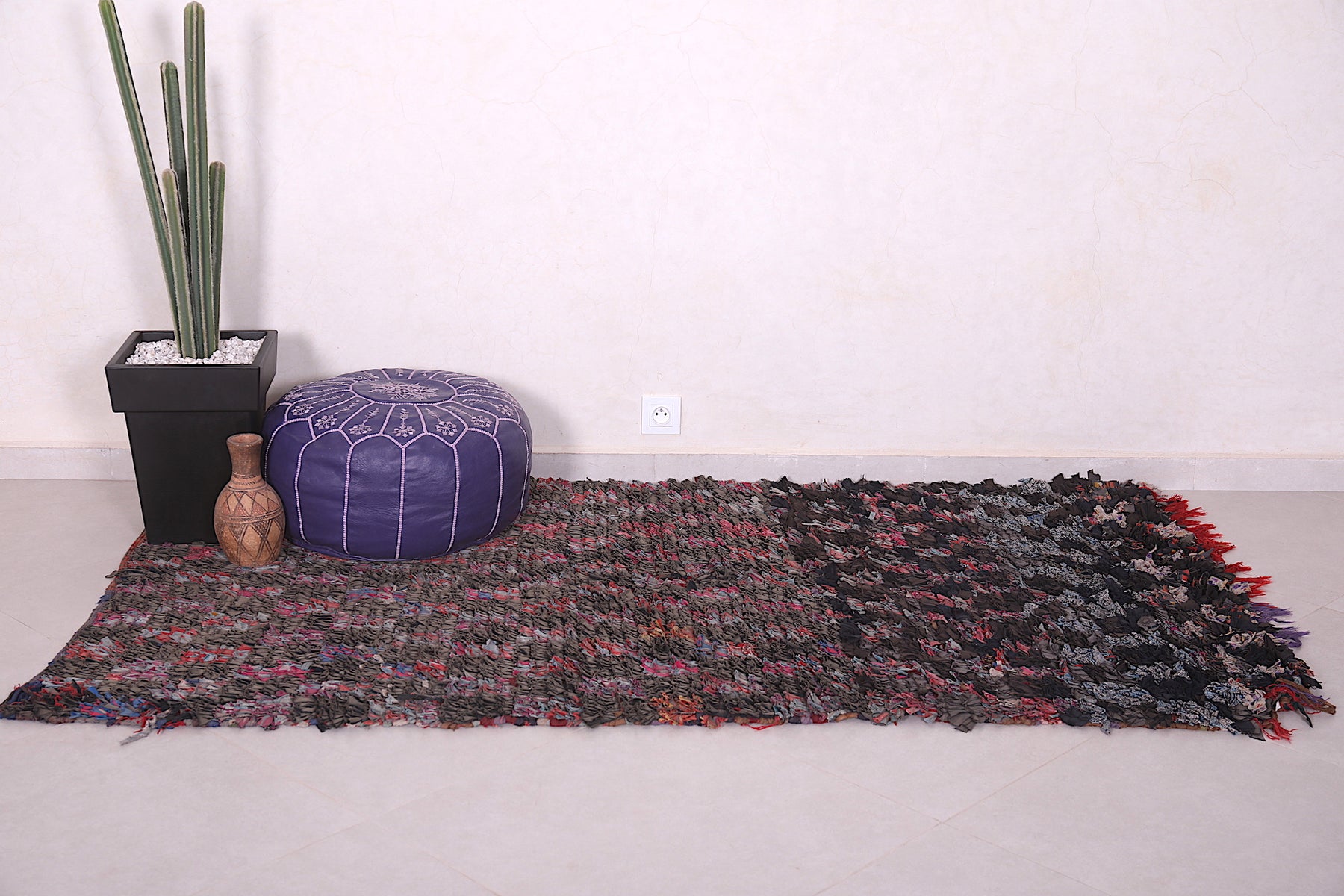 Dark Handwoven Boucherouite Rug - 3.8x7 ft | Moroccan Eco-Friendly Design - Boucherouite rug