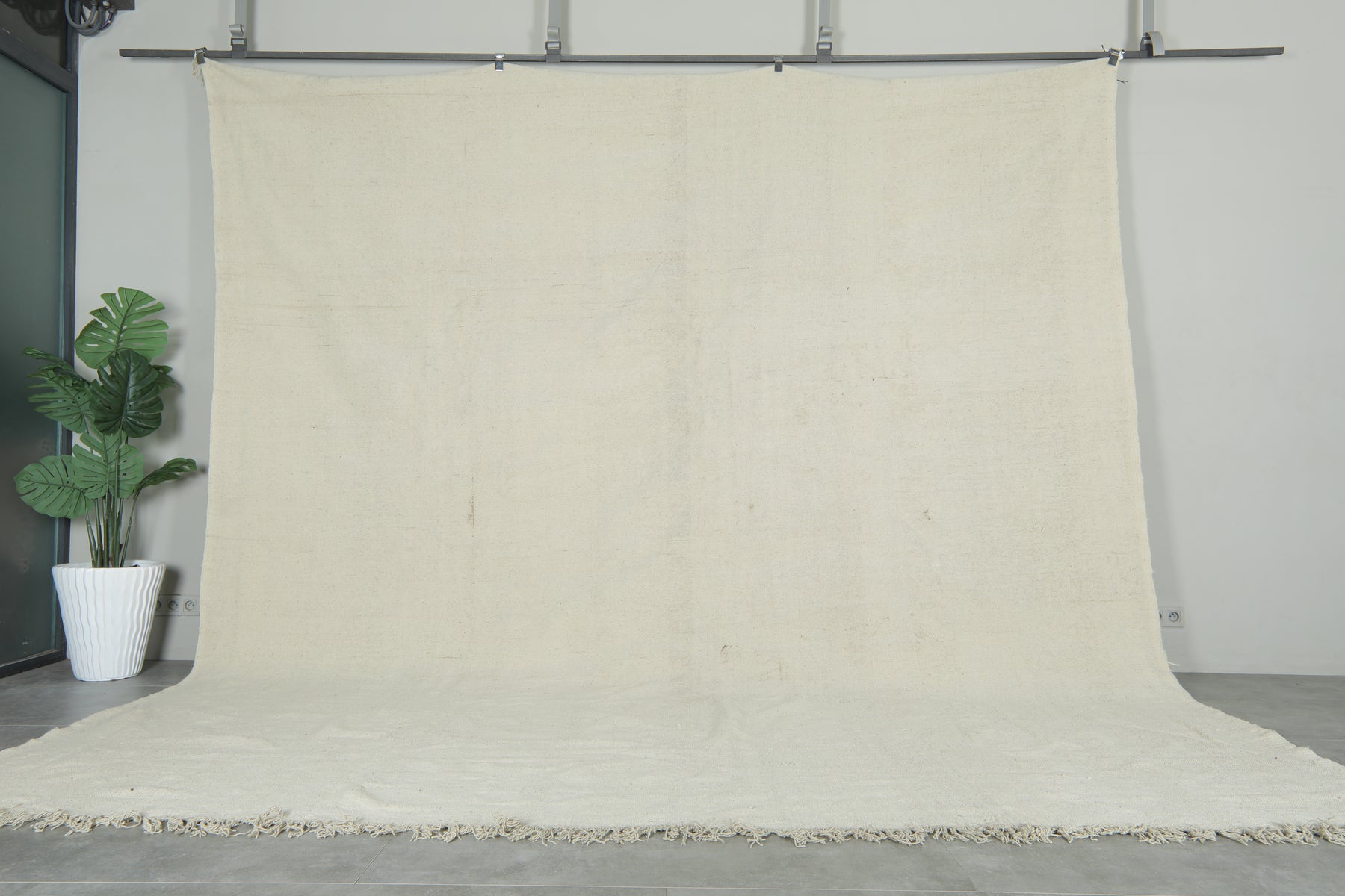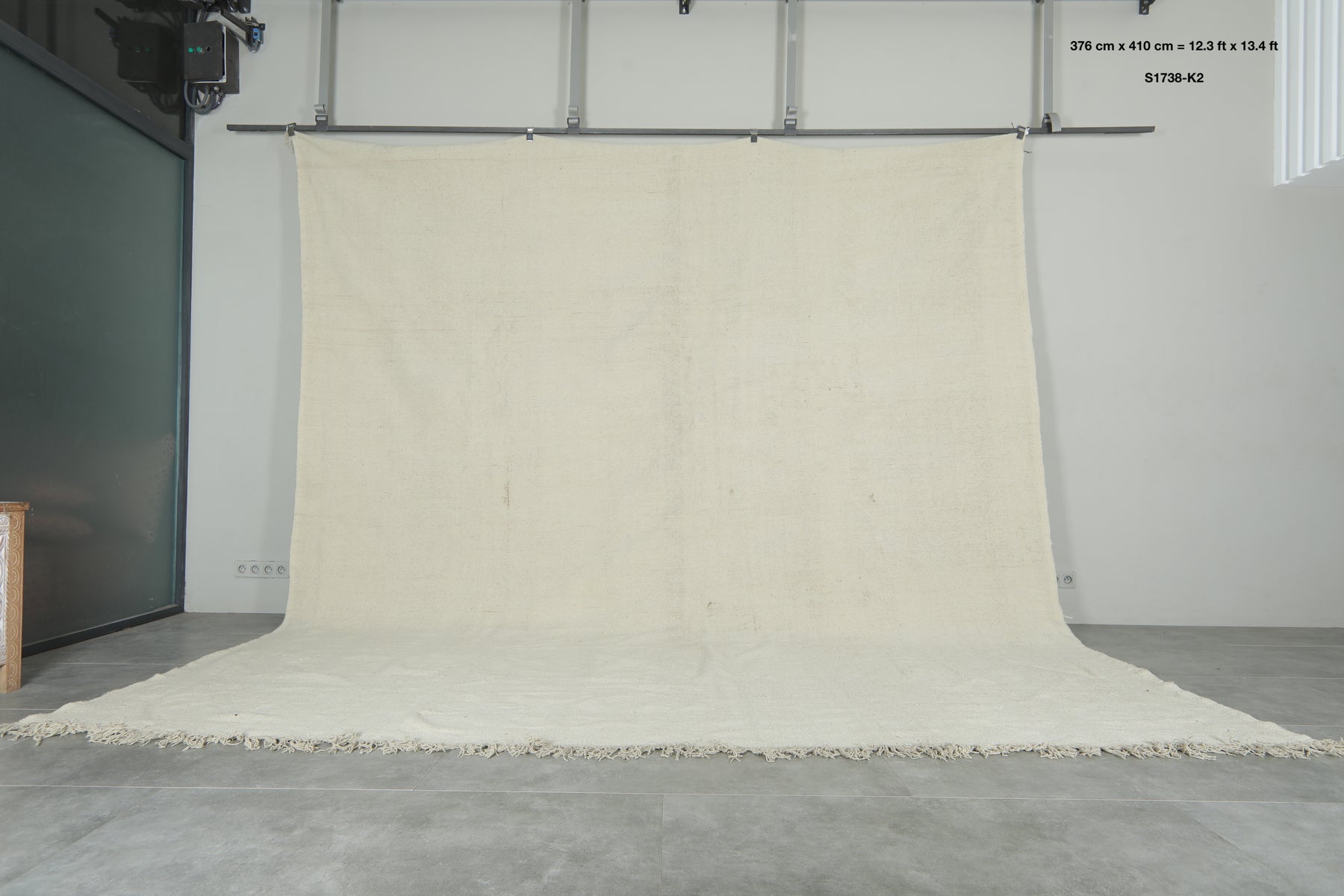 Flat woven moroccan rug 12.3 x 13.4 feet Beige morocco rug - Moroccan kilim rug
