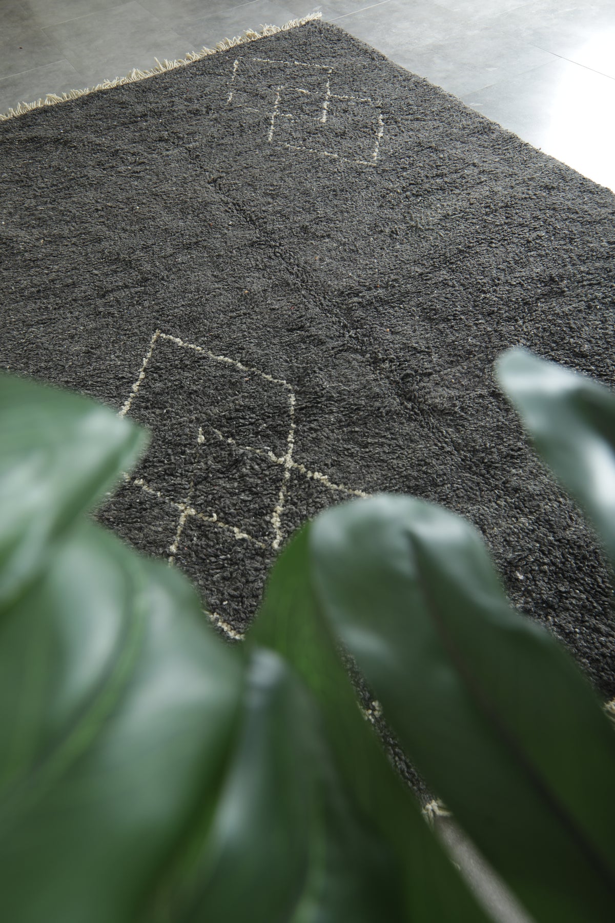 Achieve a sophisticated, modern look with our Charcoal Grey and Off-White Geometric Wool Rug. Handwoven in the style of traditional Beni Ourain rugs, this piece features a minimalist geometric design that adds subtle visual interest without overwhelming your space. The deep charcoal grey wool provides a rich, grounding texture, while the off-white accents create a beautiful contrast. Perfect for any room seeking a touch of understated elegance and comfort. Made from 100% natural wool, this rug offers exceptional softness, durability, and timeless style. Shop now and elevate your home decor.