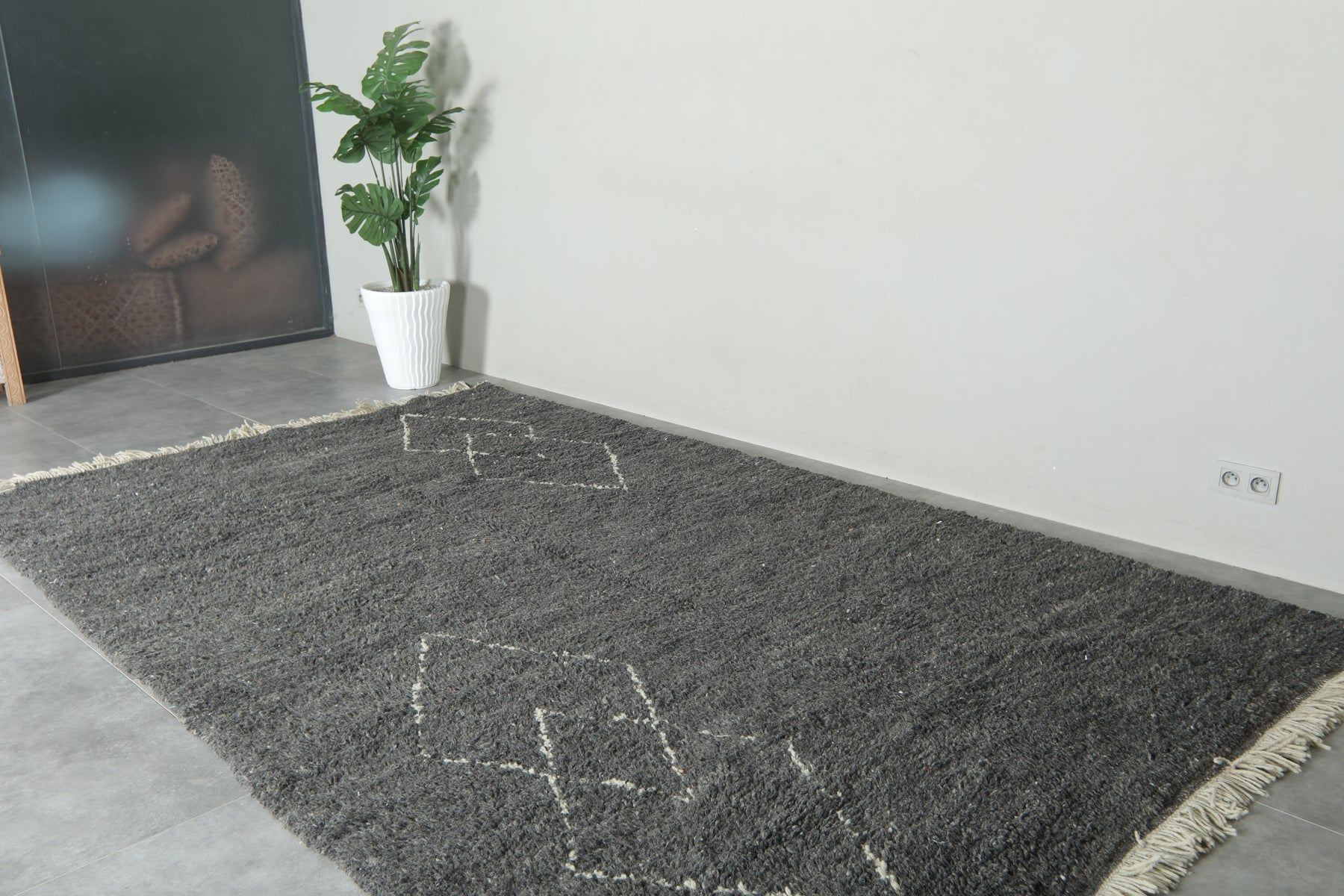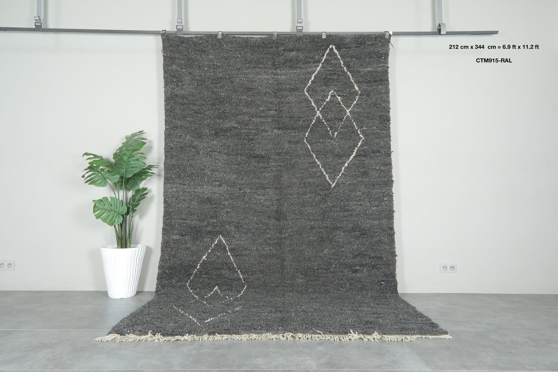 Grey Moroccan beni ourain rug - Handmade rug - 6.9 ft x 11.2 ft