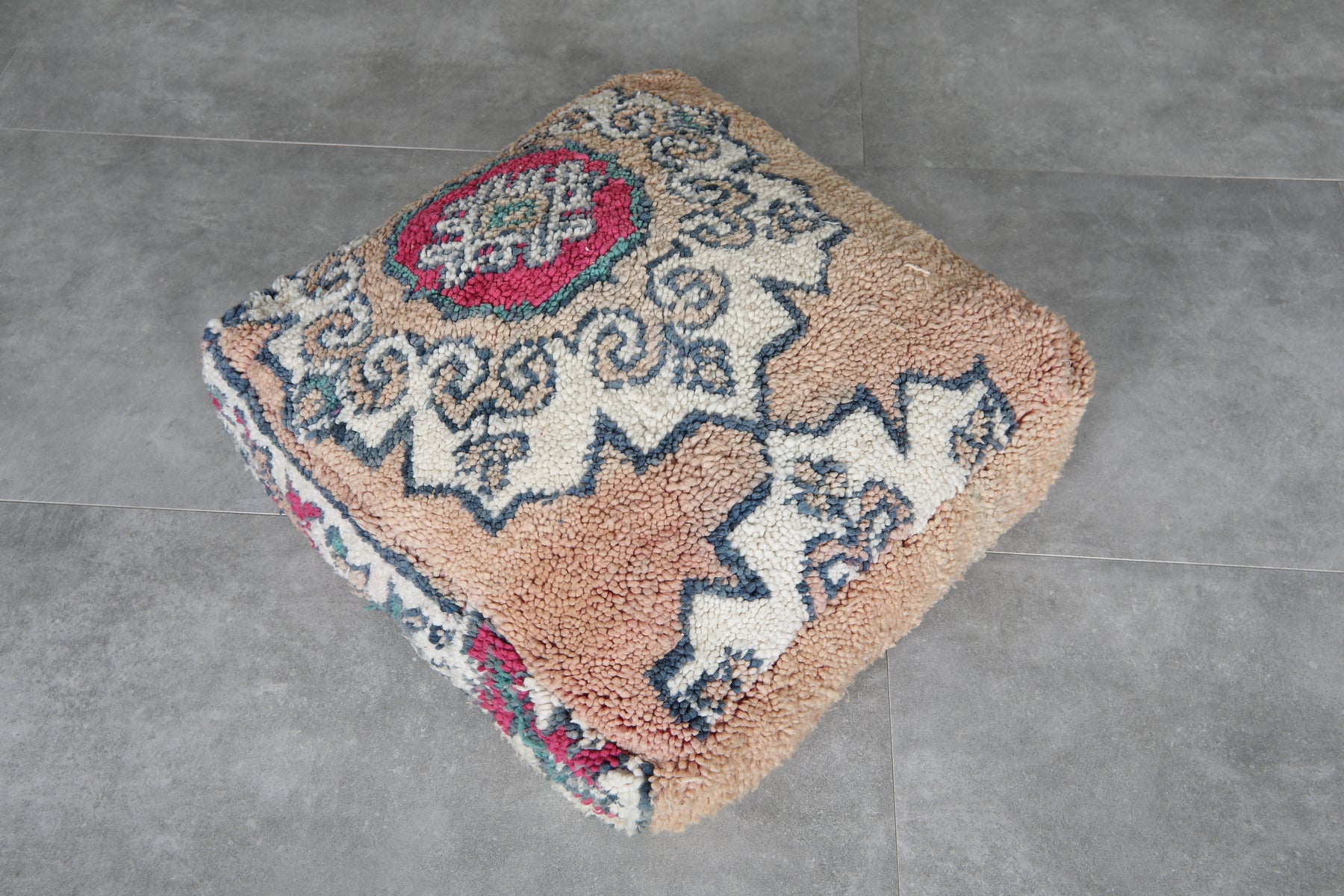Bring the artistry of Moroccan heritage into your home—order this stunning vintage pouf and add a touch of timeless elegance to your decor.