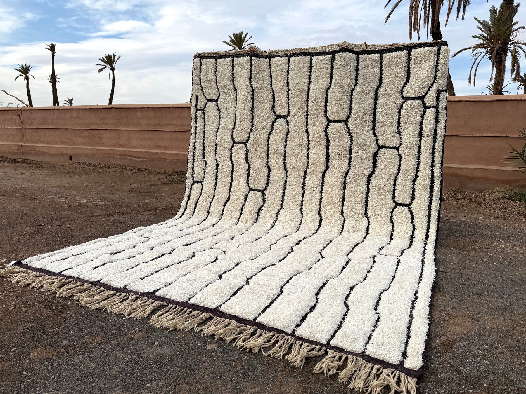 Abstract White Moroccan rug - Beni ourain rug  - Custom size rug