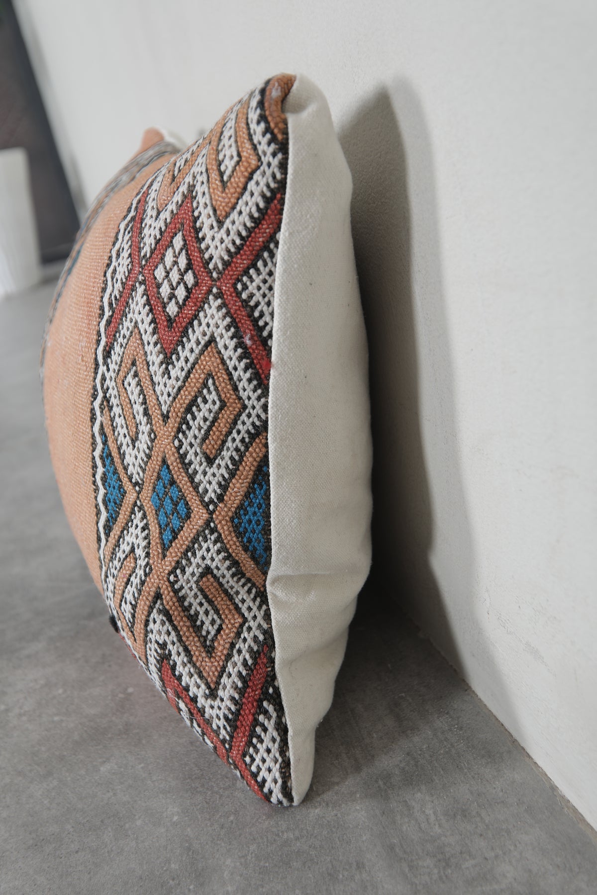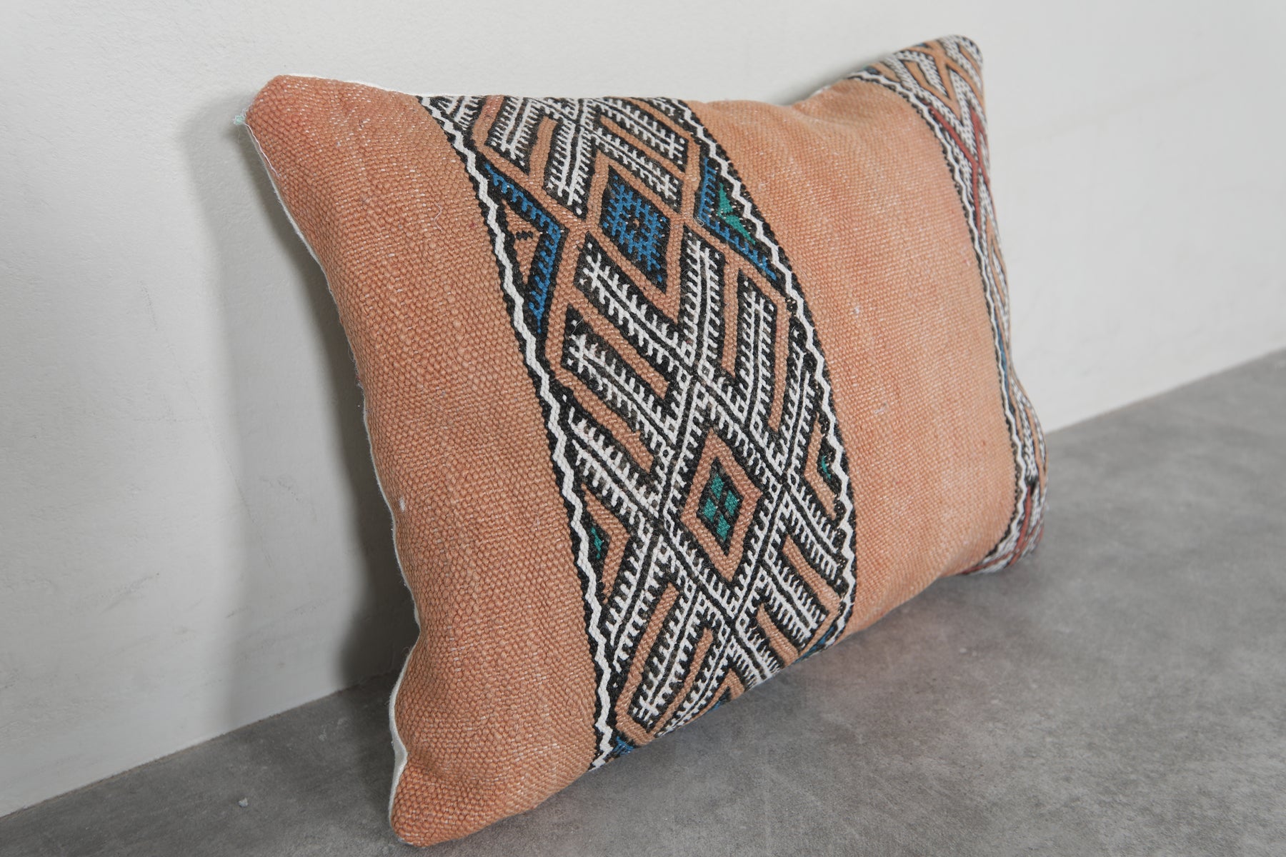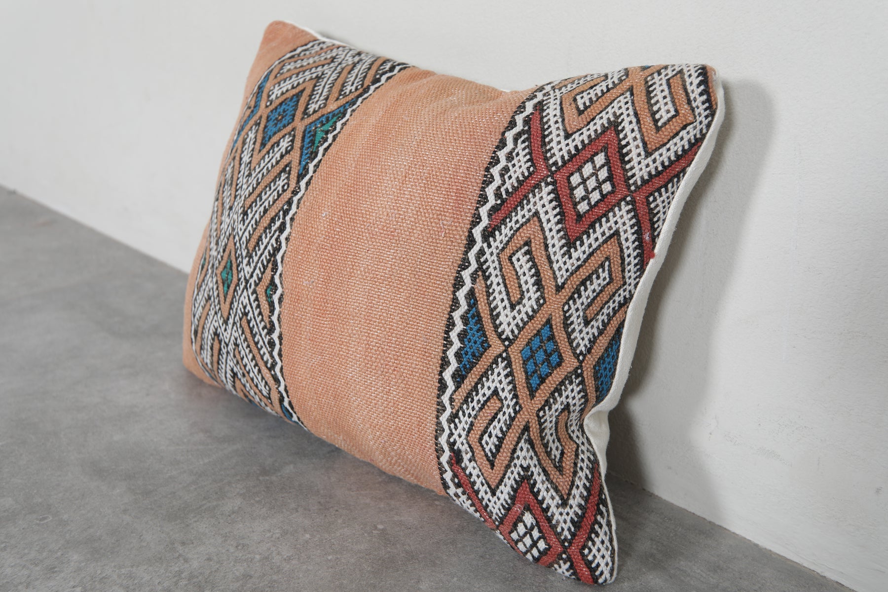 Celebrate Moroccan heritage with this exquisite handwoven kilim pillow cover. Made using traditional Berber weaving techniques, it features fine embroidered details and a richly textured wool surface. Its rectangular form makes it a versatile piece—perfect for sofas, beds, or cozy reading nooks.