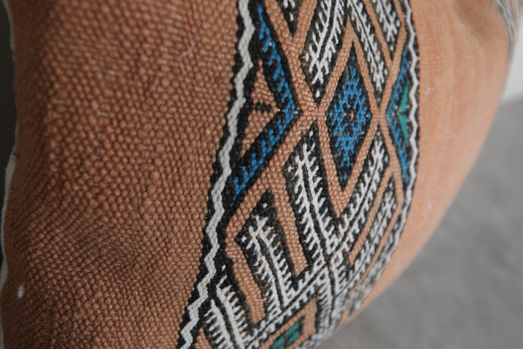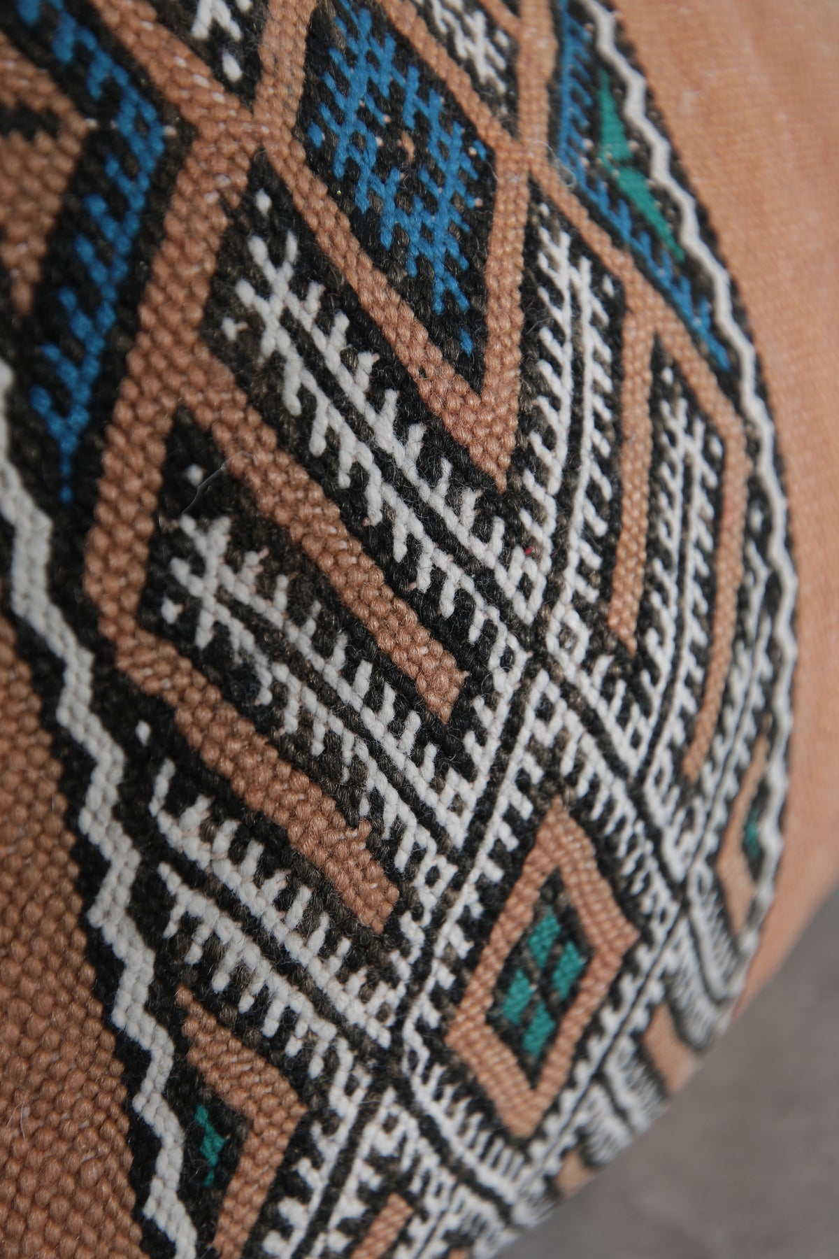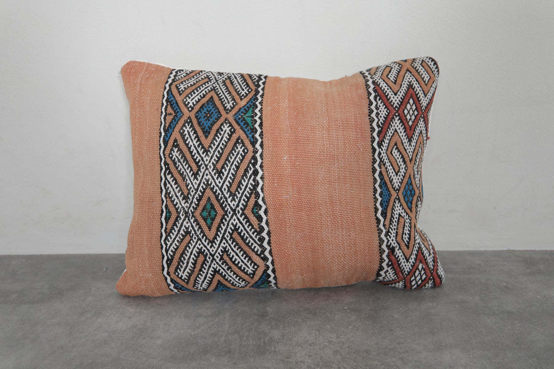 Celebrate Moroccan heritage with this exquisite handwoven kilim pillow cover. Made using traditional Berber weaving techniques, it features fine embroidered details and a richly textured wool surface. Its rectangular form makes it a versatile piece—perfect for sofas, beds, or cozy reading nooks.
