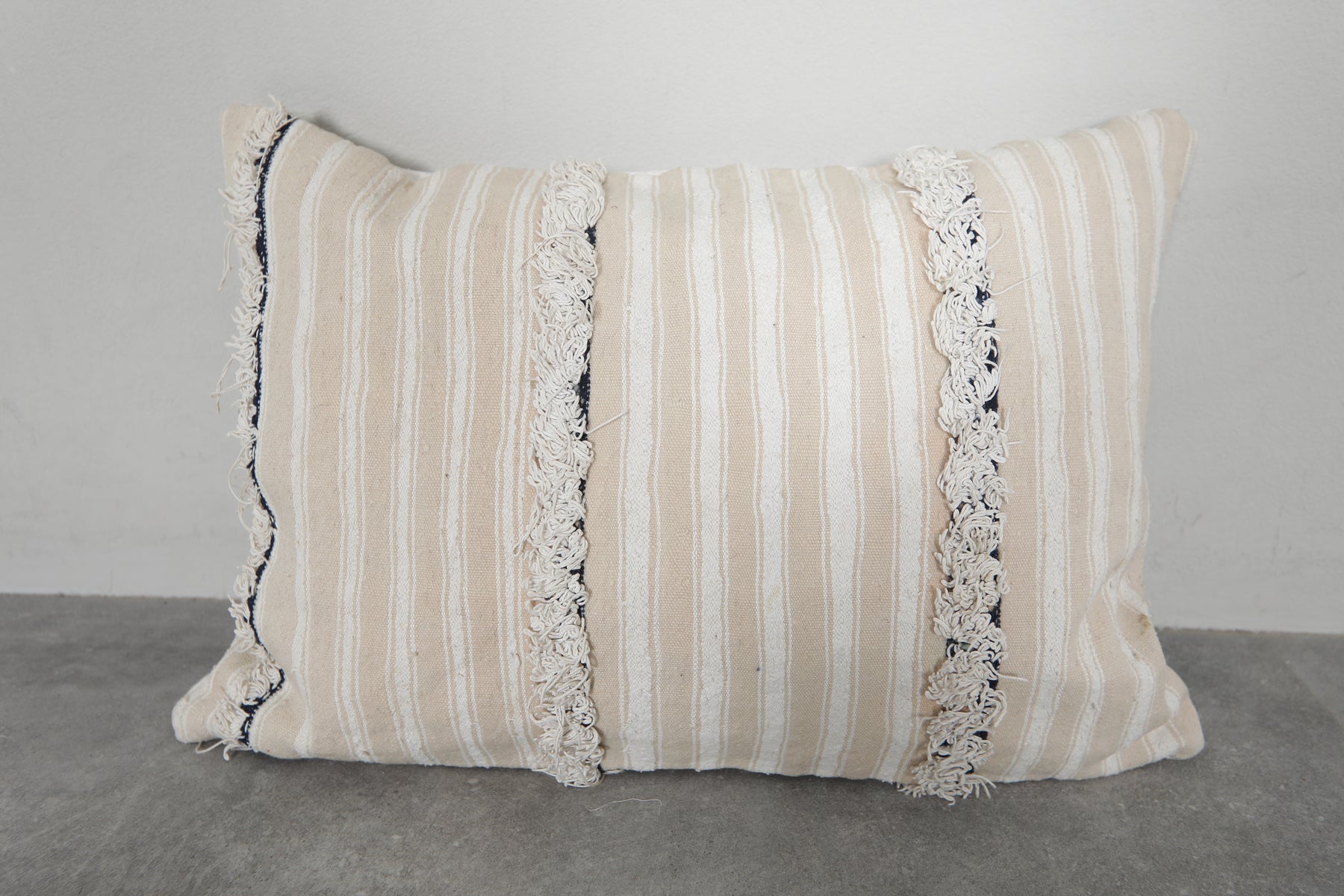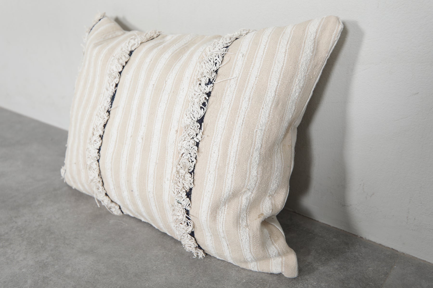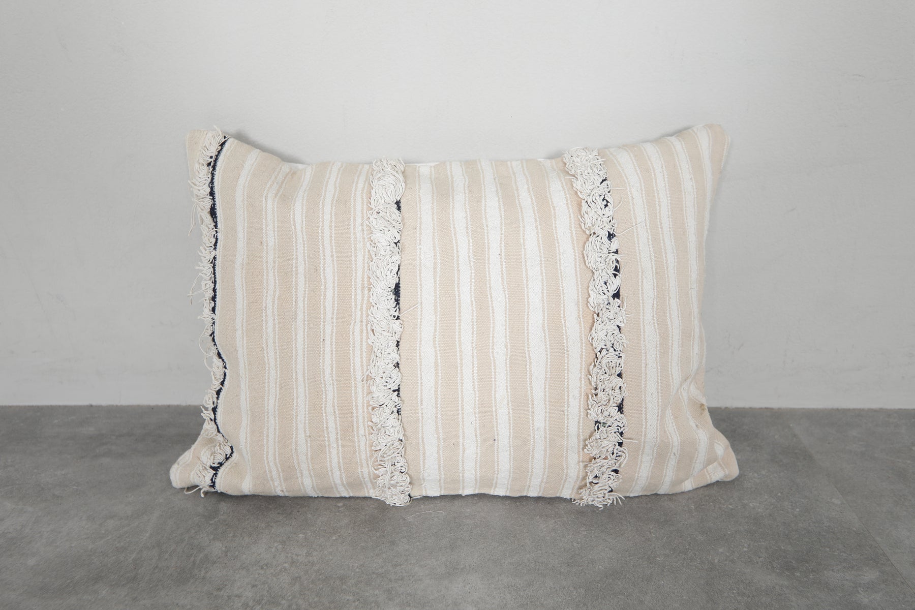 Bring authentic craftsmanship into your home with this stunning Moroccan kilim pillow cover. Expertly handwoven using traditional Berber techniques, it features detailed embroidery and a richly textured surface. Its versatile rectangular shape makes it an ideal statement piece for a sofa, bench, or bed.