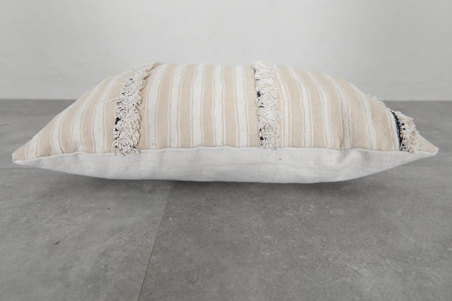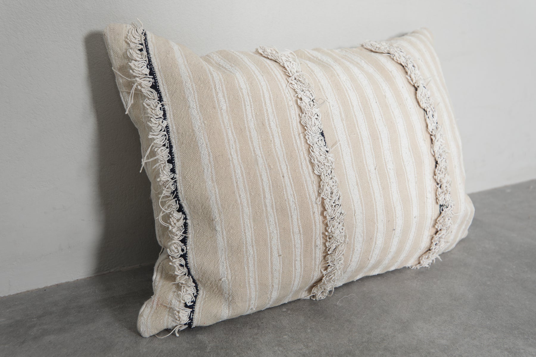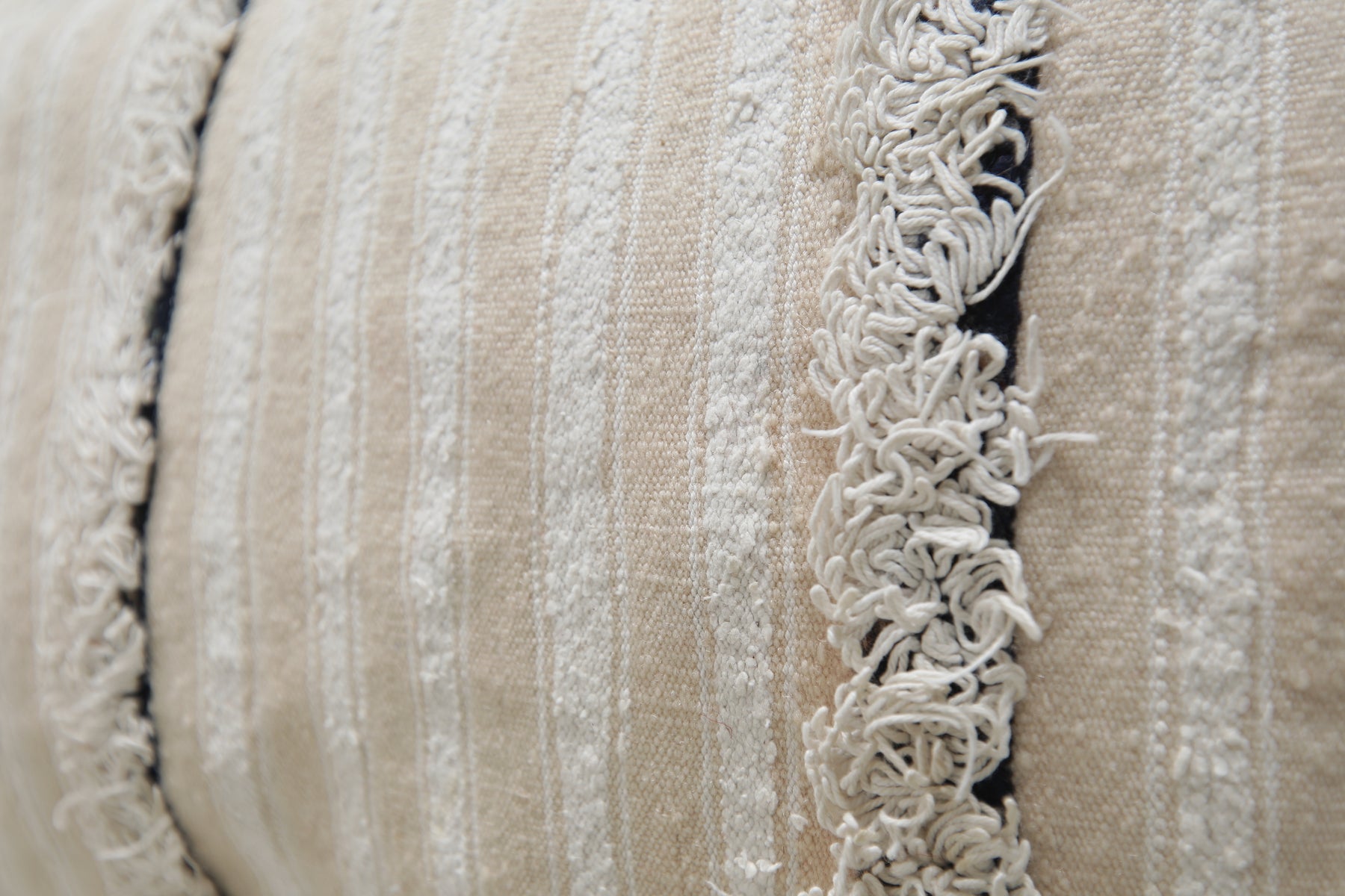 Bring authentic craftsmanship into your home with this stunning Moroccan kilim pillow cover. Expertly handwoven using traditional Berber techniques, it features detailed embroidery and a richly textured surface. Its versatile rectangular shape makes it an ideal statement piece for a sofa, bench, or bed.