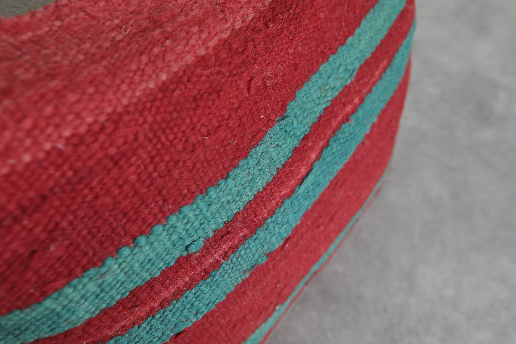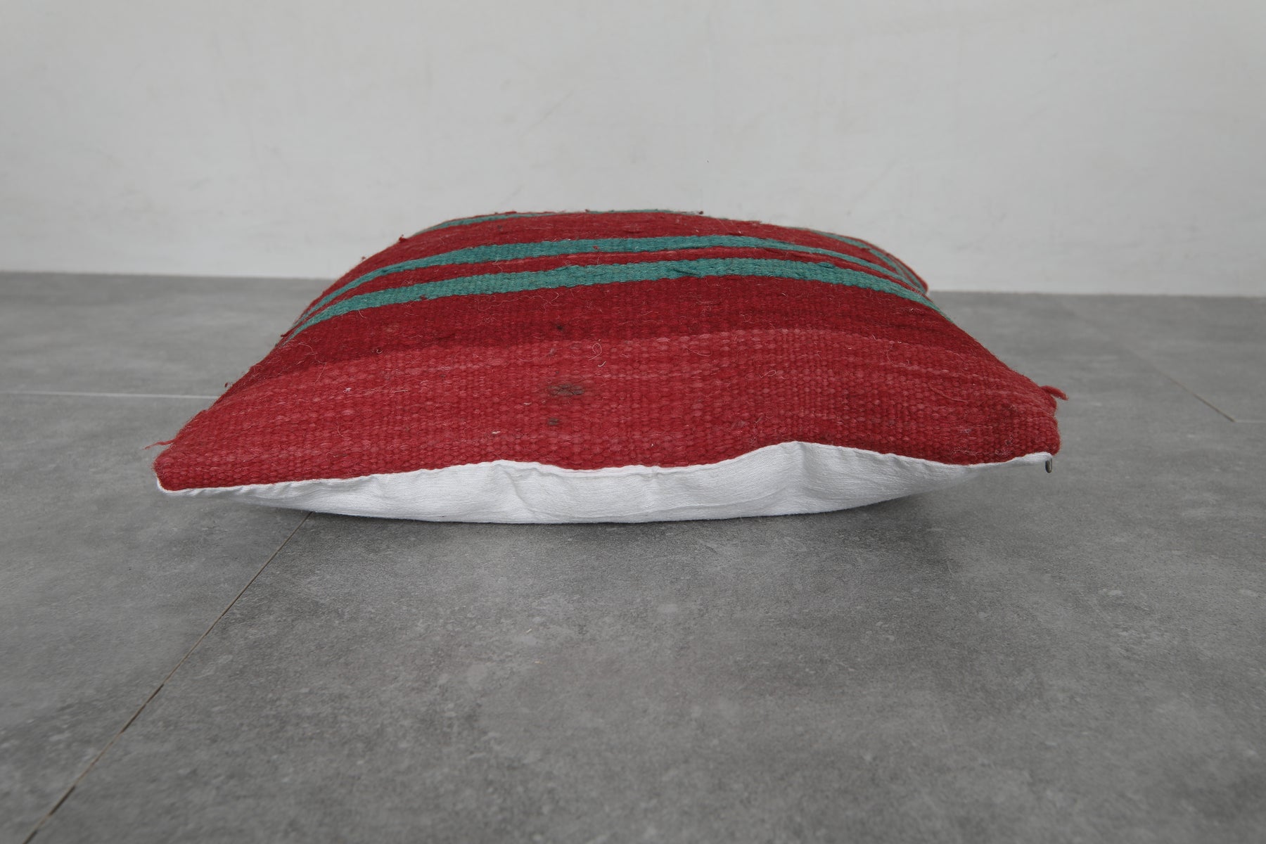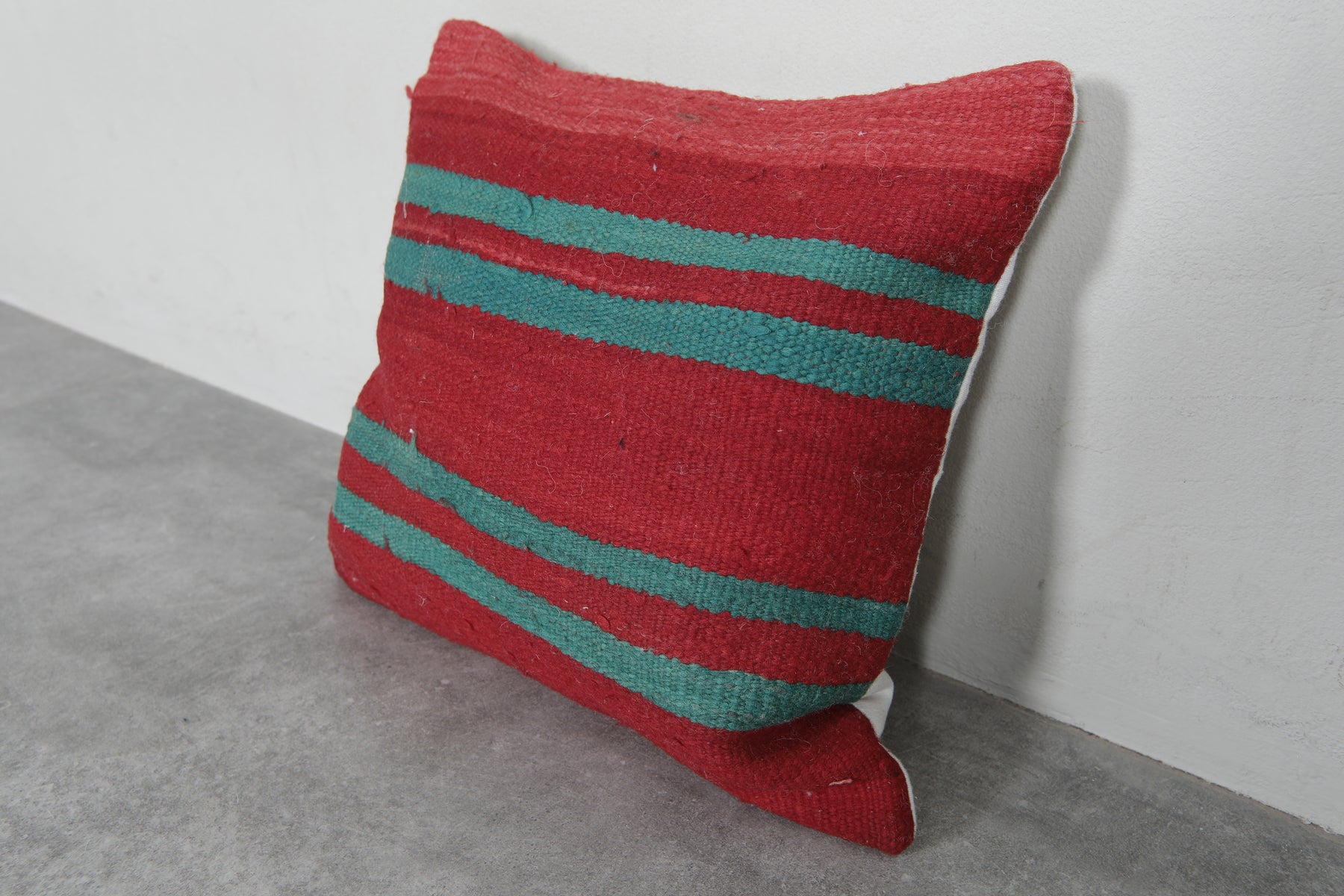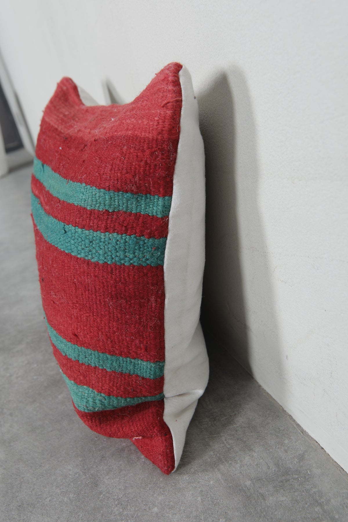 Bring warmth and handmade charm to your home with this exquisite Moroccan kilim pillow cover. Crafted by skilled Berber artisans, it features traditional weaving and intricate embroidery, offering a beautifully textured wool surface. Its slightly rectangular shape adds a stylish, balanced touch to sofas, chairs, or beds.