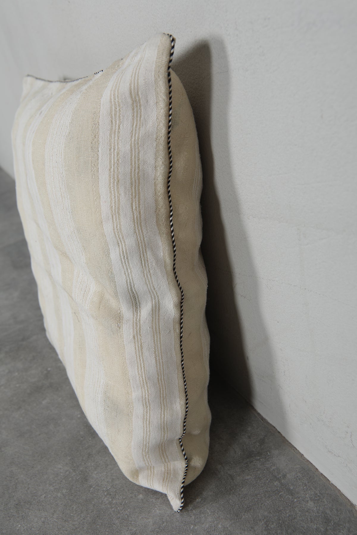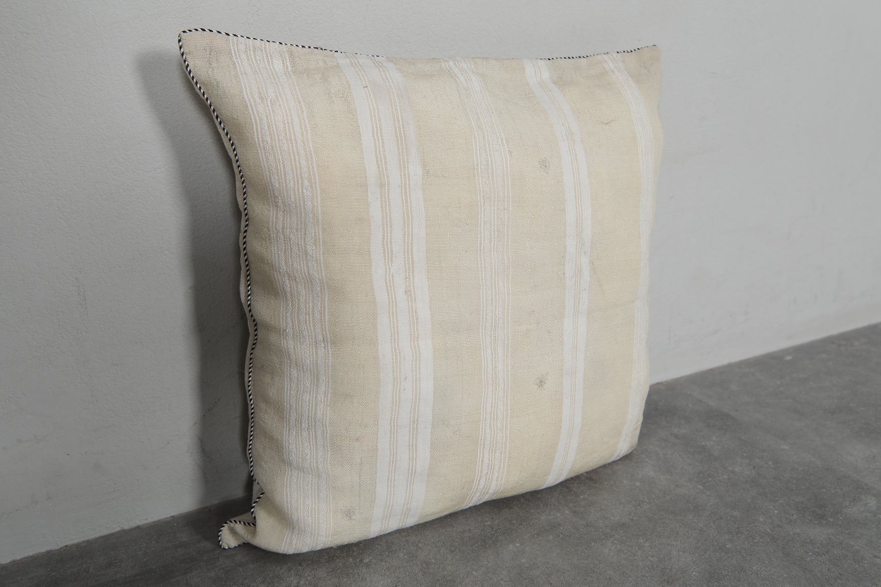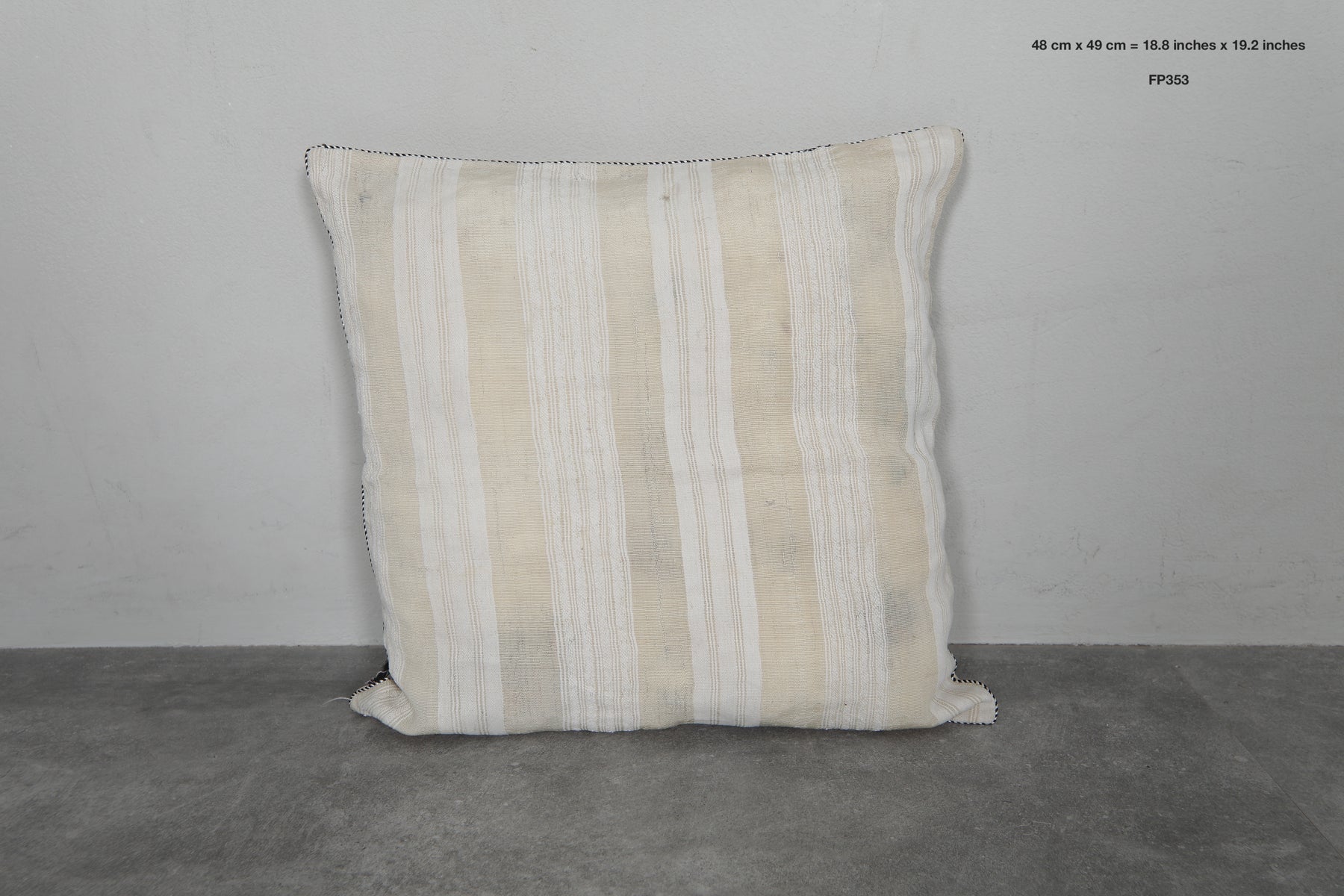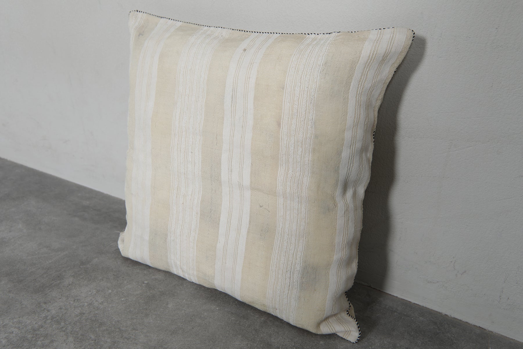 Add bold texture and authentic craftsmanship to your space with this stunning handwoven Moroccan kilim pillow cover. Carefully crafted by Berber artisans, it features intricate embroidery and a richly woven wool surface. The nearly square shape makes it a versatile piece—perfect for mixing and matching on a sofa, bed, or reading nook.