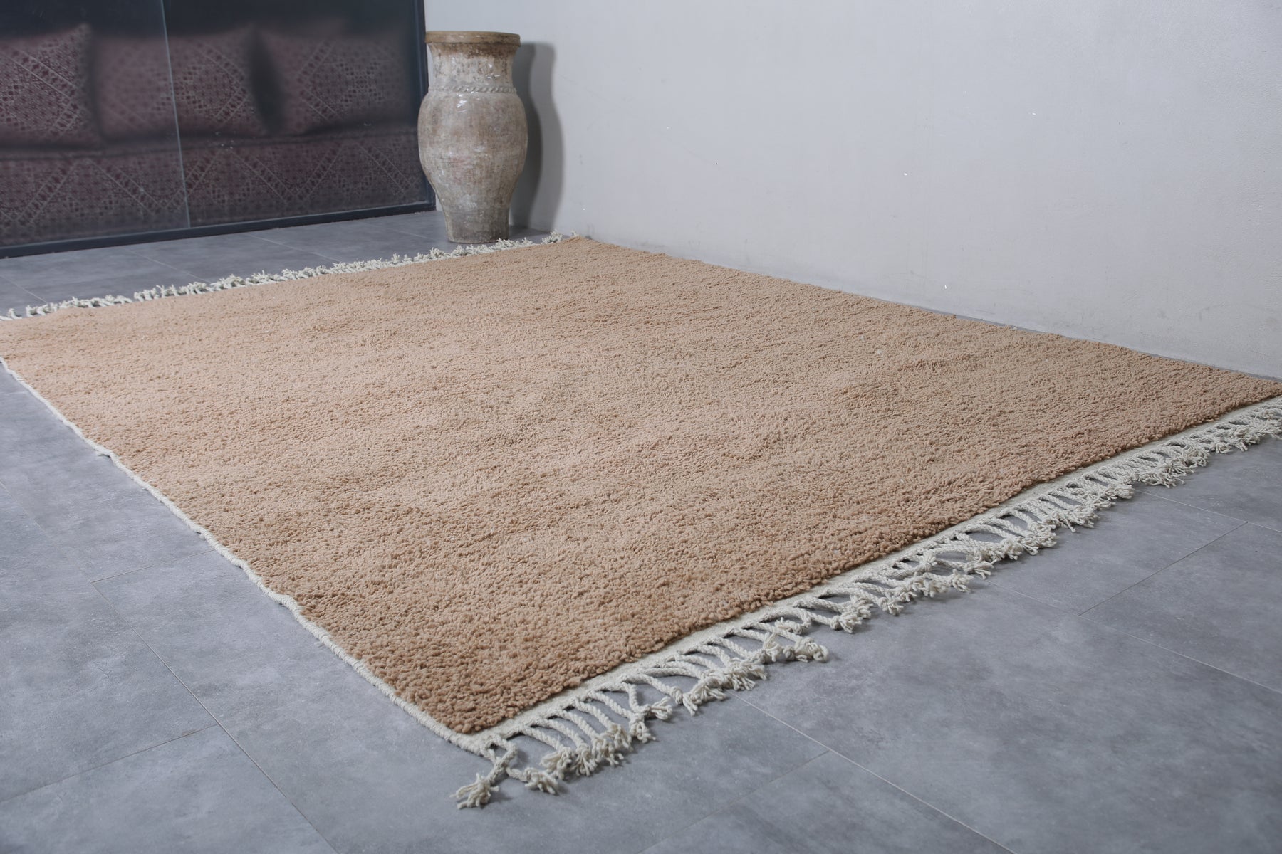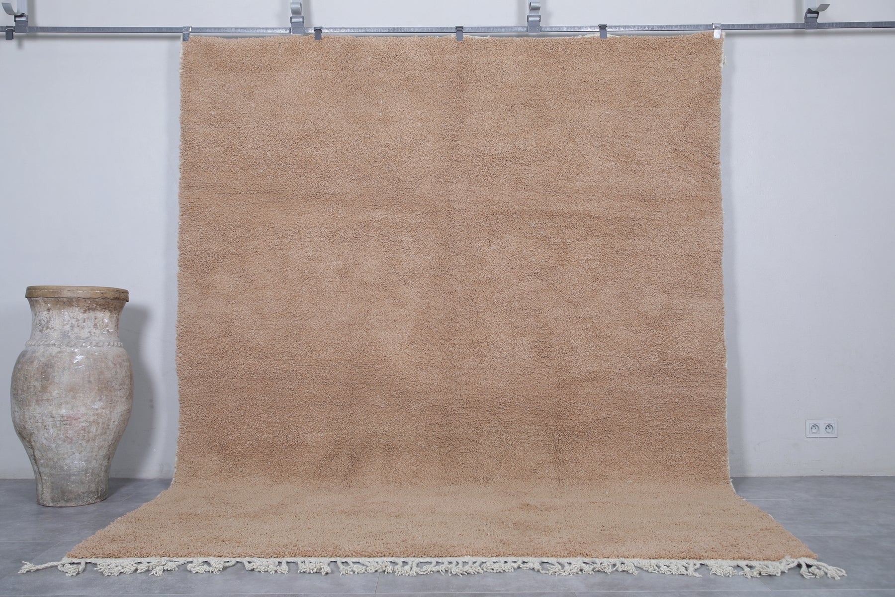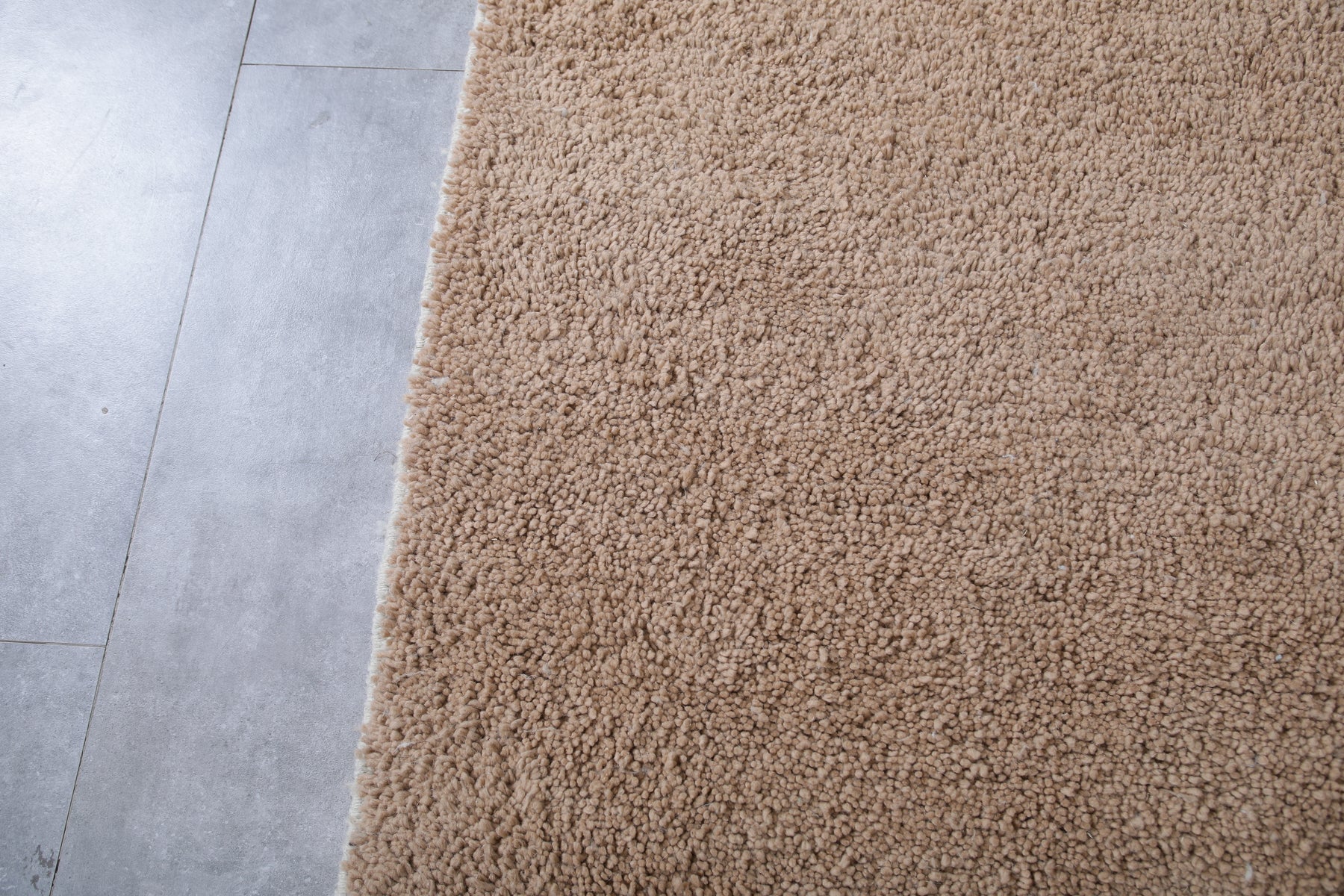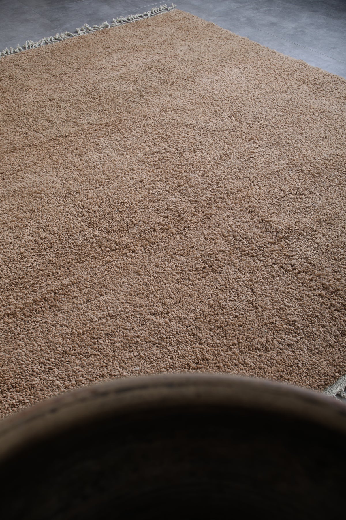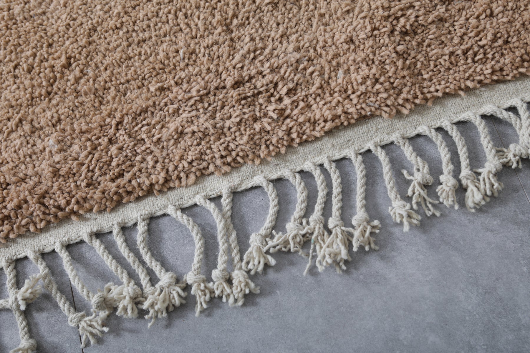 Add warmth and elegance to your space with this handcrafted beige Moroccan rug. Made from premium wool, this plush and minimalist rug features a soft, solid tan tone that complements both modern and traditional interiors. Perfect for living rooms, bedrooms, or cozy reading corners, its neutral color and subtle texture make it a versatile accent piece. Ethically made by skilled artisans, this rug offers durability, comfort, and timeless Moroccan charm.