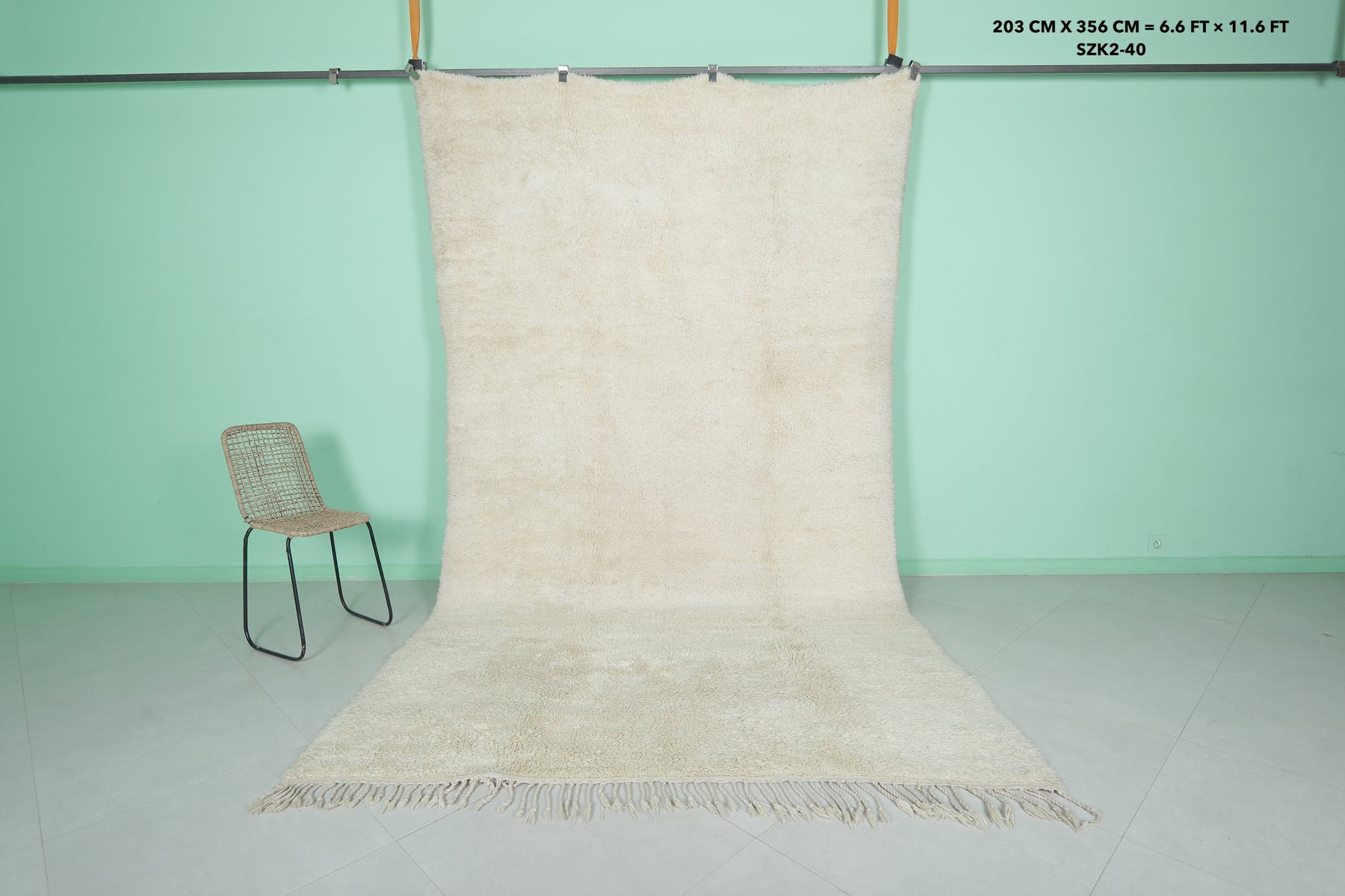 Elevate your home with this luxurious Moroccan Beni Ourain Rug, handwoven from premium natural wool. Measuring 6.6 x 11.6 feet (203 CM x 356 CM), this rug features a minimalist design in a neutral white tone, making it a versatile addition to both modern and traditional interiors. Its large size and plush texture create a warm and inviting atmosphere, perfect for living rooms, bedrooms, or dining areas. Crafted with exceptional durability and timeless Moroccan artistry, this handmade rug is a statement of elegance and comfort. Transform your space today with this exquisite piece!