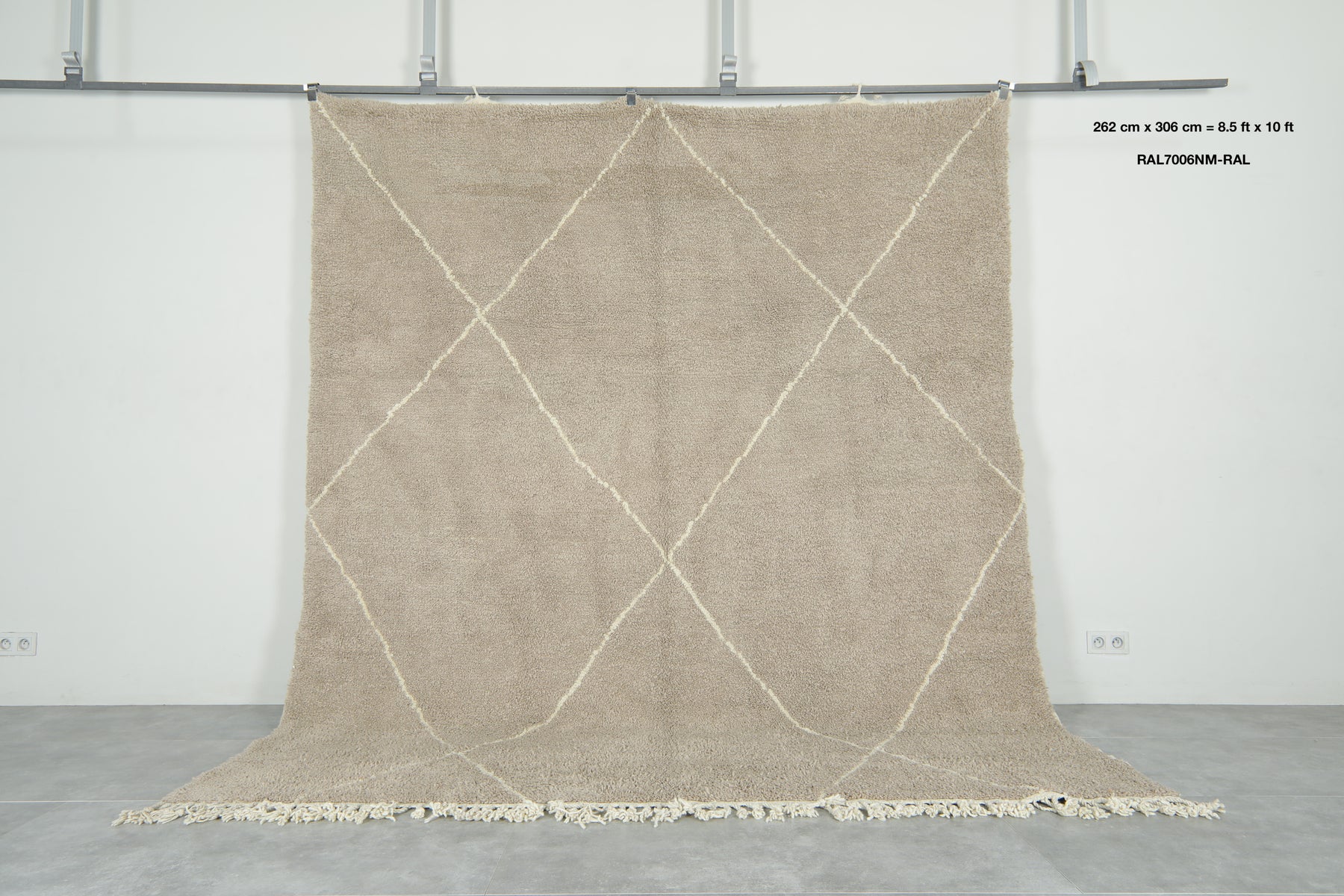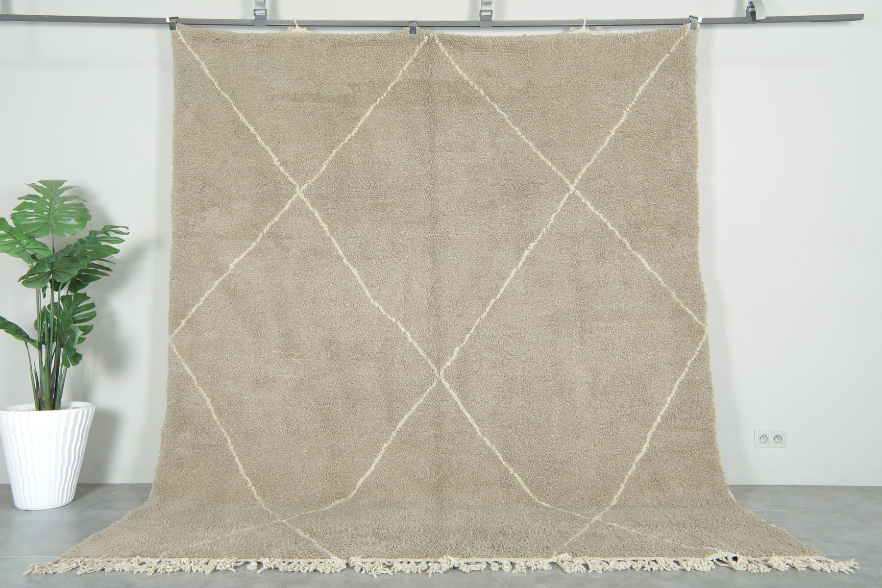Moroccan beni ourain rug - Beige wool with white diamond lattice - 8.5 ft x 10 ft