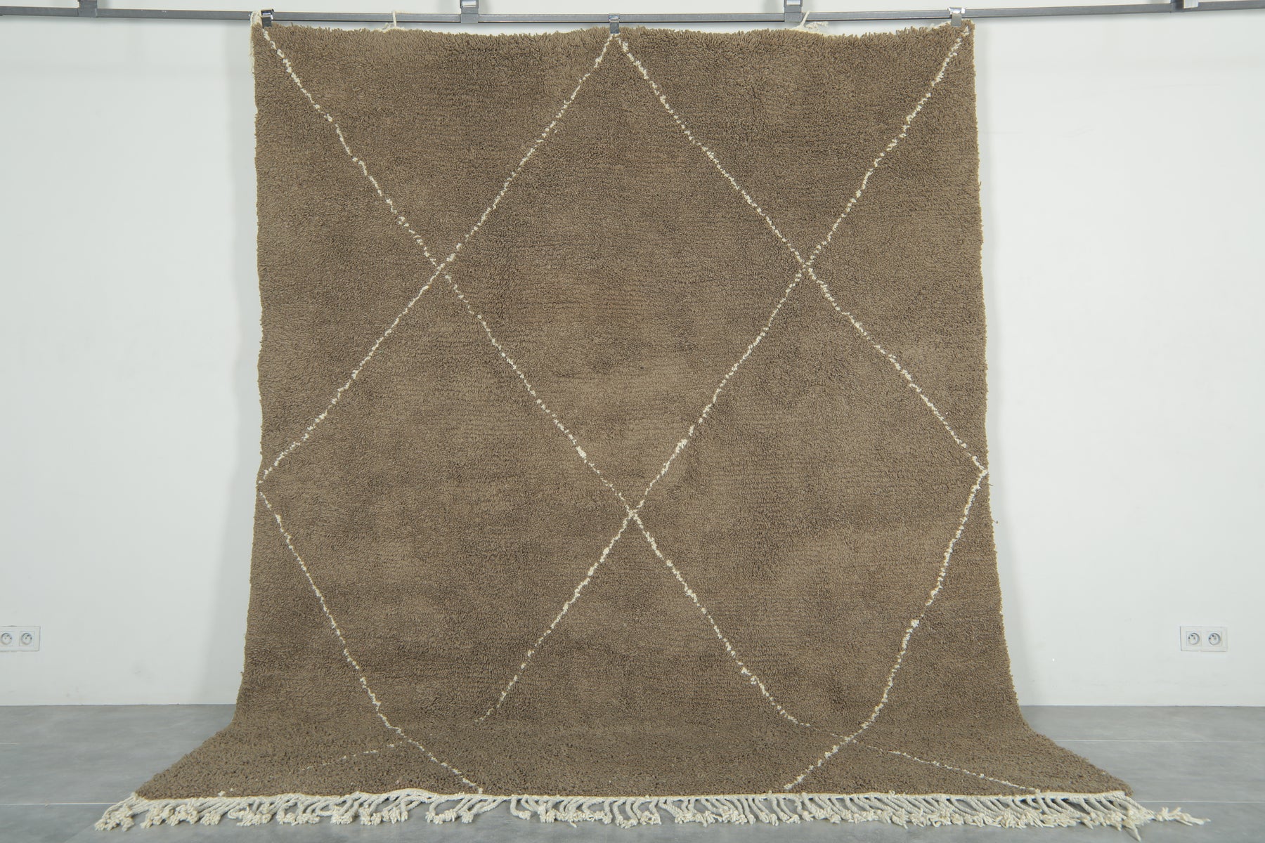 Moroccan beni ourain rug - Textured brown wool with white diamond lattice - 8.2 ft x 10.2 ft