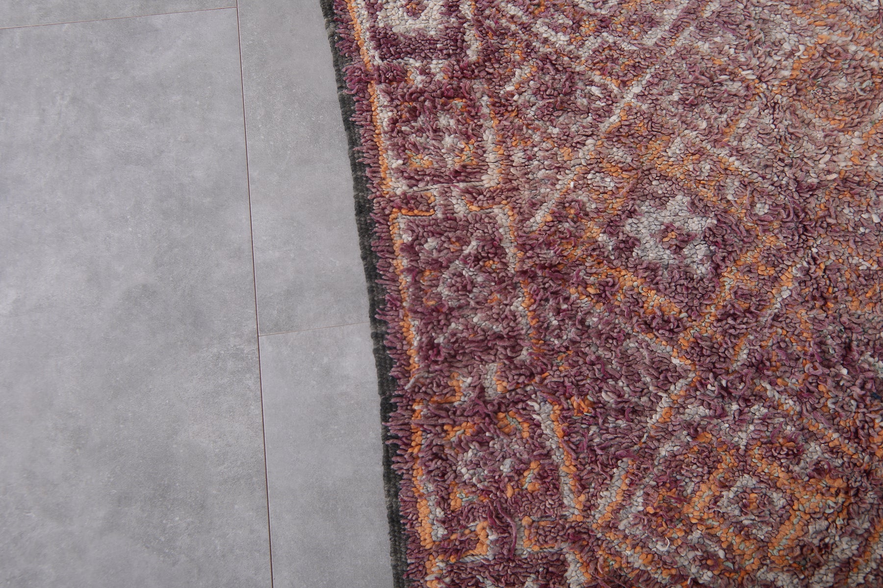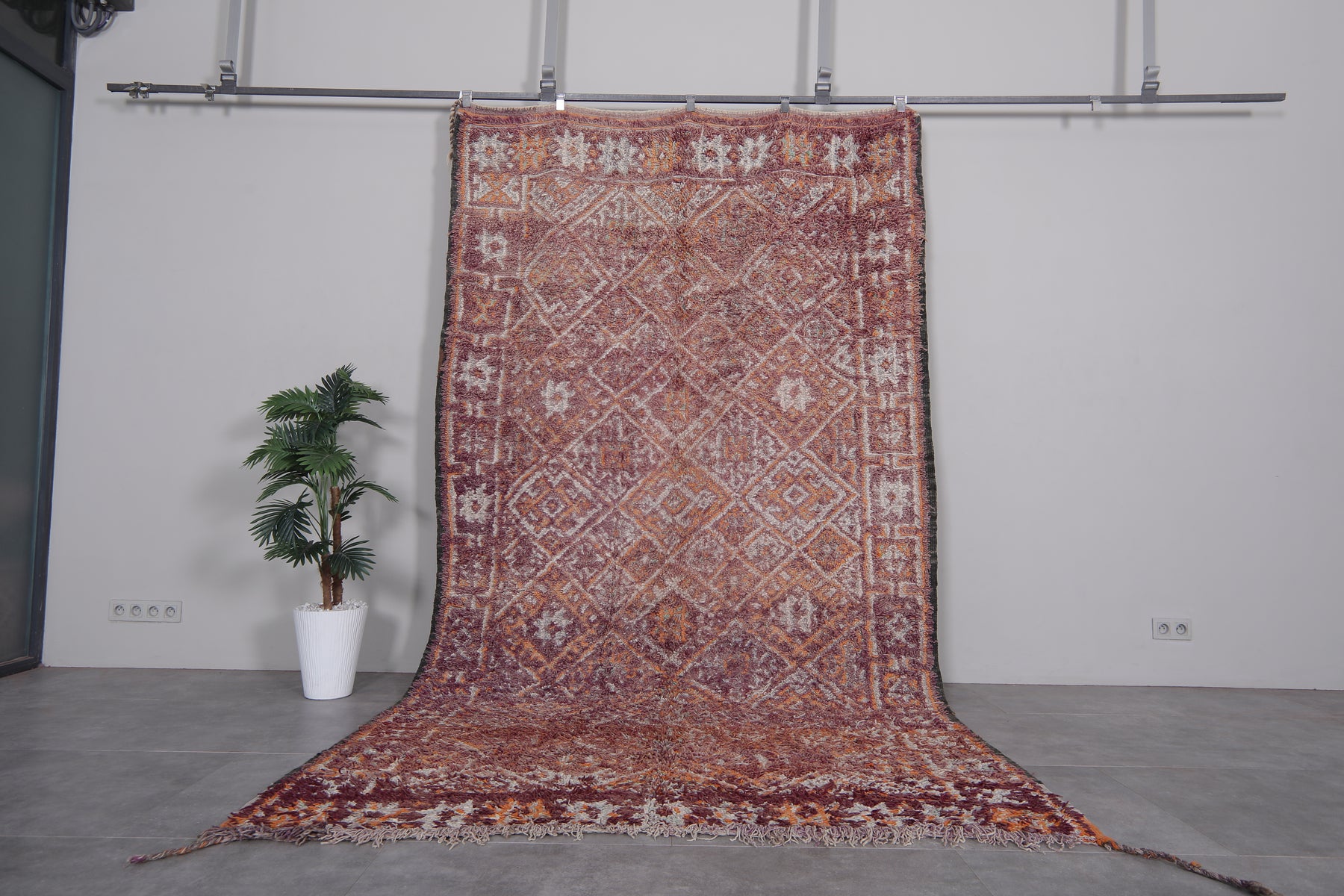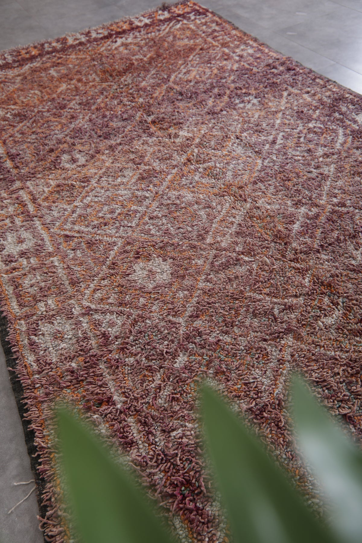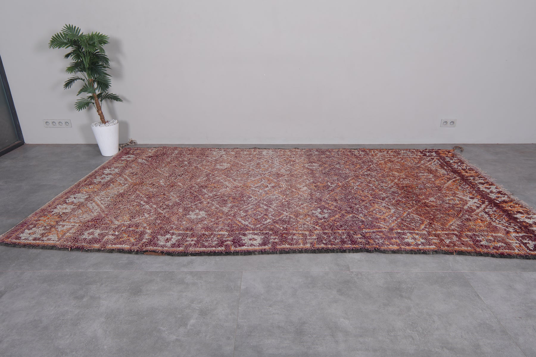 Bring understated elegance to your space with this handwoven Moroccan Boujaad rug, measuring 6.3 x 11.5 feet. Designed with a delicate arrangement of geometric diamond patterns, interspersed with floral-inspired motifs, this rug captures the essence of Moroccan craftsmanship. The muted palette blends earthy tones of burgundy, beige, and soft orange, creating a warm and inviting aesthetic. Framed with subtle borders, it offers a harmonious mix of traditional artistry and contemporary style.