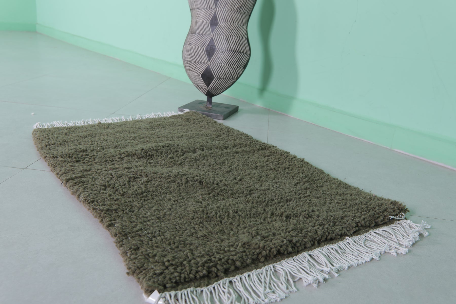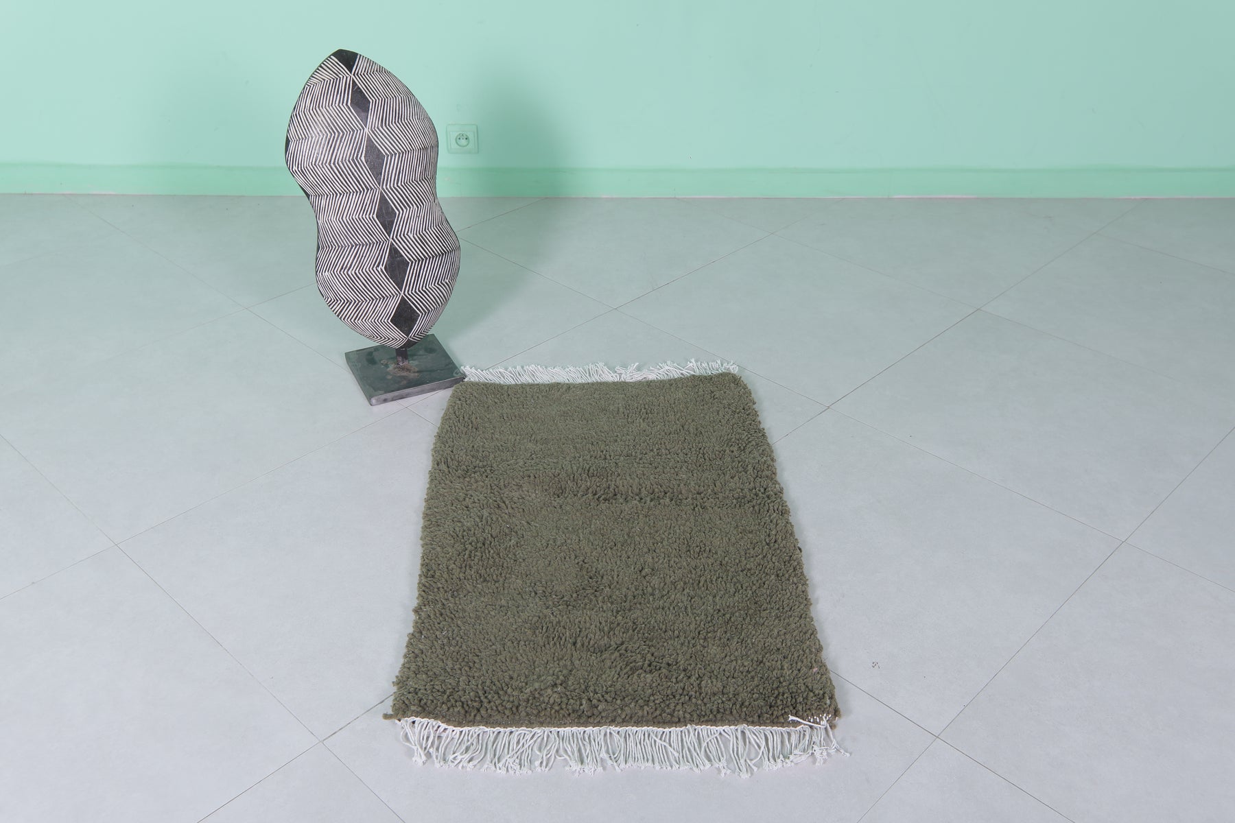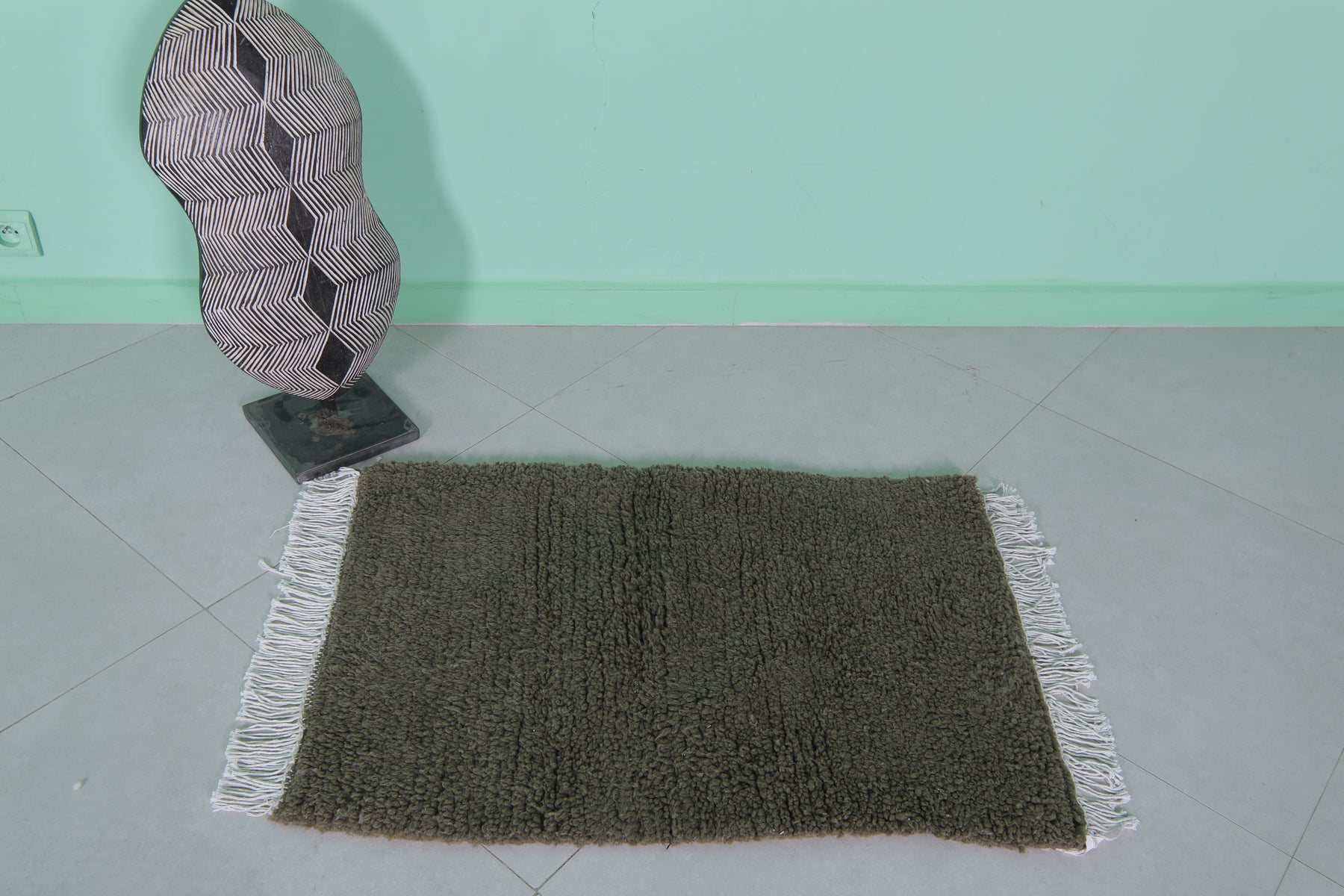Add a natural touch to your home with this Moroccan Green Rug, handwoven from high-quality natural wool. Measuring 2 x 3 feet (63 CM x 93 CM), this compact rug features a rich green hue that brings warmth and tranquility to small spaces such as entryways, bathrooms, or cozy reading nooks. Its plush texture ensures comfort, while its durable craftsmanship guarantees long-lasting beauty. Perfect for modern and traditional interiors alike, this versatile rug offers a stylish and elegant accent to elevate your décor. Shop now to enrich your space with Moroccan charm!