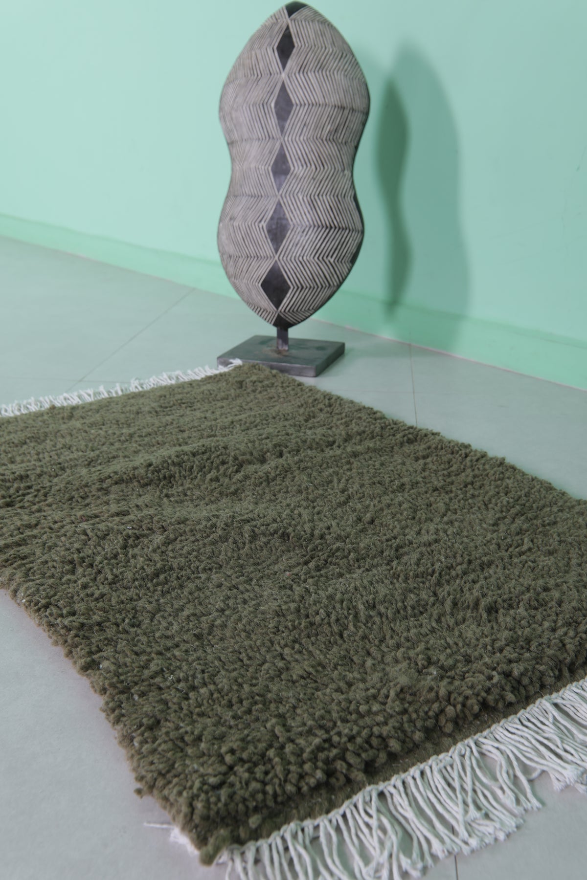 Moroccan green rug - Handwoven 2 x 3 Feet | Compact wool accent