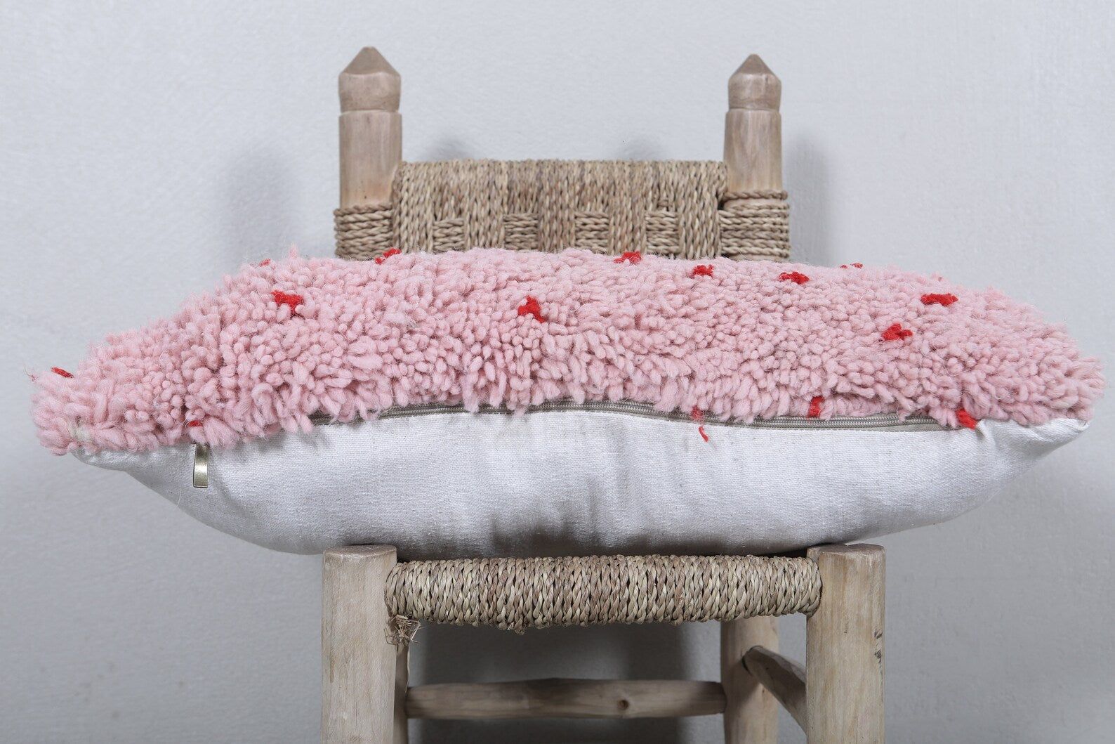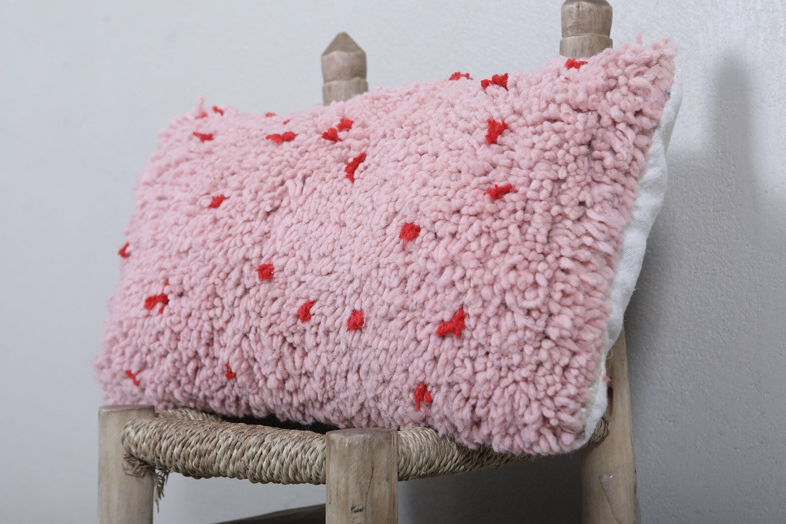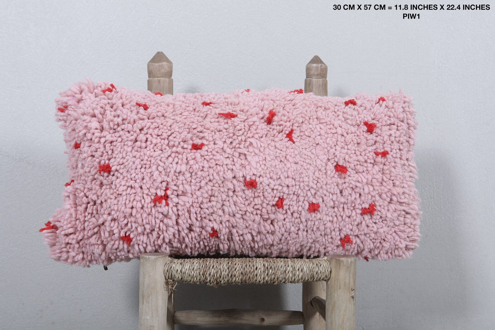 Moroccan Handmade Pink Pillow - 11.8 x 22.4 Inches