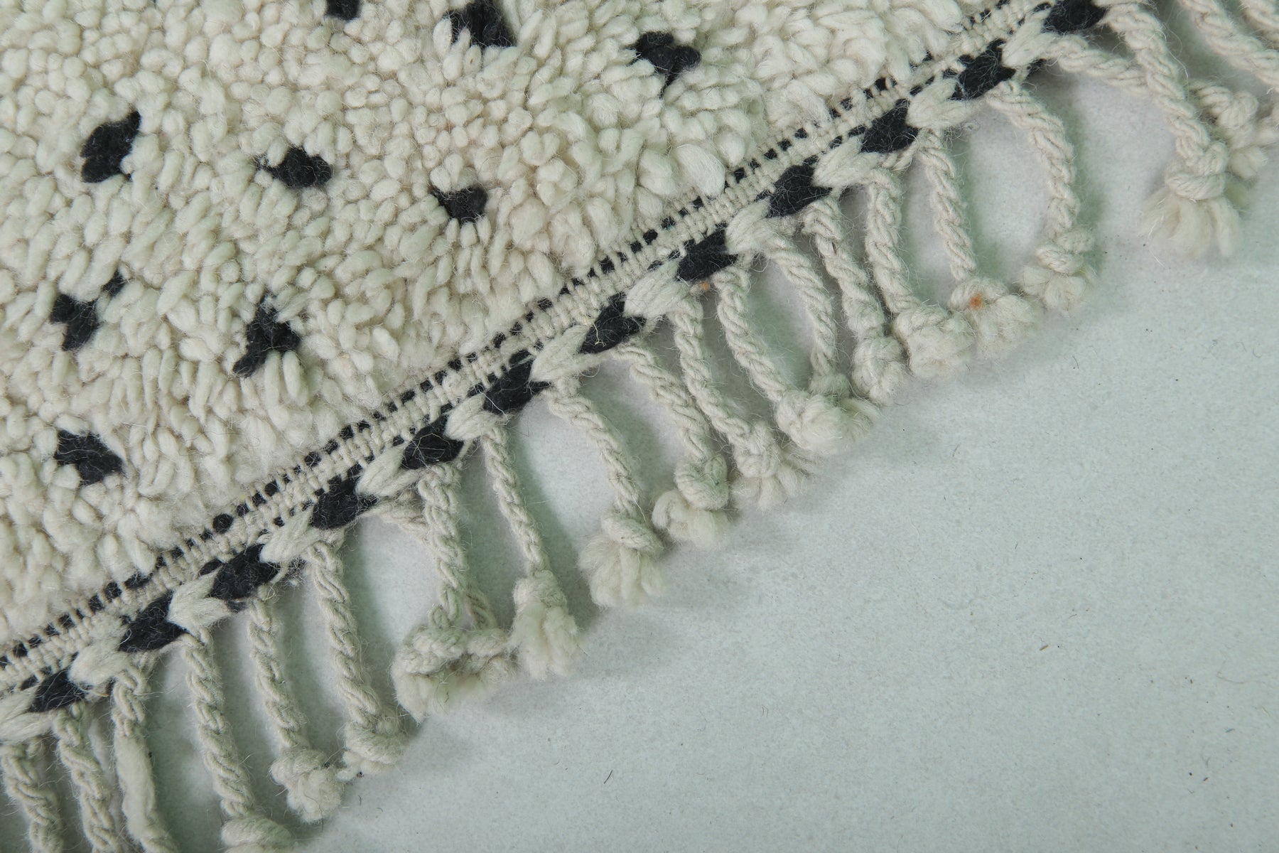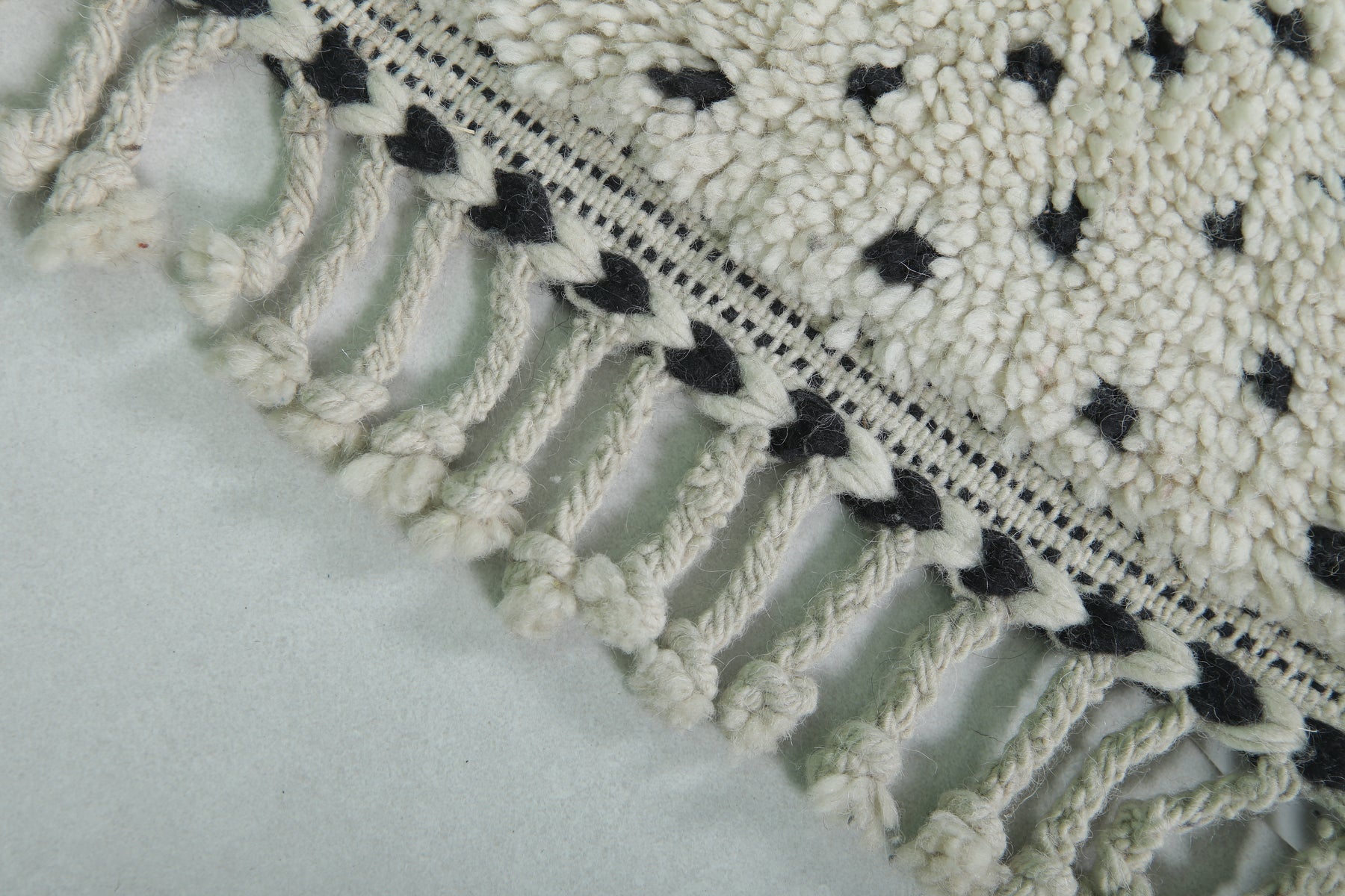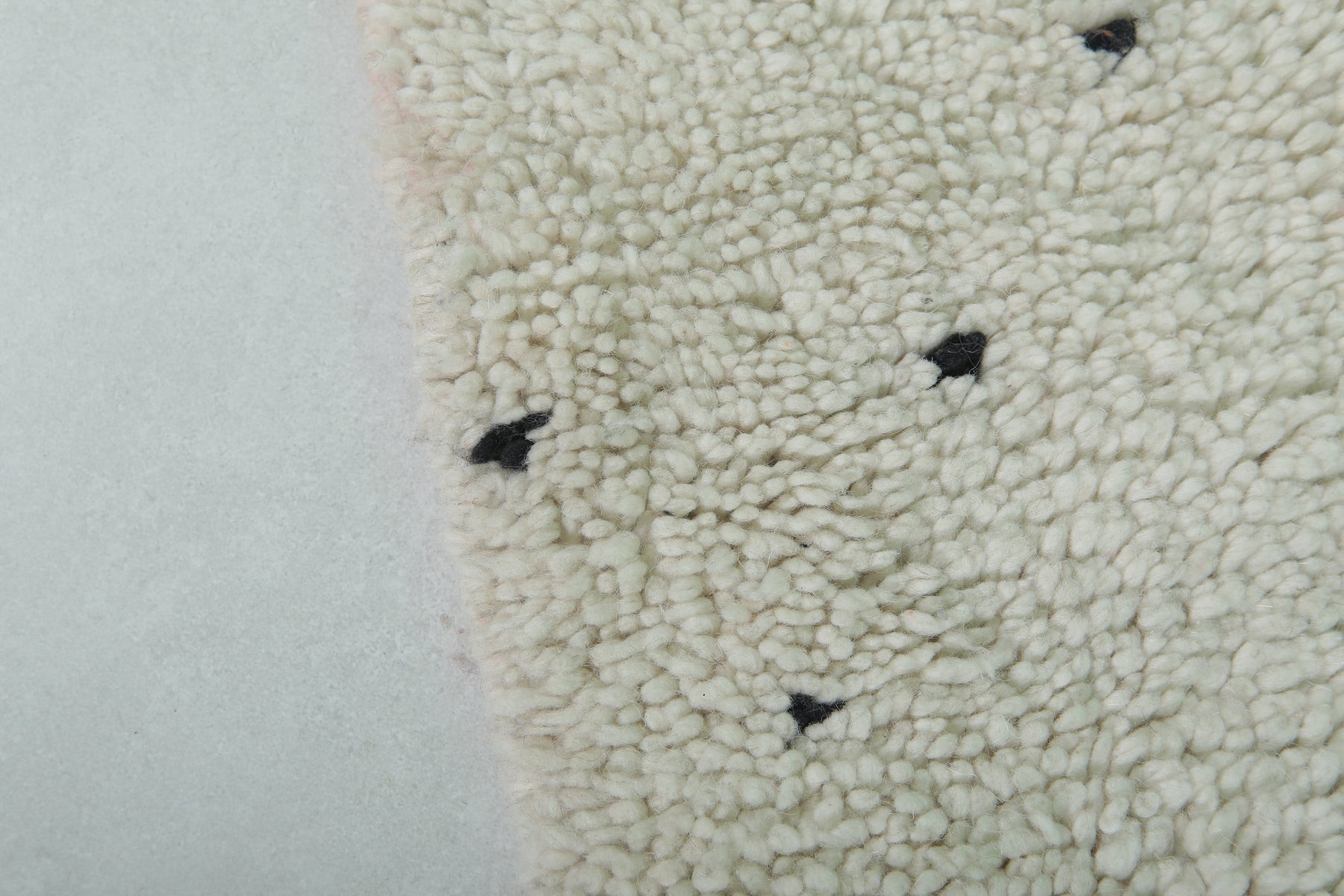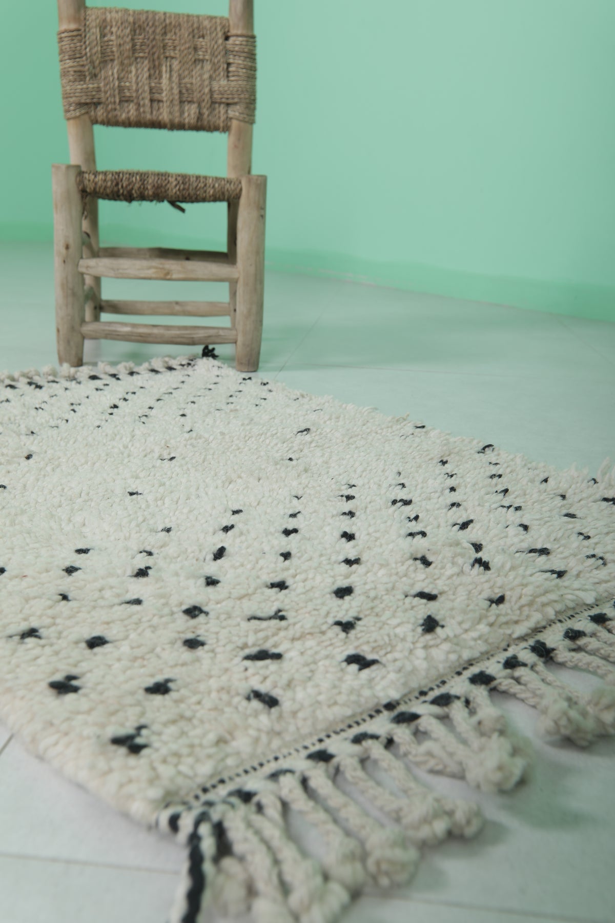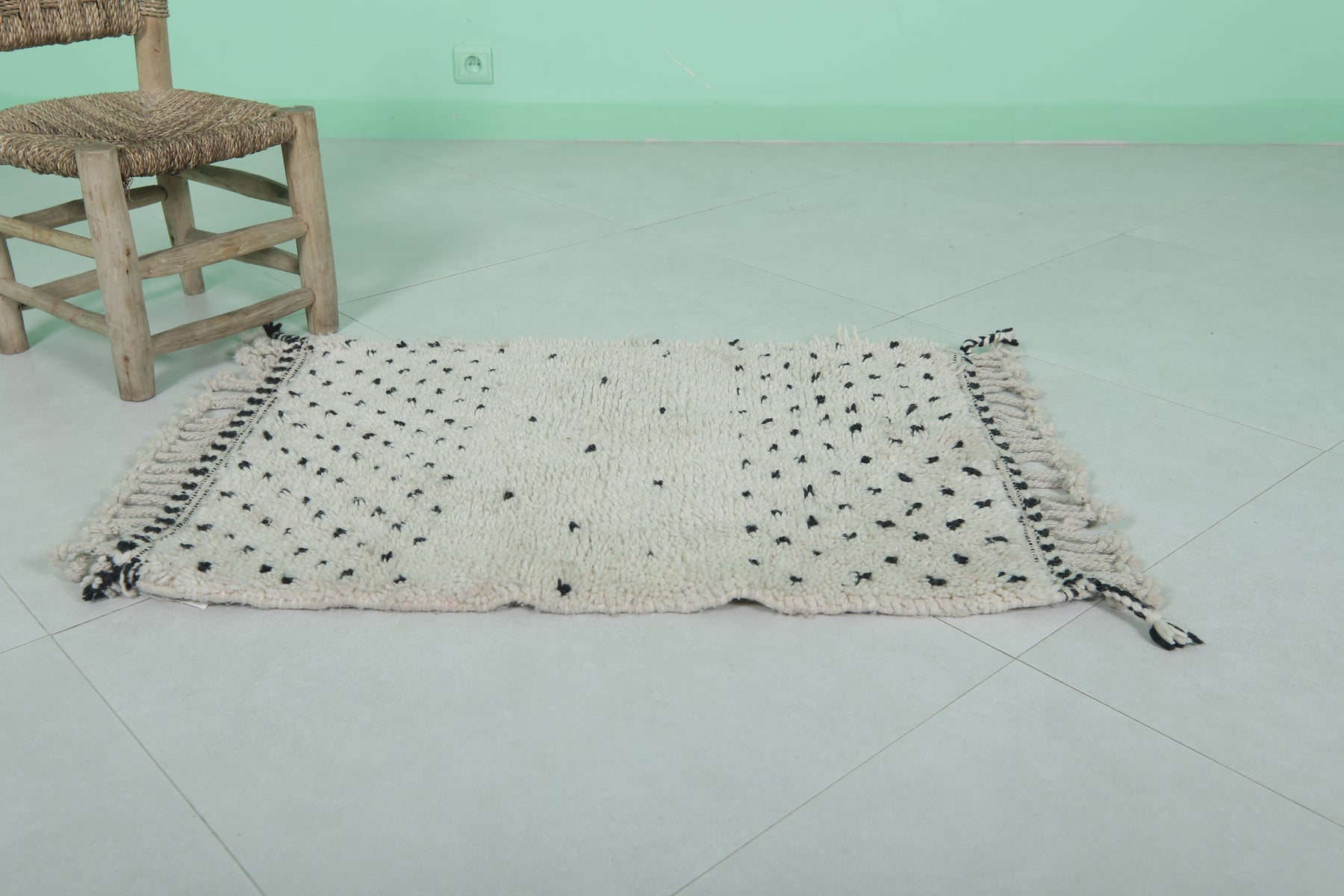 Introduce Moroccan craftsmanship to your home with this Handmade Wool Rug, sized at 2 x 2.9 feet (63 CM x 91 CM). Featuring a delicate black dot pattern on a neutral base, this charming rug is ideal for entryways, bathrooms, or as an accent piece in any space. Its soft texture and durable craftsmanship guarantee long-lasting elegance.
